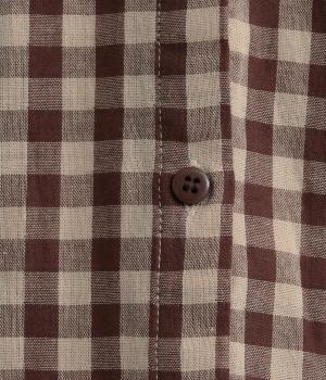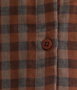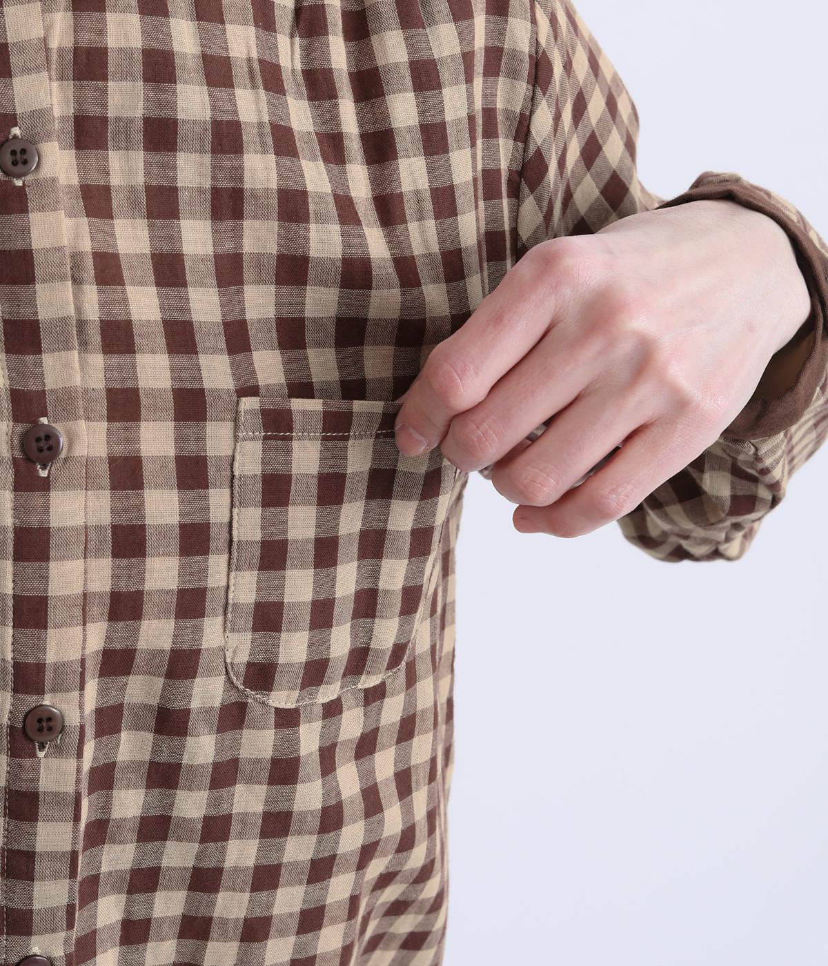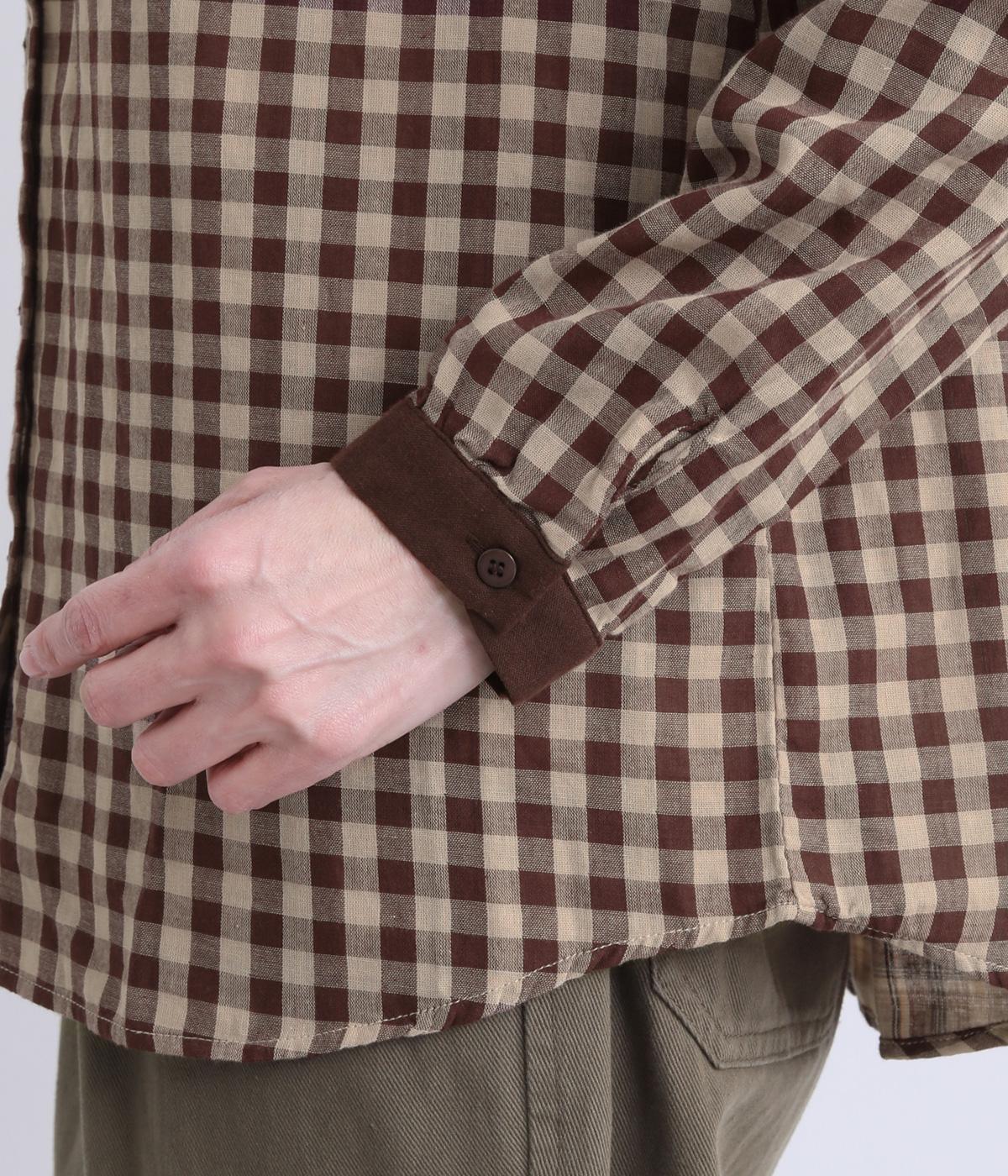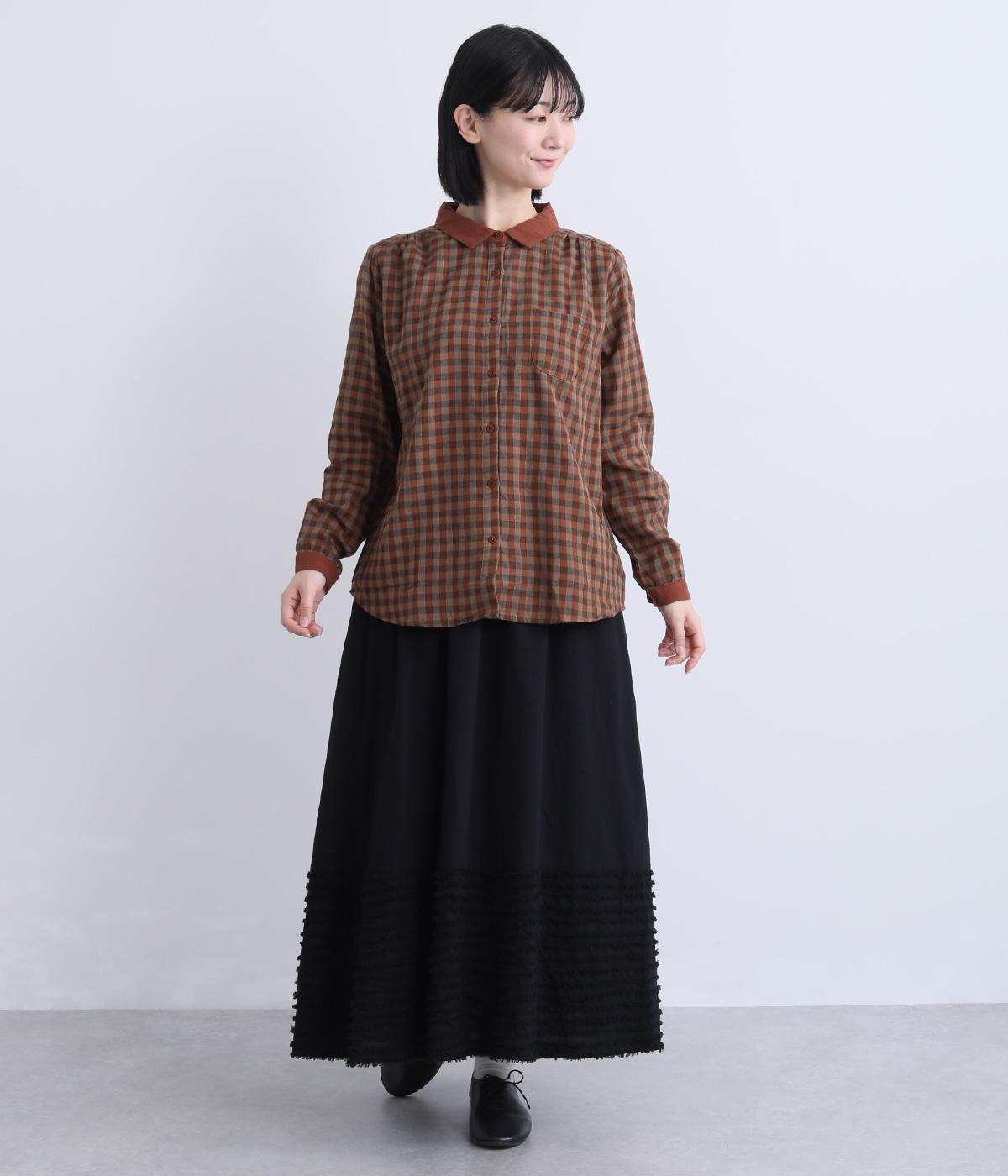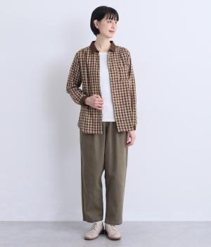 クレリック風に無地と組み合わせてメリハリよく仕上げたチェック柄シャツ。後ろヨークギャザーでフレアに仕上げ、きちんと感を残しつつも着心地のよい一枚に。ナチュラルスタイルに取り入れやすく、軽い羽織りとしても◎。