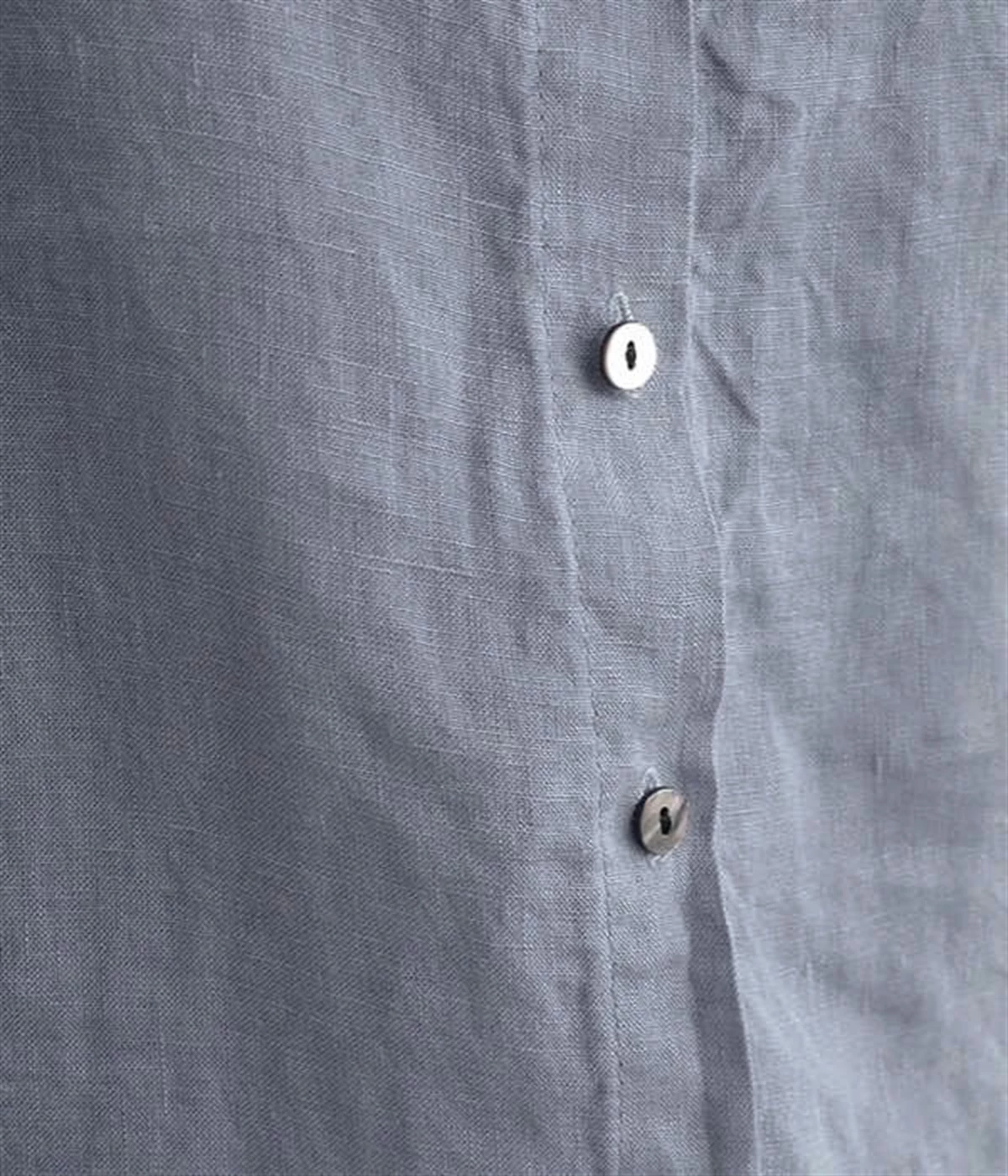 通気性に優れ、清涼感のあるリネン生地。ごわつき感の少ないやわらかな肌ざわりで、軽やかな着心地です。シワのある表面がやわらかな表情の素材感です。