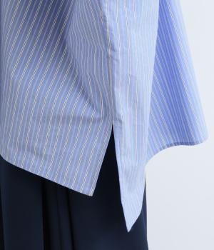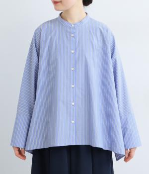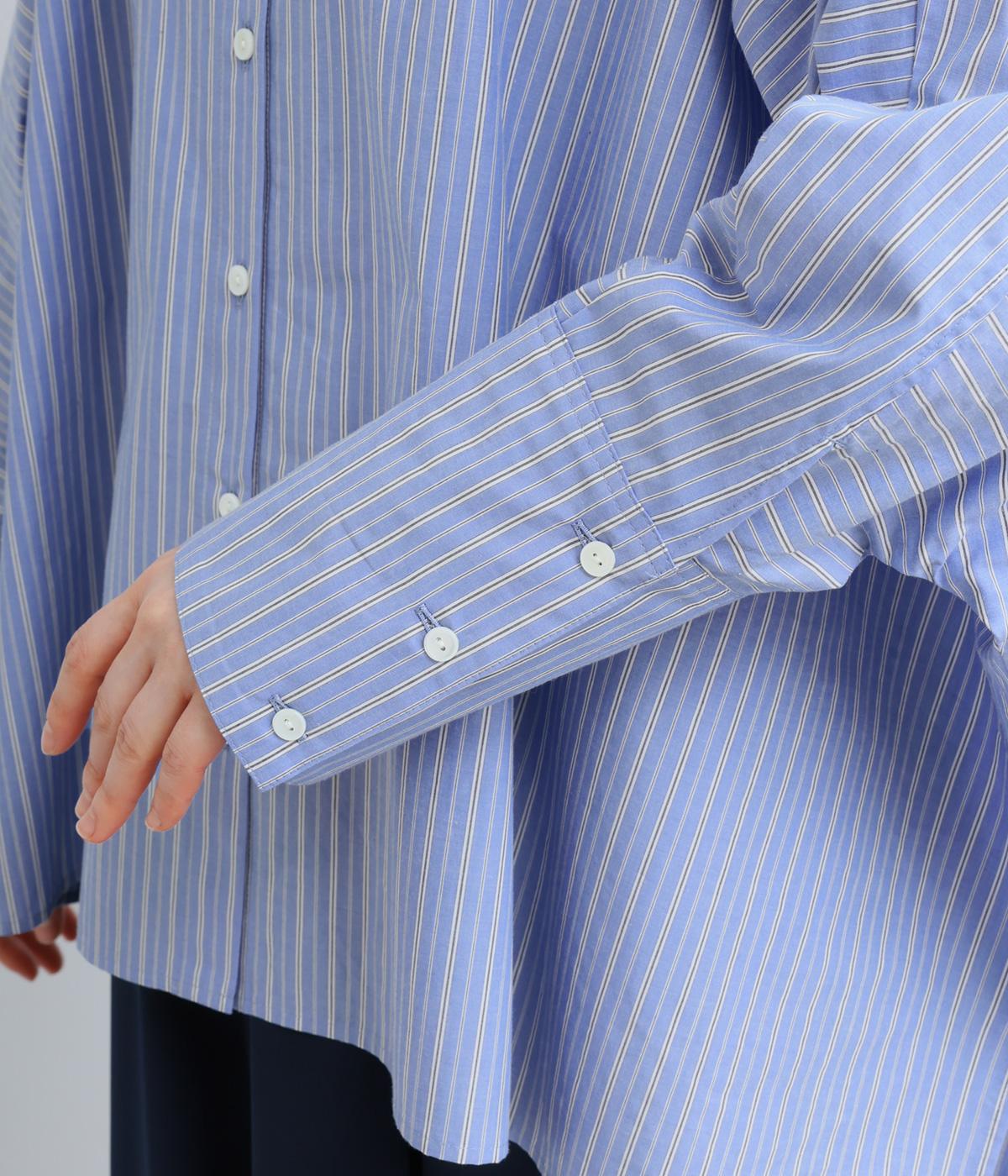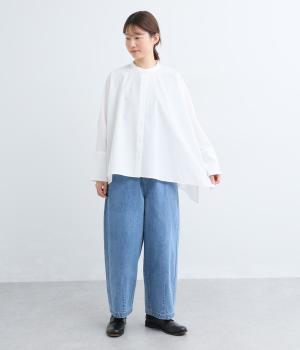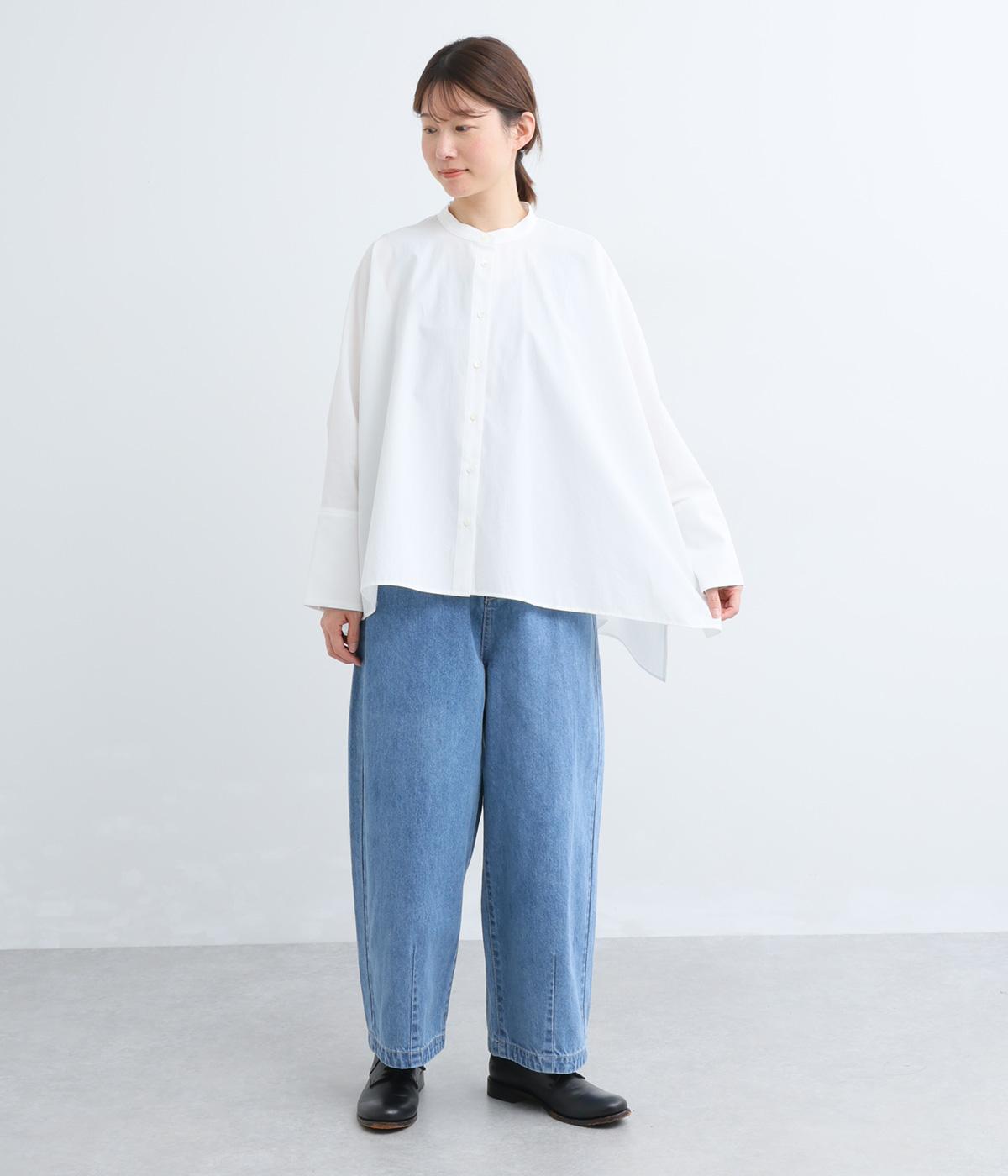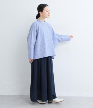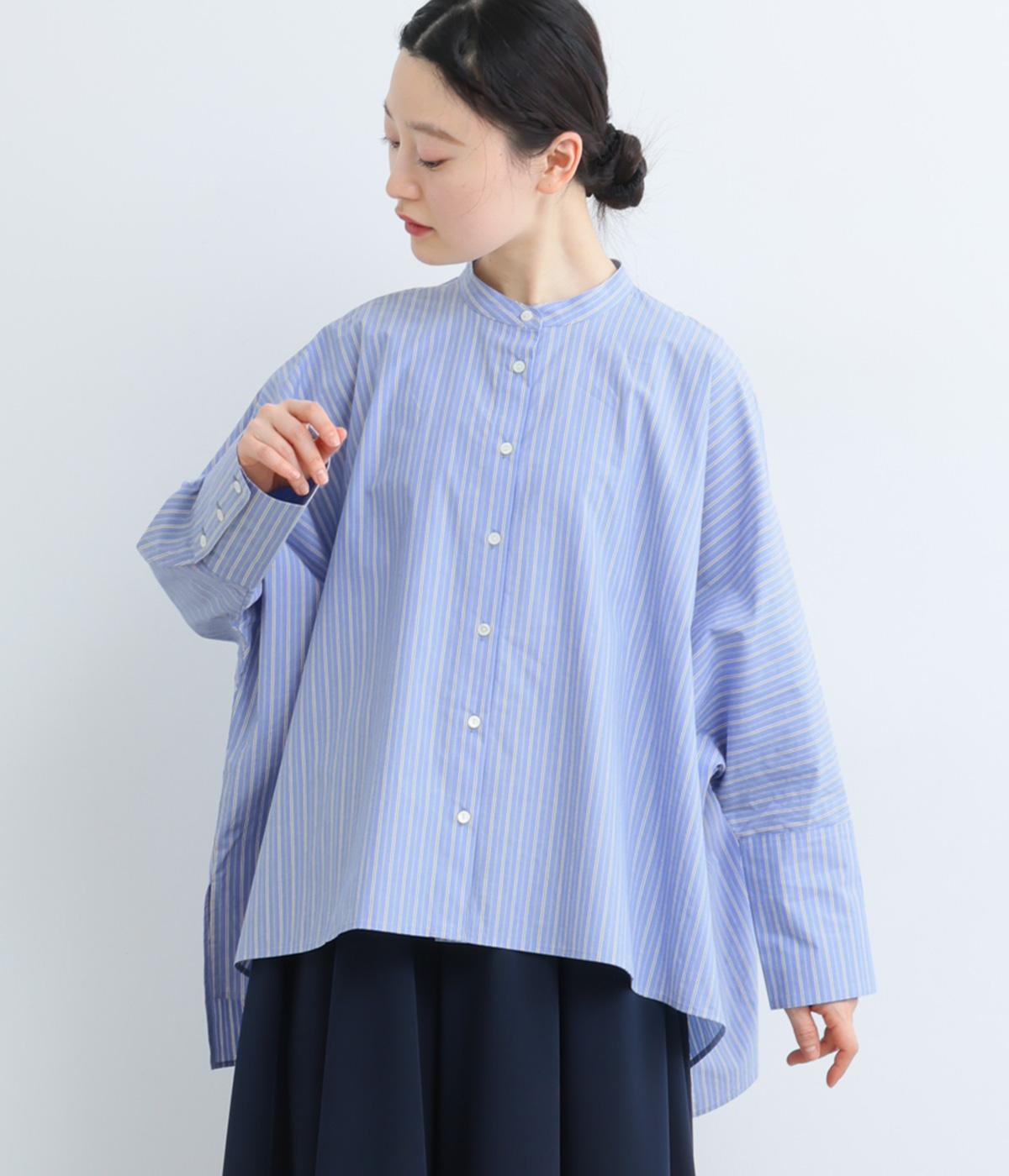 たっぷりの生地が優雅なドレープを描く、ドルマンシルエットのシャツです。長めのカフスがニュアンスを添え、首元はバンドカラーですっきりと仕立てました。サッと着るだけで着映えする主役トップスです。
