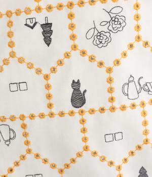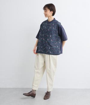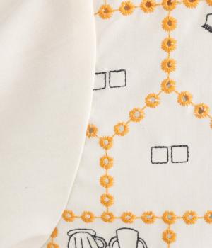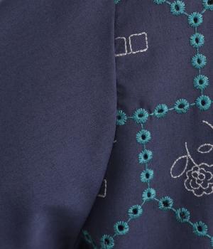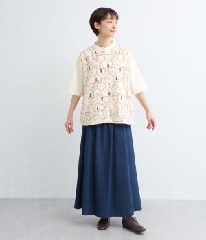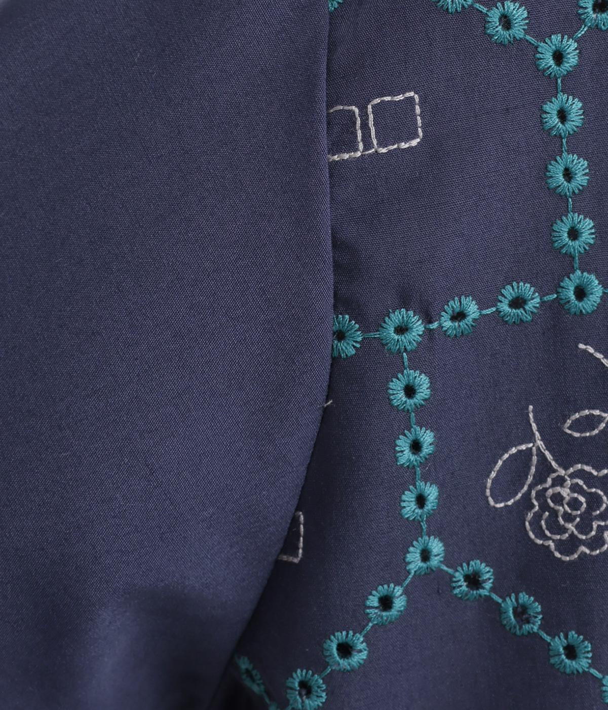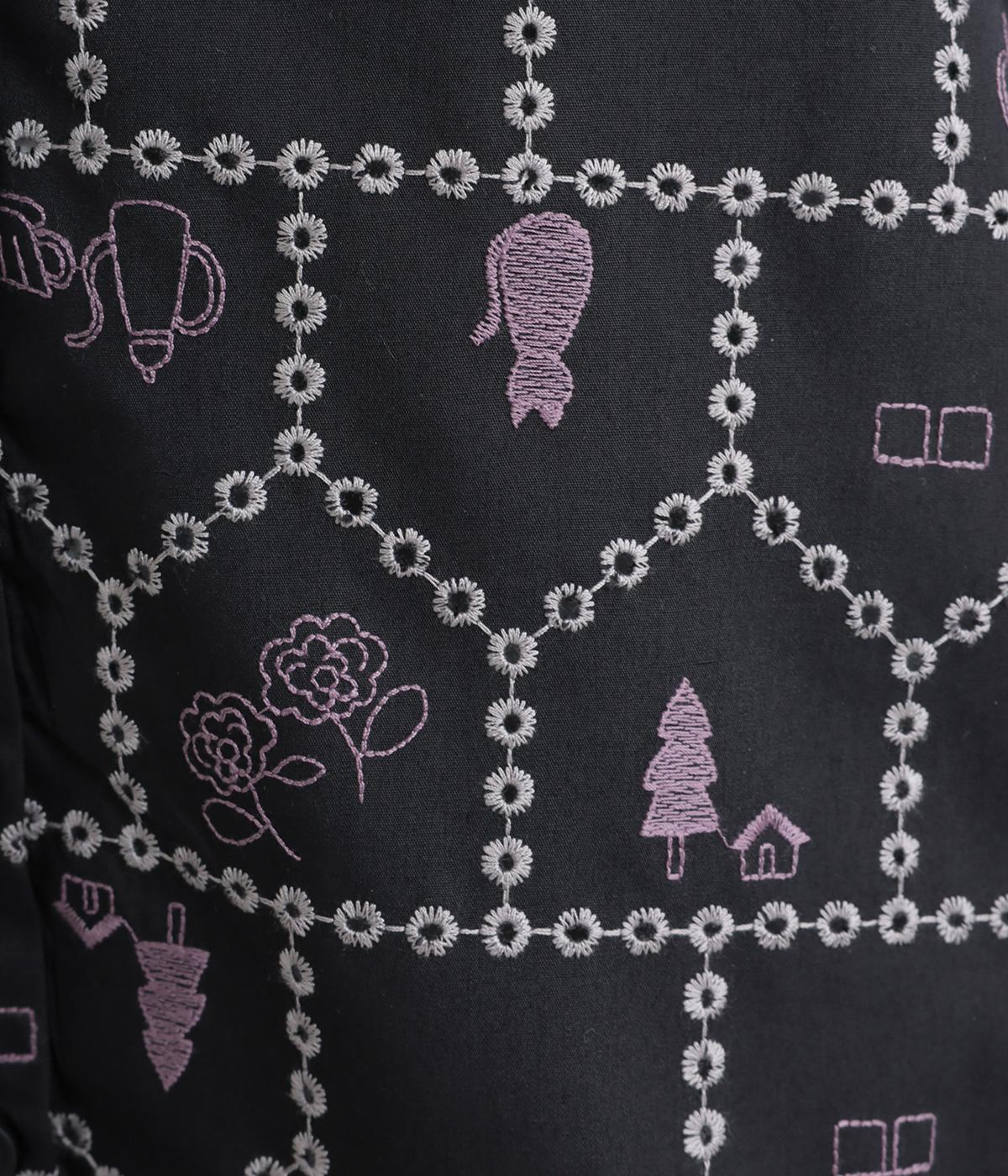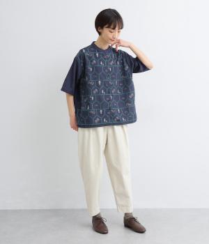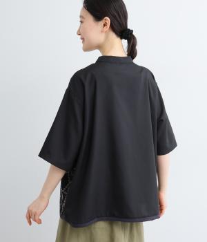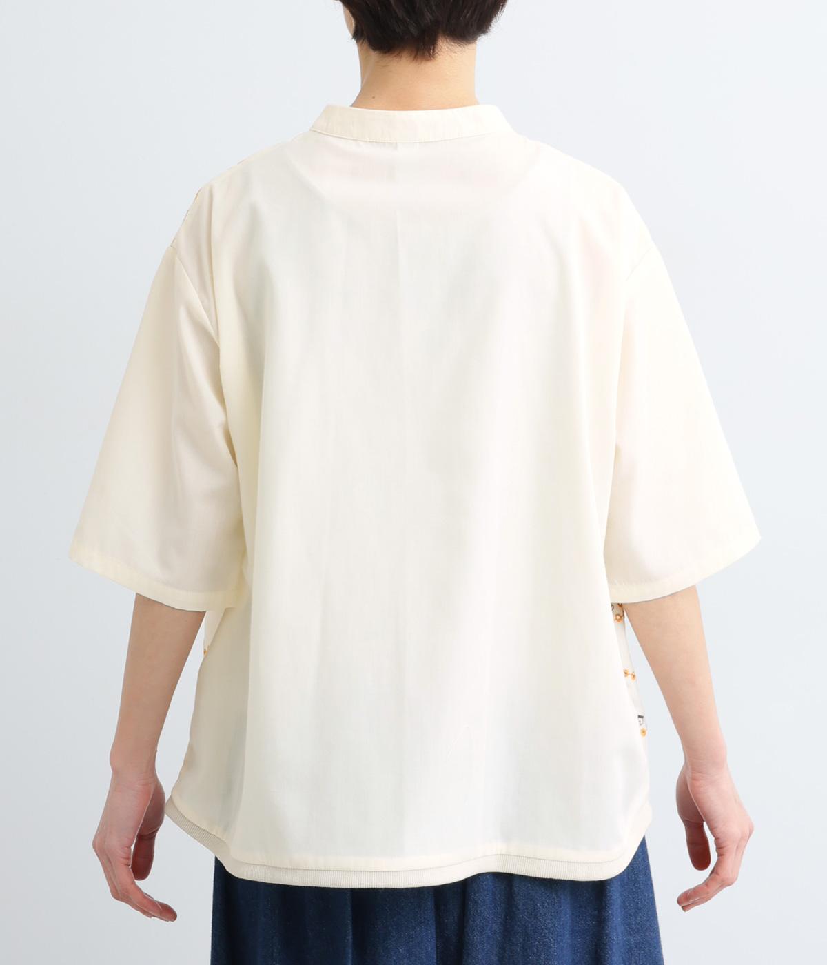 おうちの中をのぞいているような、ほっこりとした気分になる刺しゅう柄シャツ。無地と切り替えているのでうるさくならず、部分的に透かし刺しゅうを取り入れているので適度な抜け感があり、バランスのいい仕上がりです。