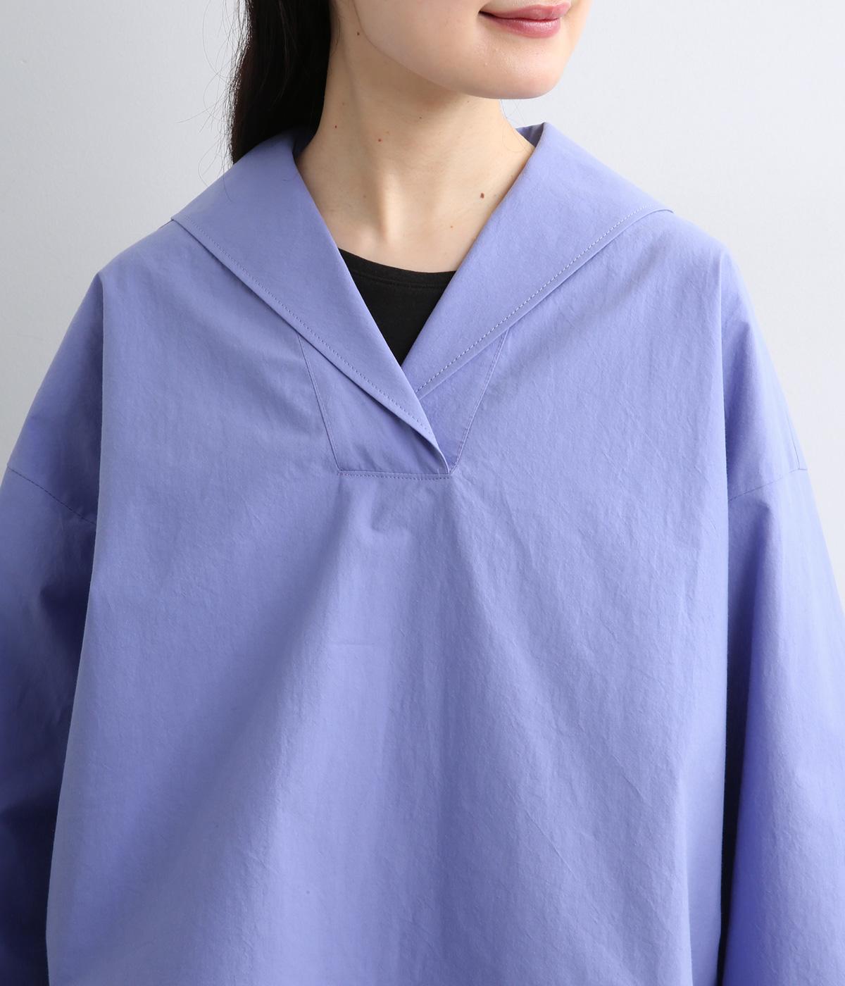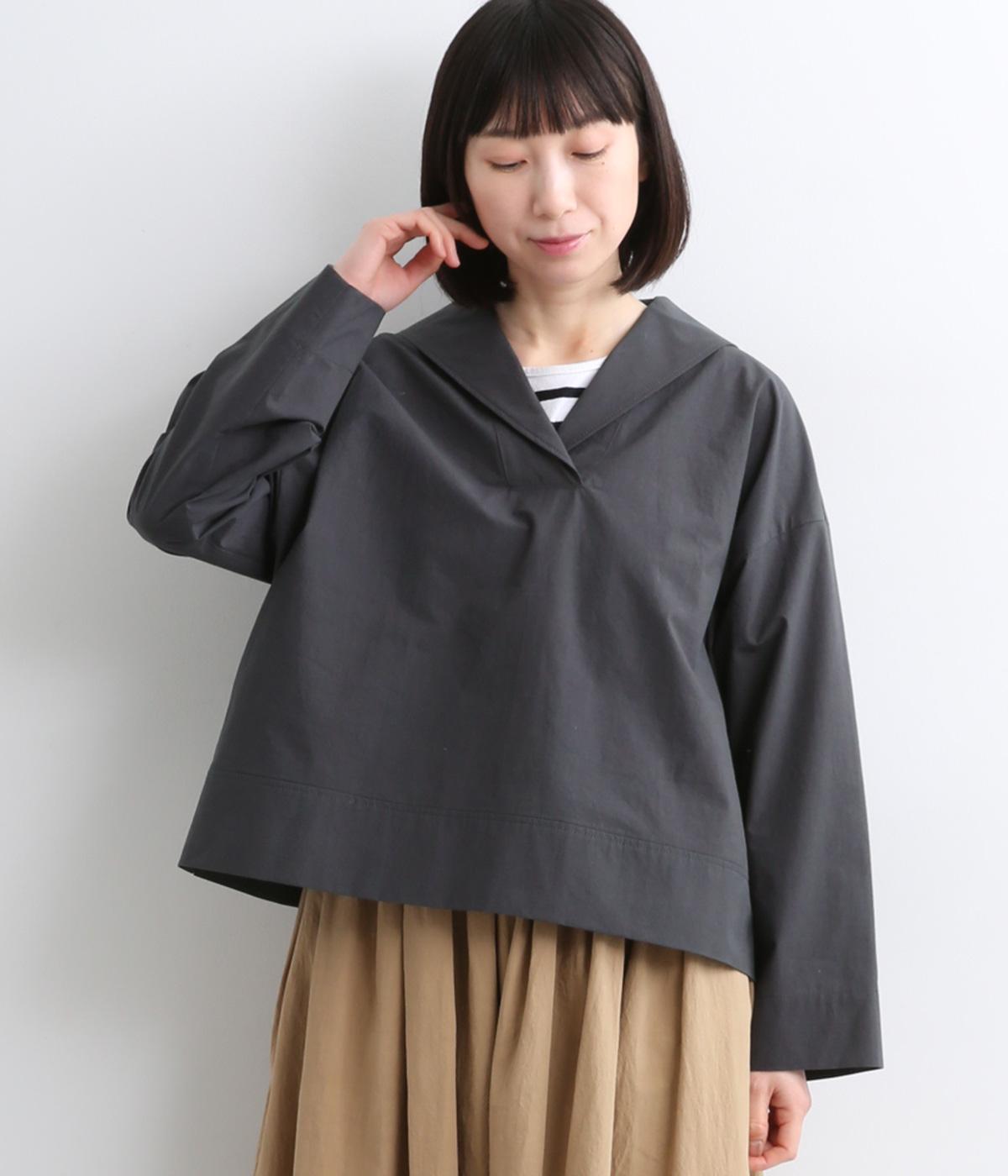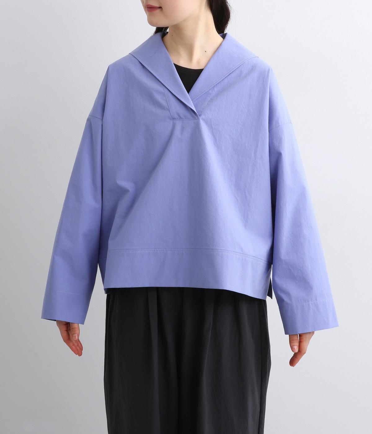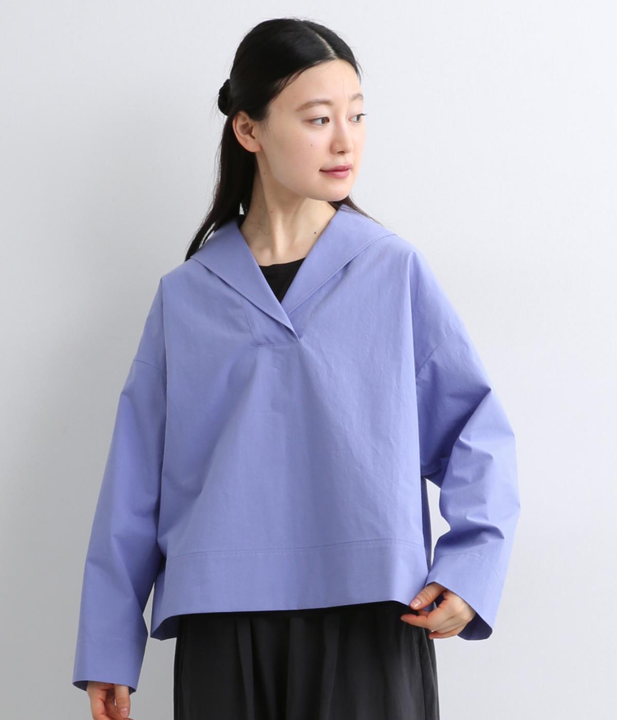 すっきりとしたボックスシルエットにセーラーカラーが映える一枚。シンプルな作りが、自然なやわらかさと凛とした表情を併せ持った雰囲気のいい素材感を惹き立てます。サイドスリット入りでボトム合わせもきれいに決まり、デイリースタイルを格上げする存在。