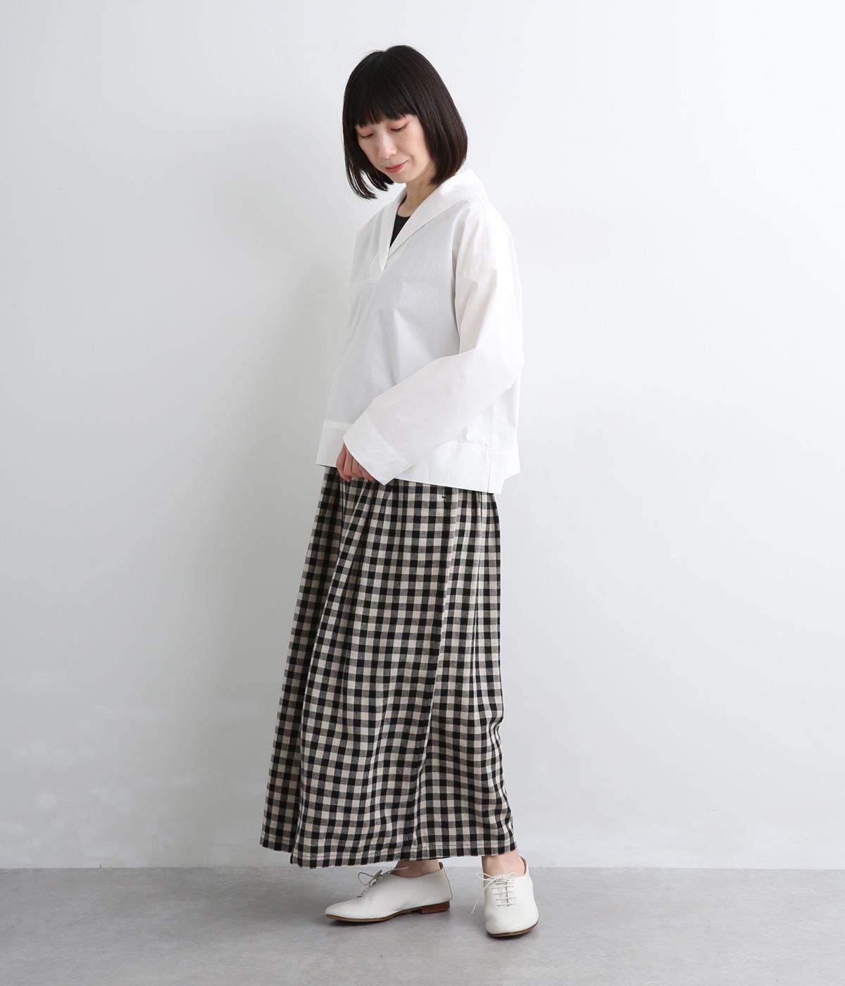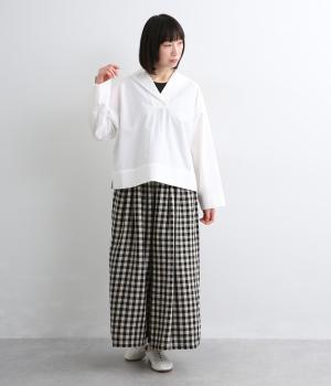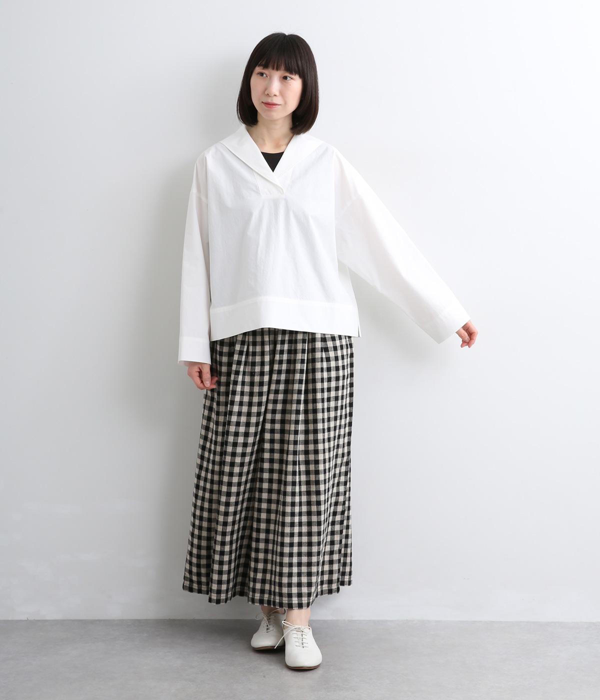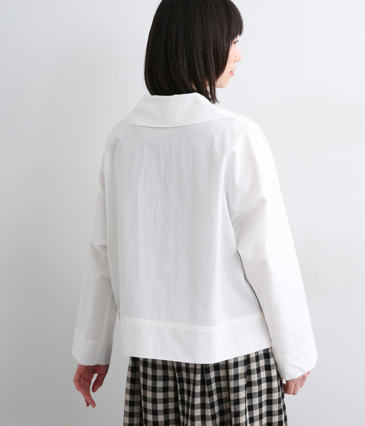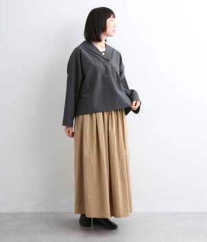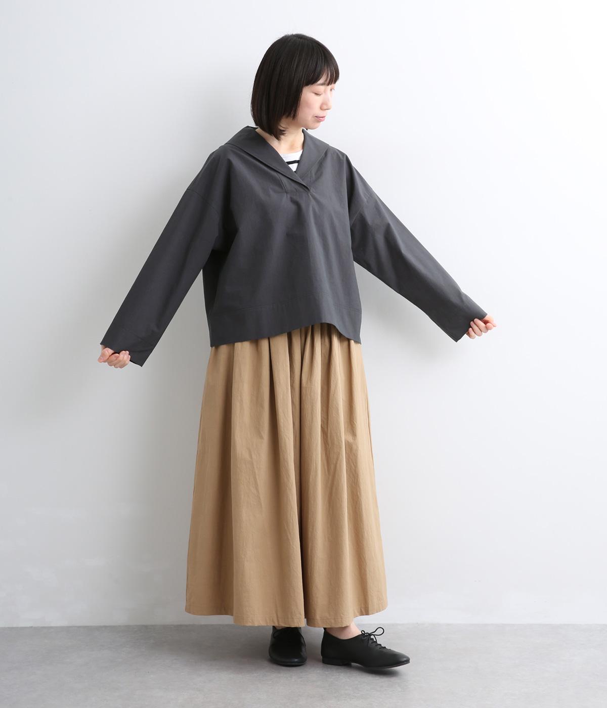 すっきりとしたボックスシルエットにセーラーカラーが映える一枚。シンプルな作りが、自然なやわらかさと凛とした表情を併せ持った雰囲気のいい素材感を惹き立てます。サイドスリット入りでボトム合わせもきれいに決まり、デイリースタイルを格上げする存在。