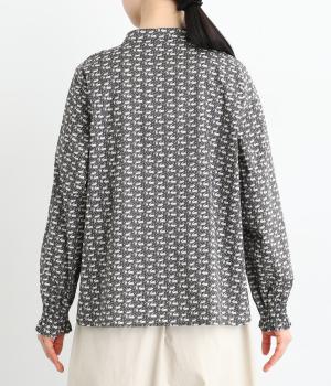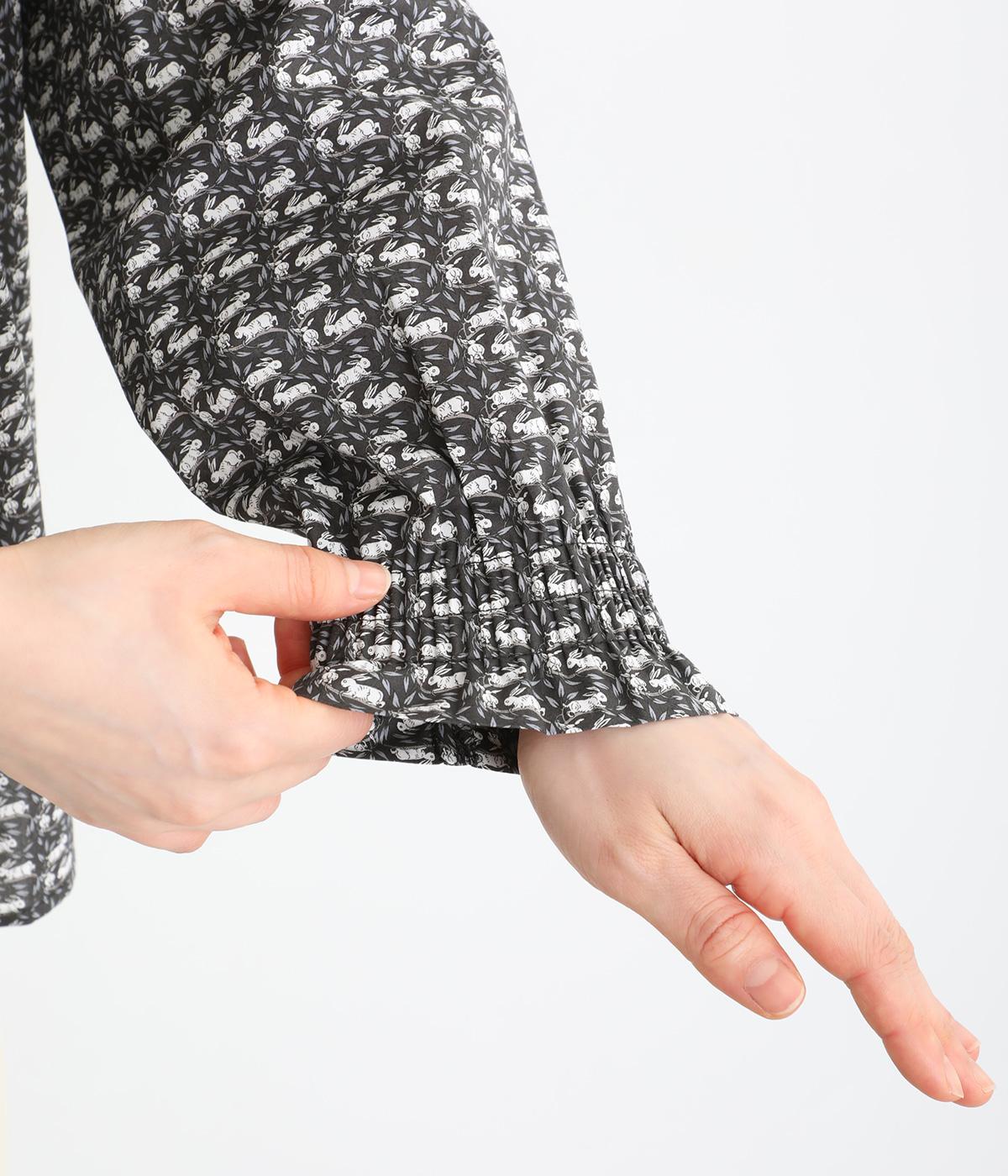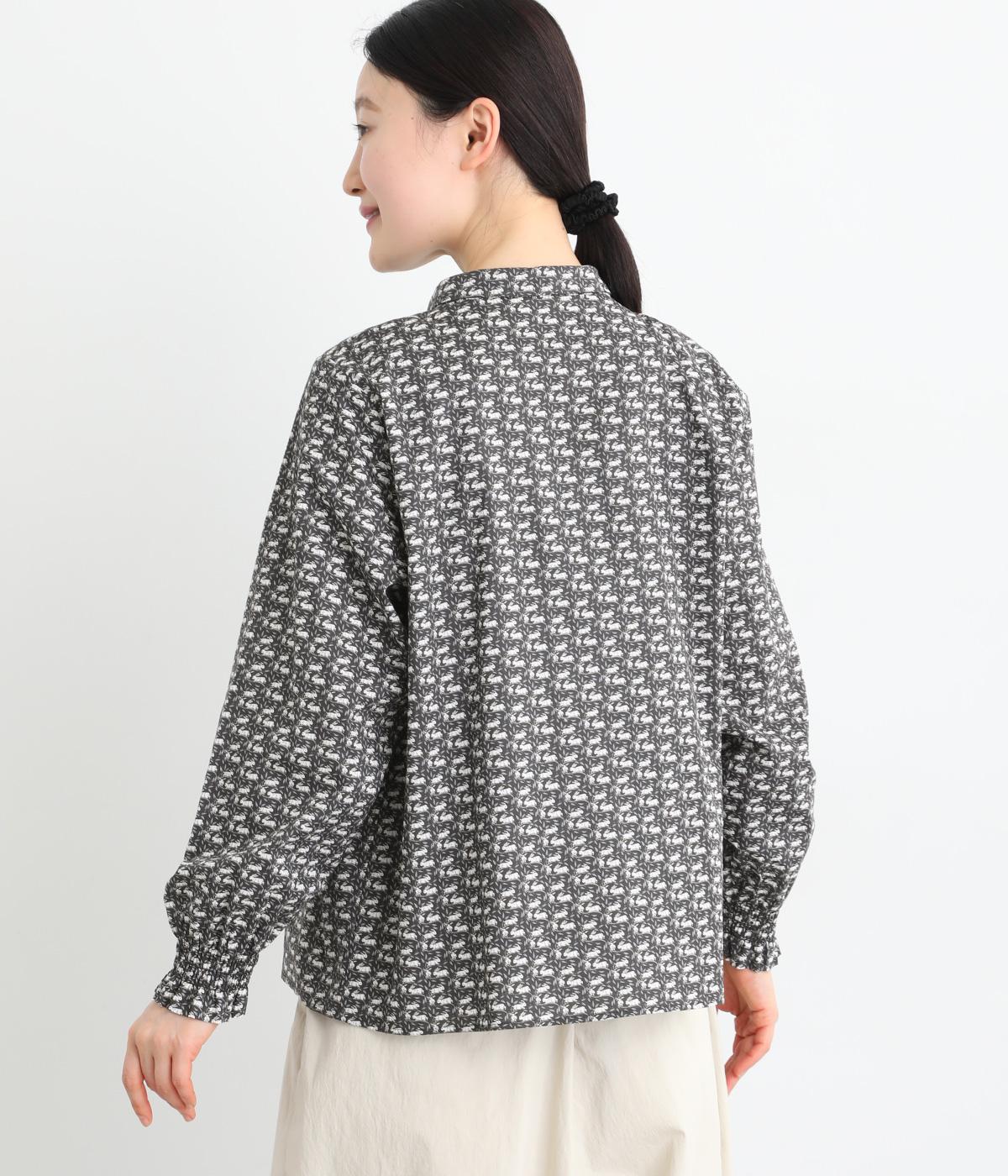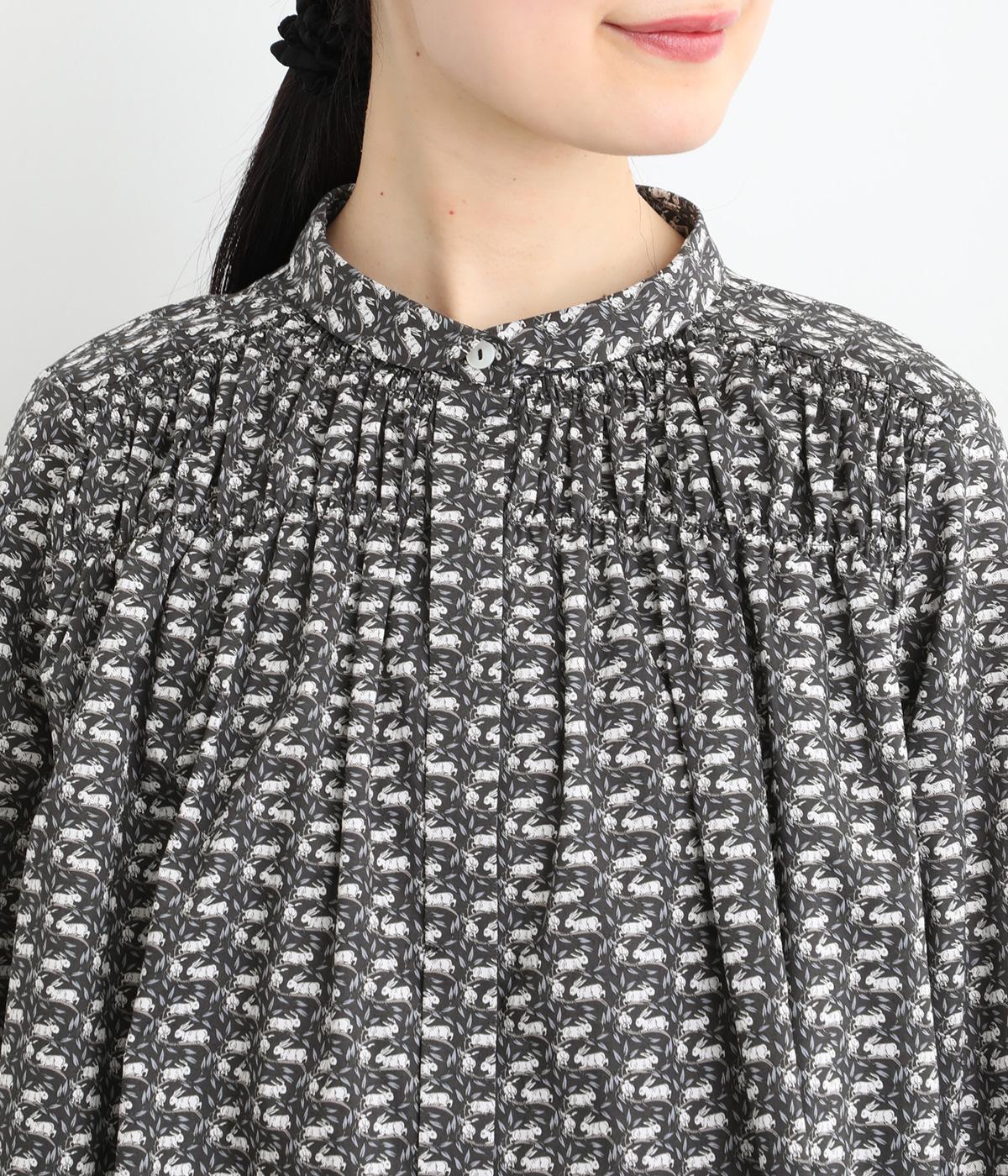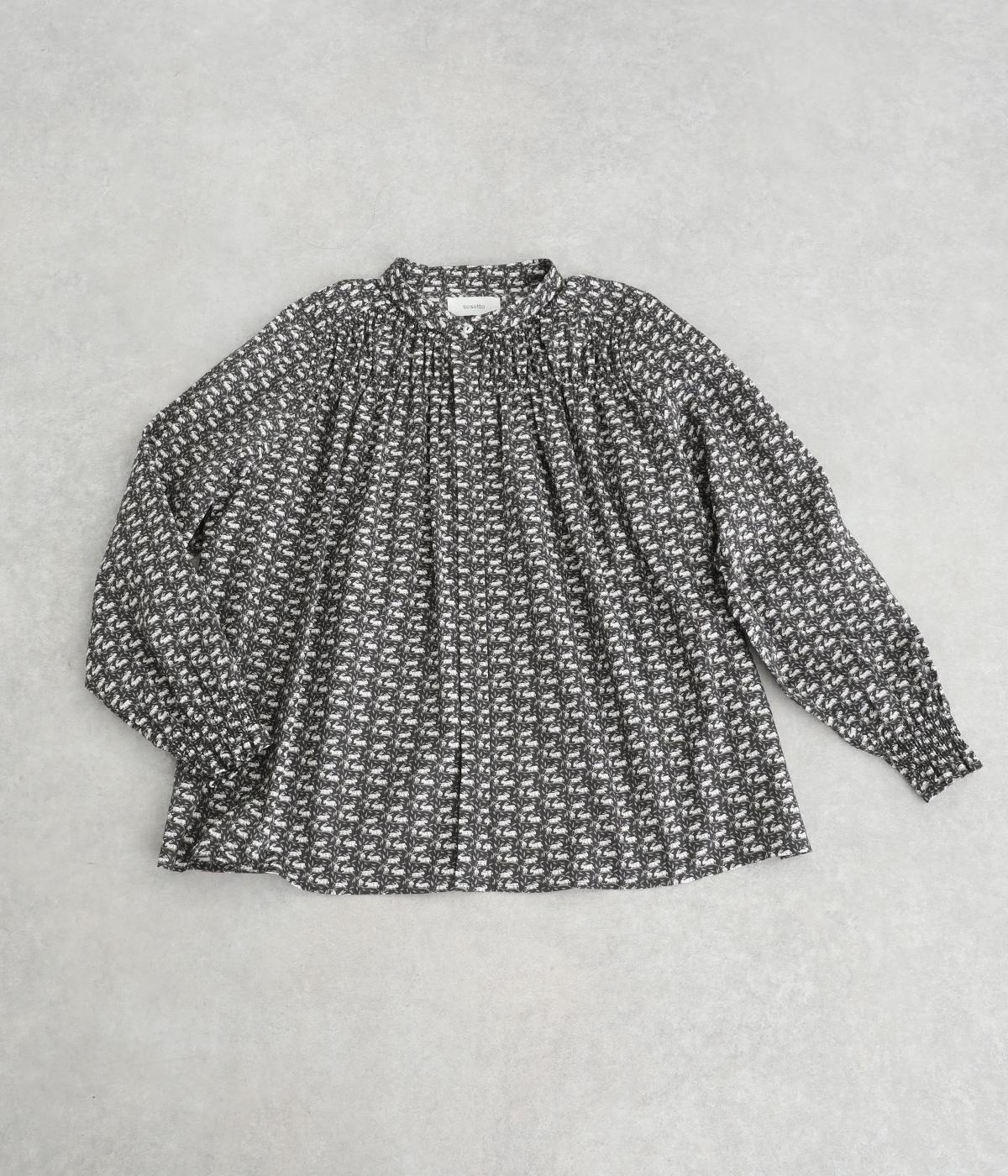 個性と上品さを兼ね備えたsosotto別注のウサギ柄「COTTONTAIL」。ほどよい華やかさで大人の表情を引き立てます。小さな襟とシャーリングがクラシカルなムードを演出し、袖口のゴムシャーリングで袖丈の調節もしやすく仕上げました。