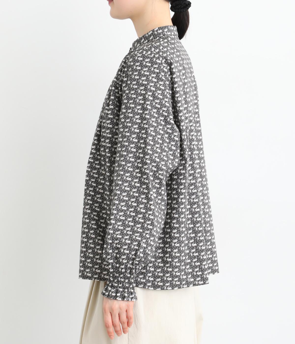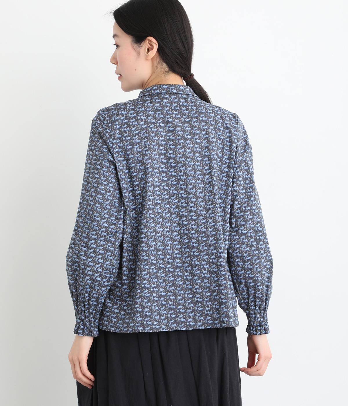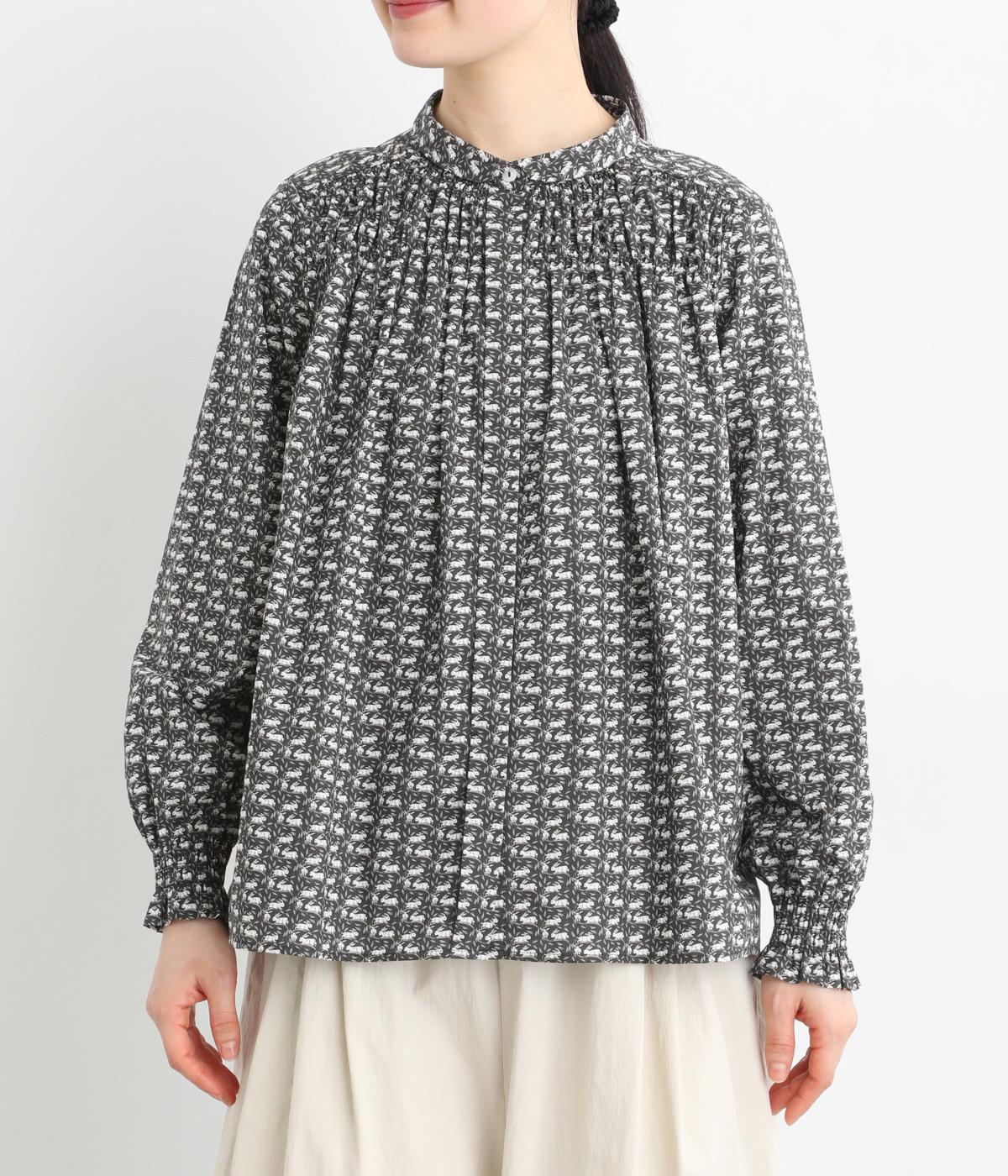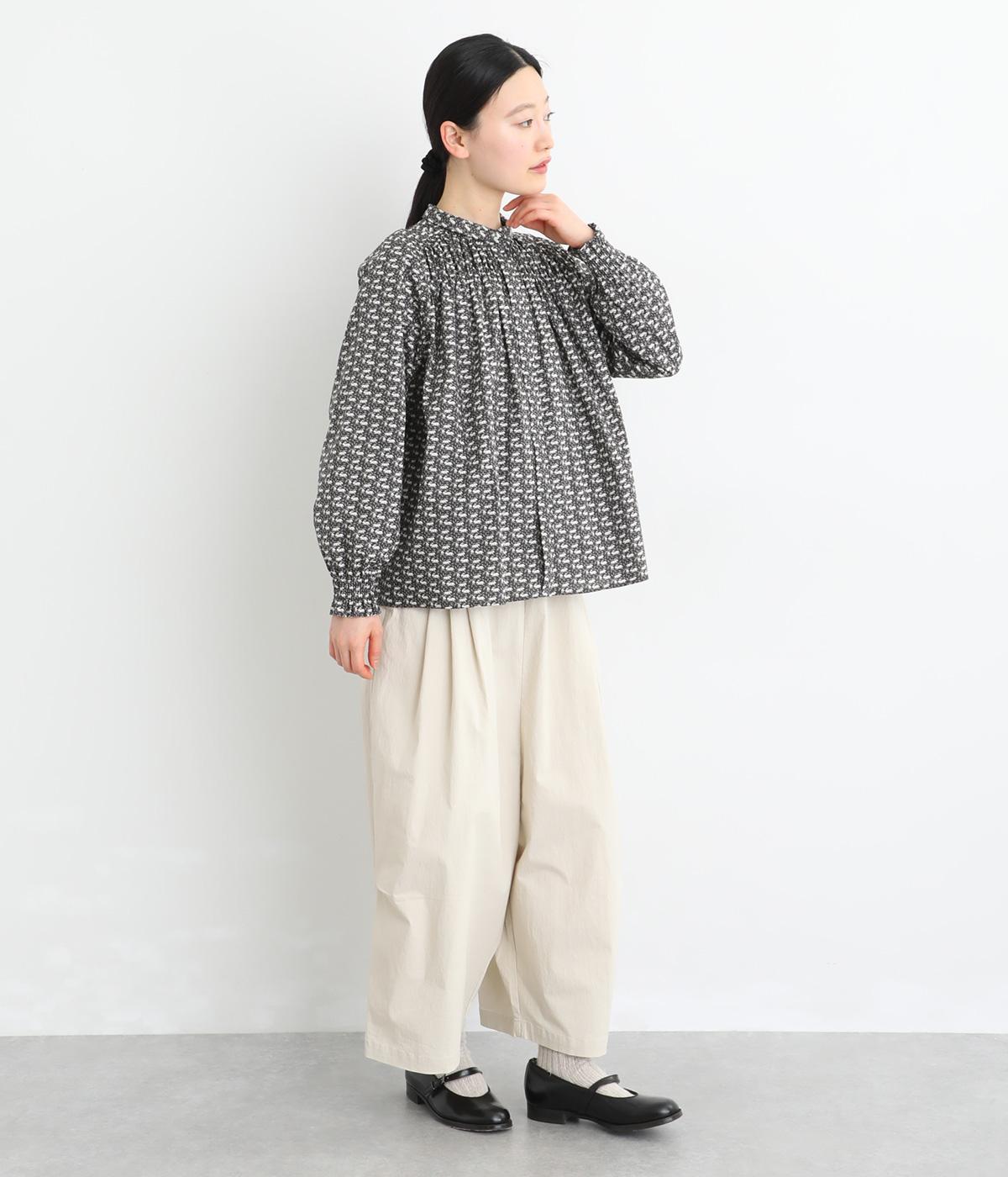個性と上品さを兼ね備えたsosotto別注のウサギ柄「COTTONTAIL」。ほどよい華やかさで大人の表情を引き立てます。小さな襟とシャーリングがクラシカルなムードを演出し、袖口のゴムシャーリングで袖丈の調節もしやすく仕上げました。