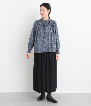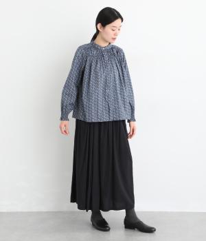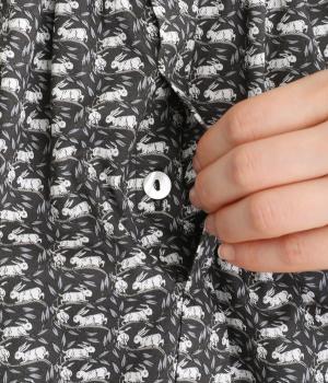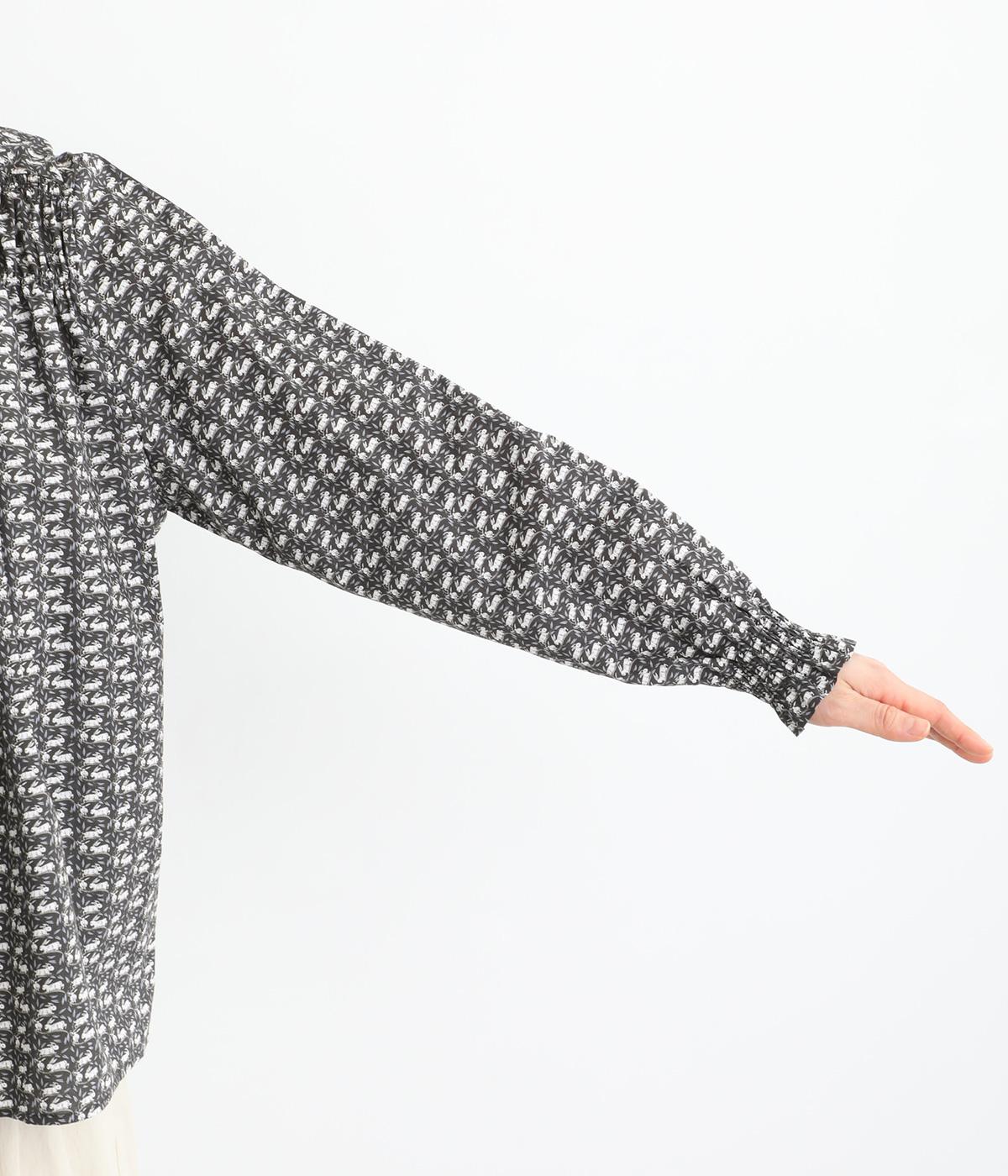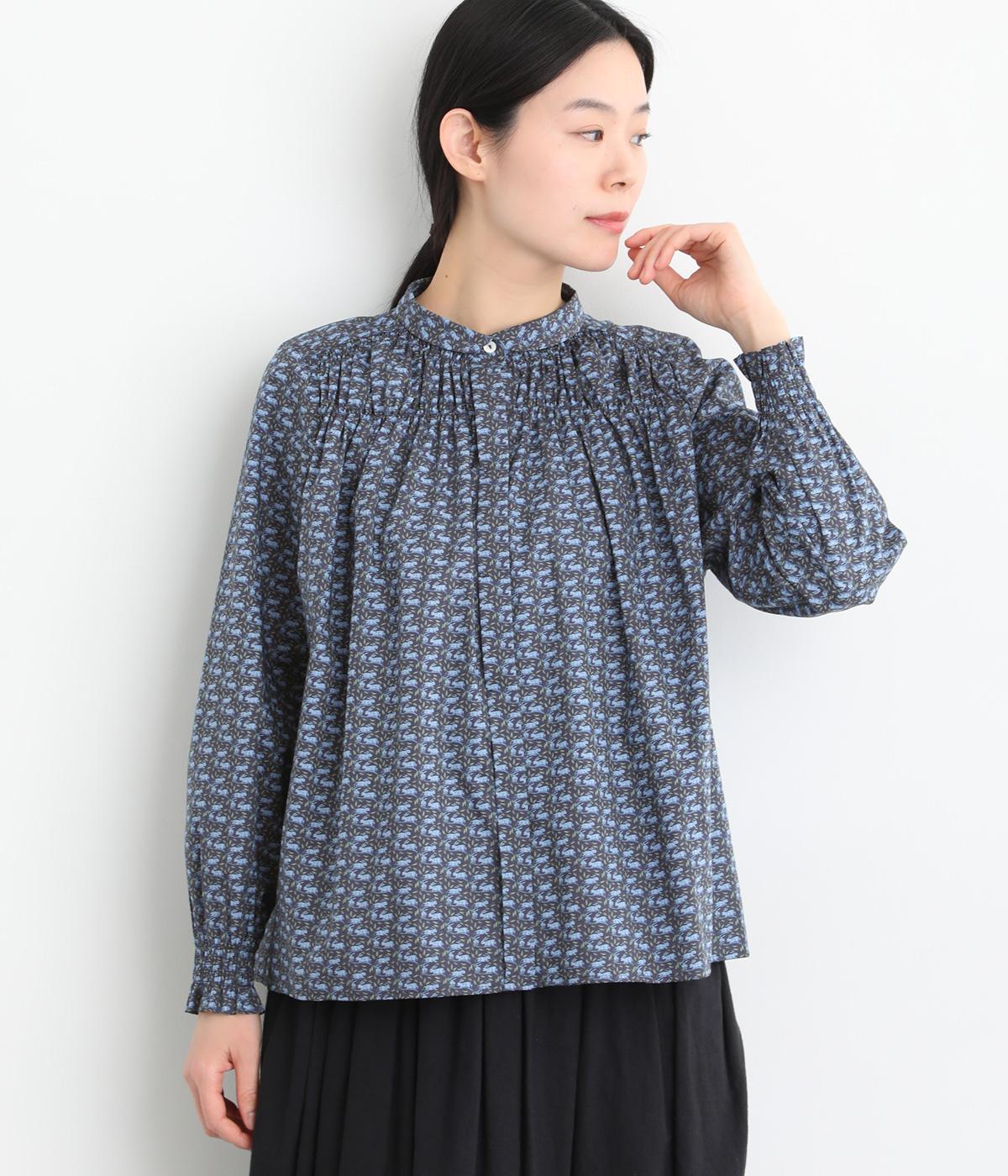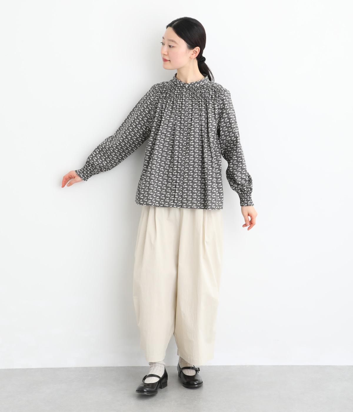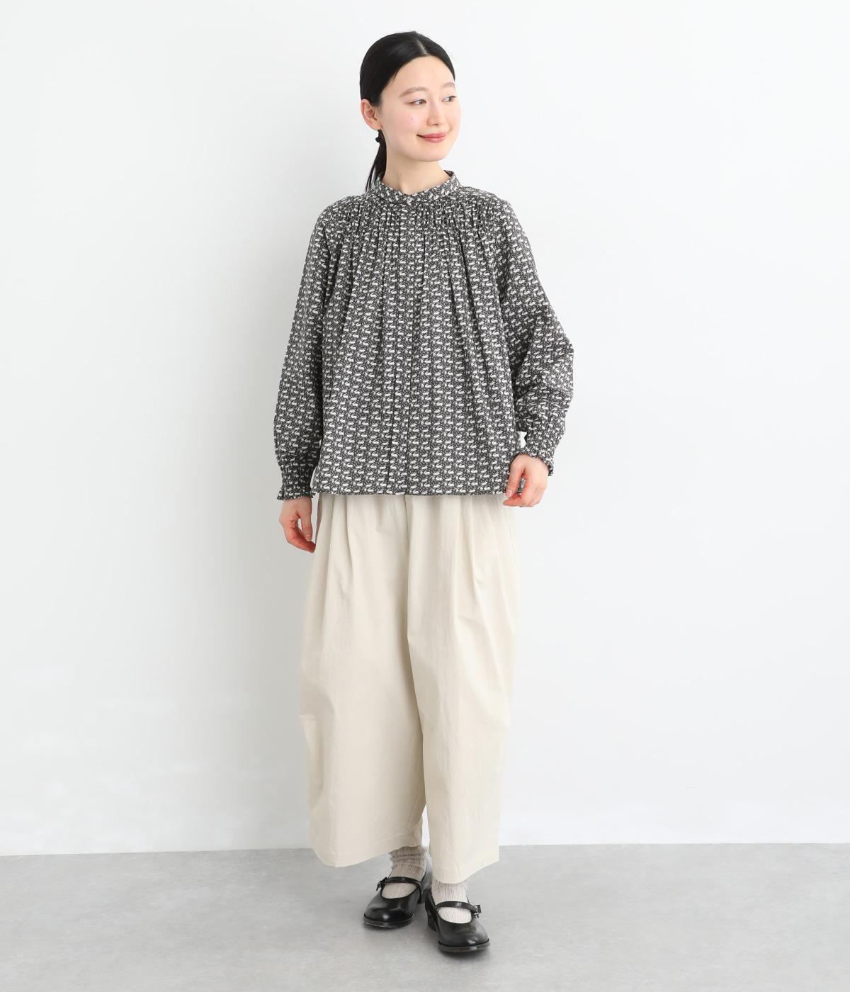 個性と上品さを兼ね備えたsosotto別注のウサギ柄「COTTONTAIL」。ほどよい華やかさで大人の表情を引き立てます。小さな襟とシャーリングがクラシカルなムードを演出し、袖口のゴムシャーリングで袖丈の調節もしやすく仕上げました。