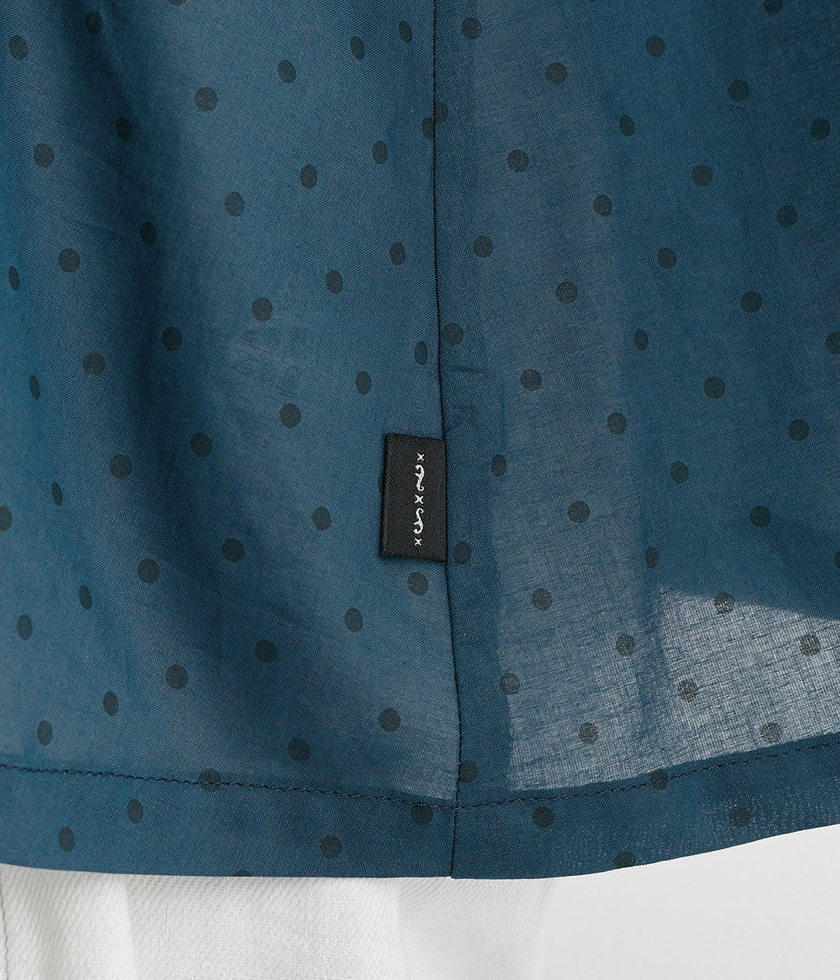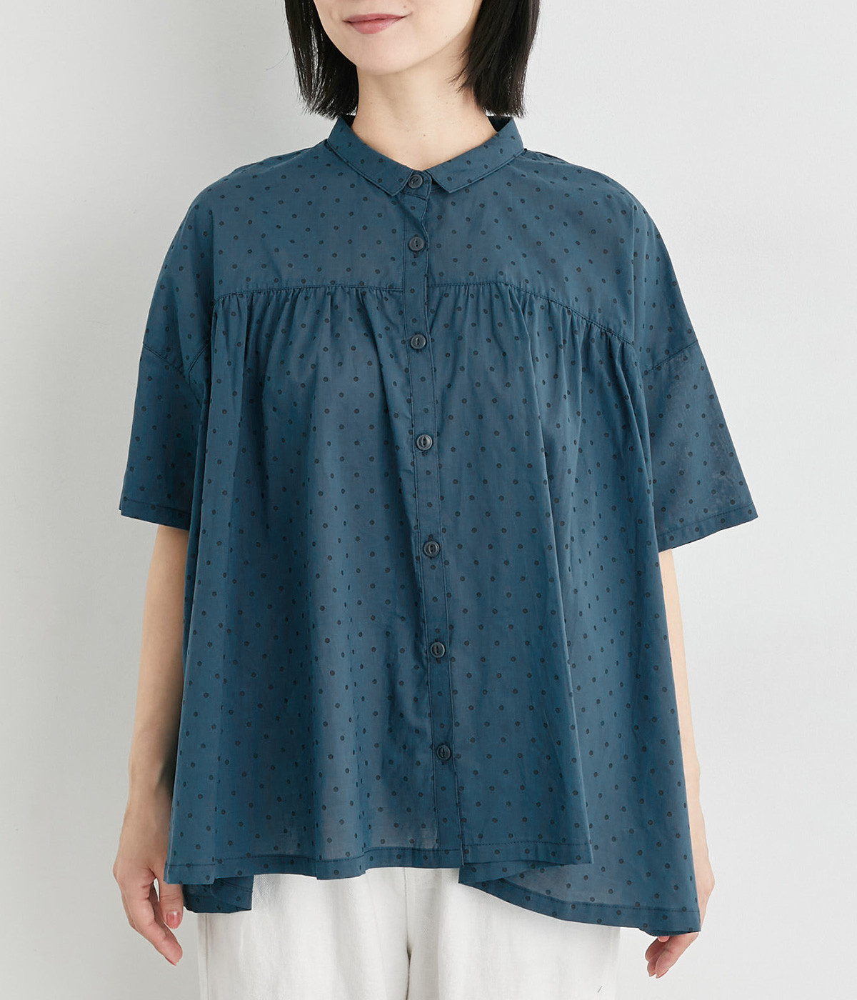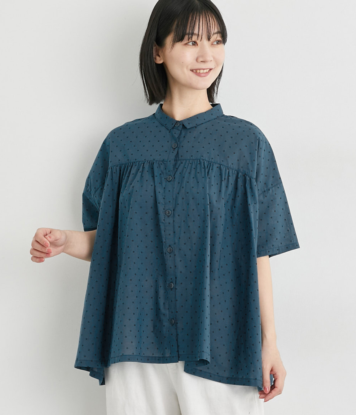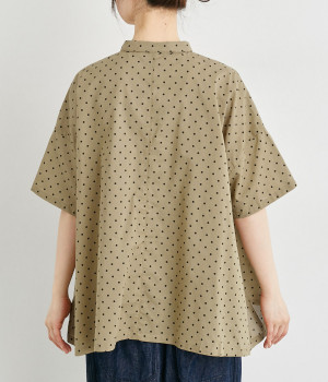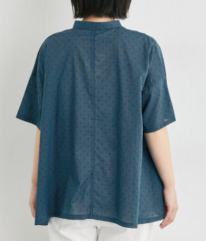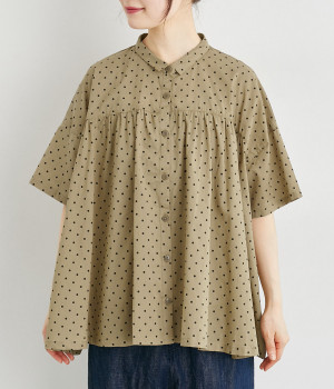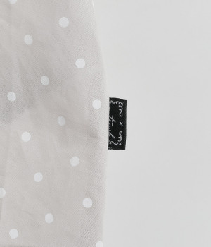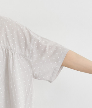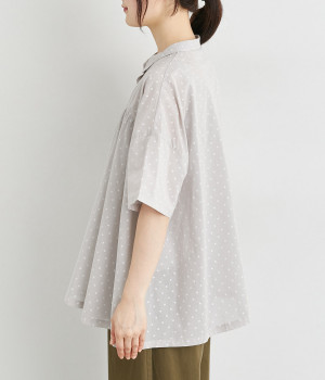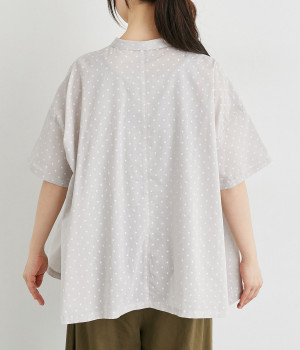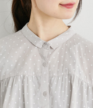 ほのかに透け感のある、薄手で涼しげなコットンローン生地を使用しています。細かいドットプリントがほどこされていてノスタルジックな雰囲気があります。