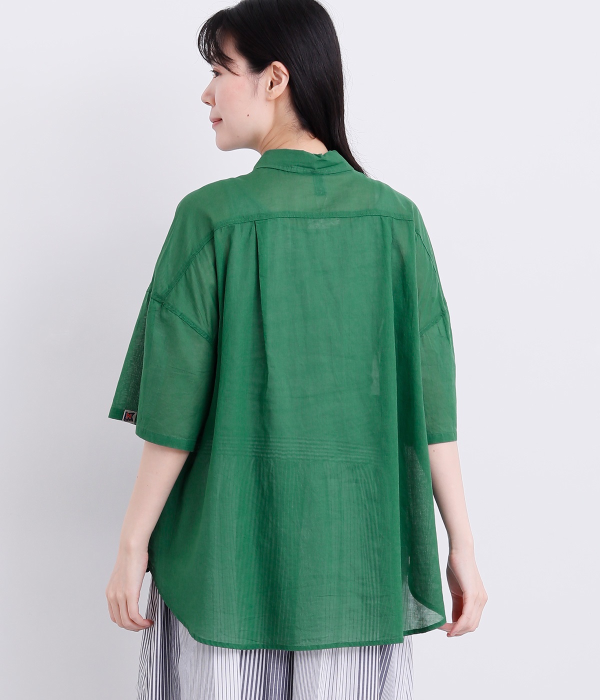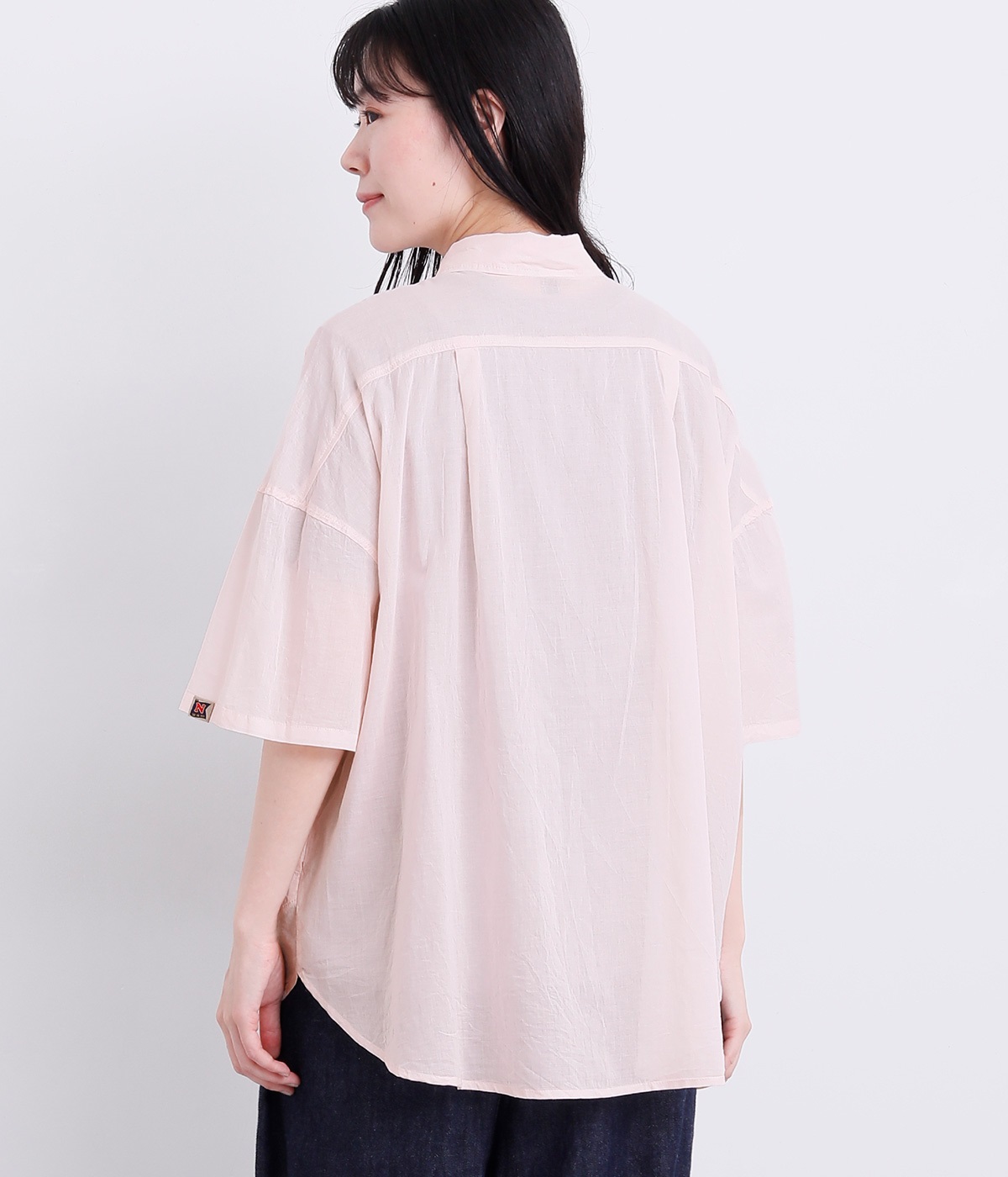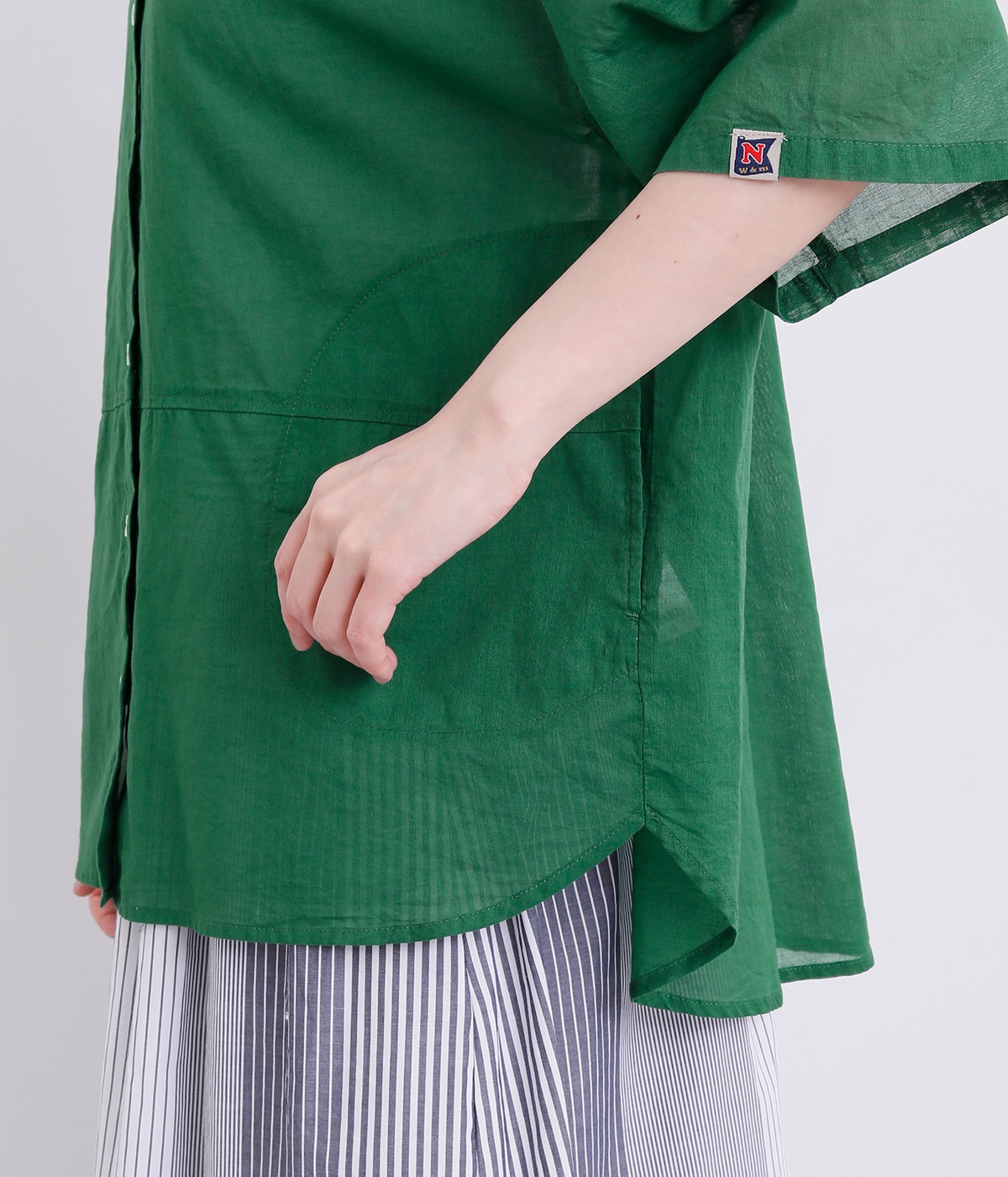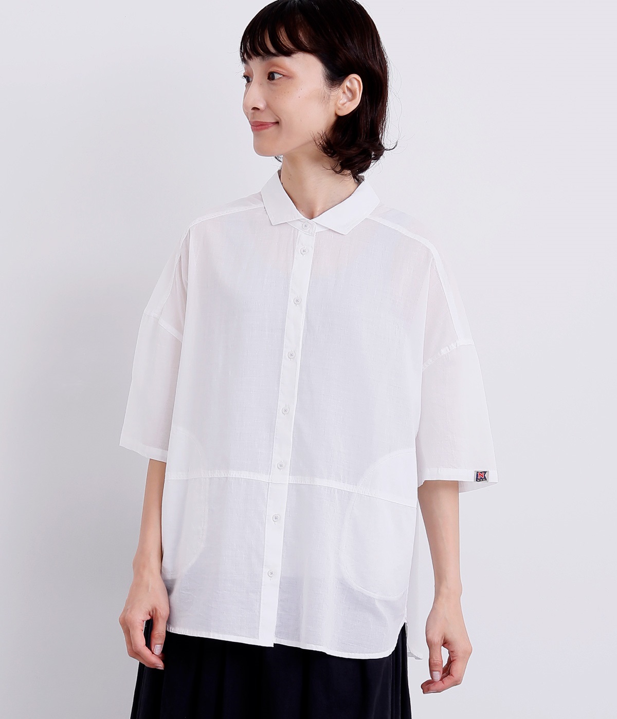 前身頃の切り替えと長めの後ろラウンドヘムでポイントを持たせたロングシャツです。すっきりとしたショートポイントカラーでカジュアル感もアップ。左袖口のNマークのピスネームがさり気ないアクセントになっています。