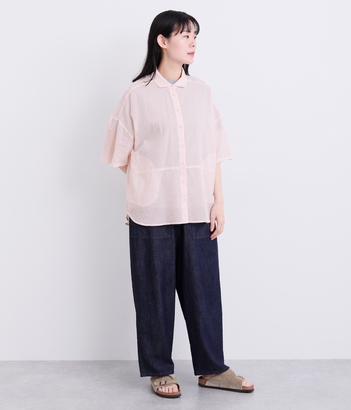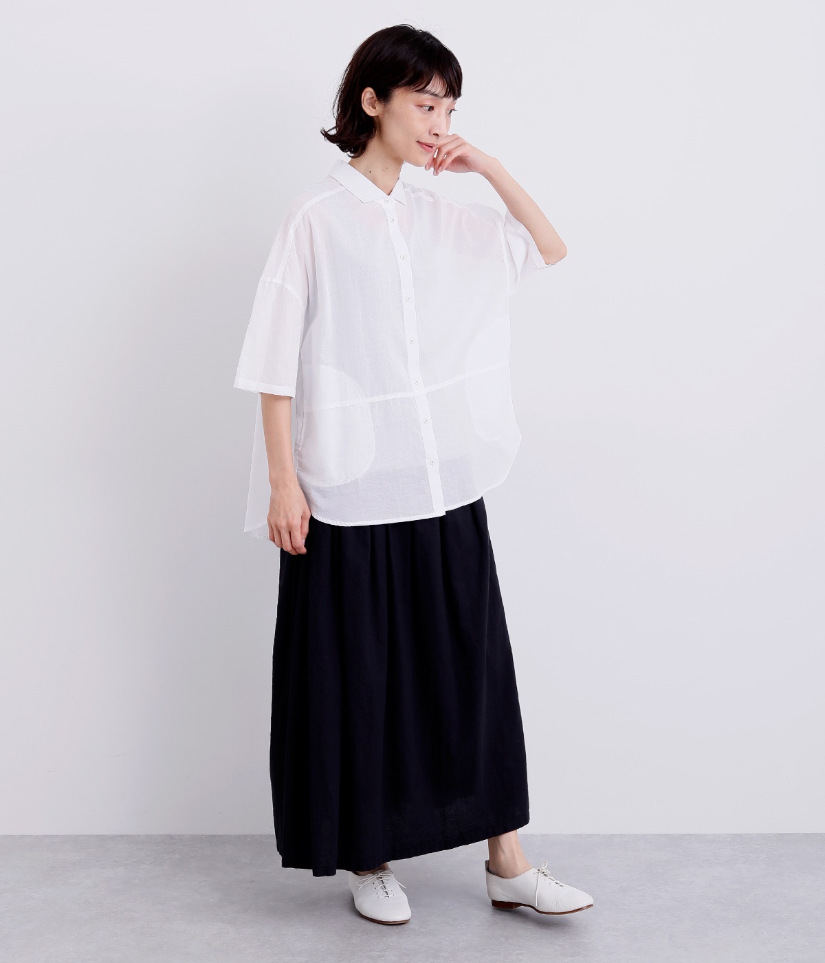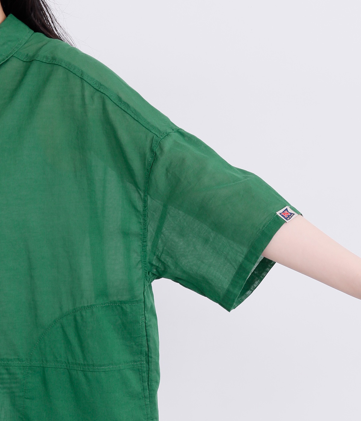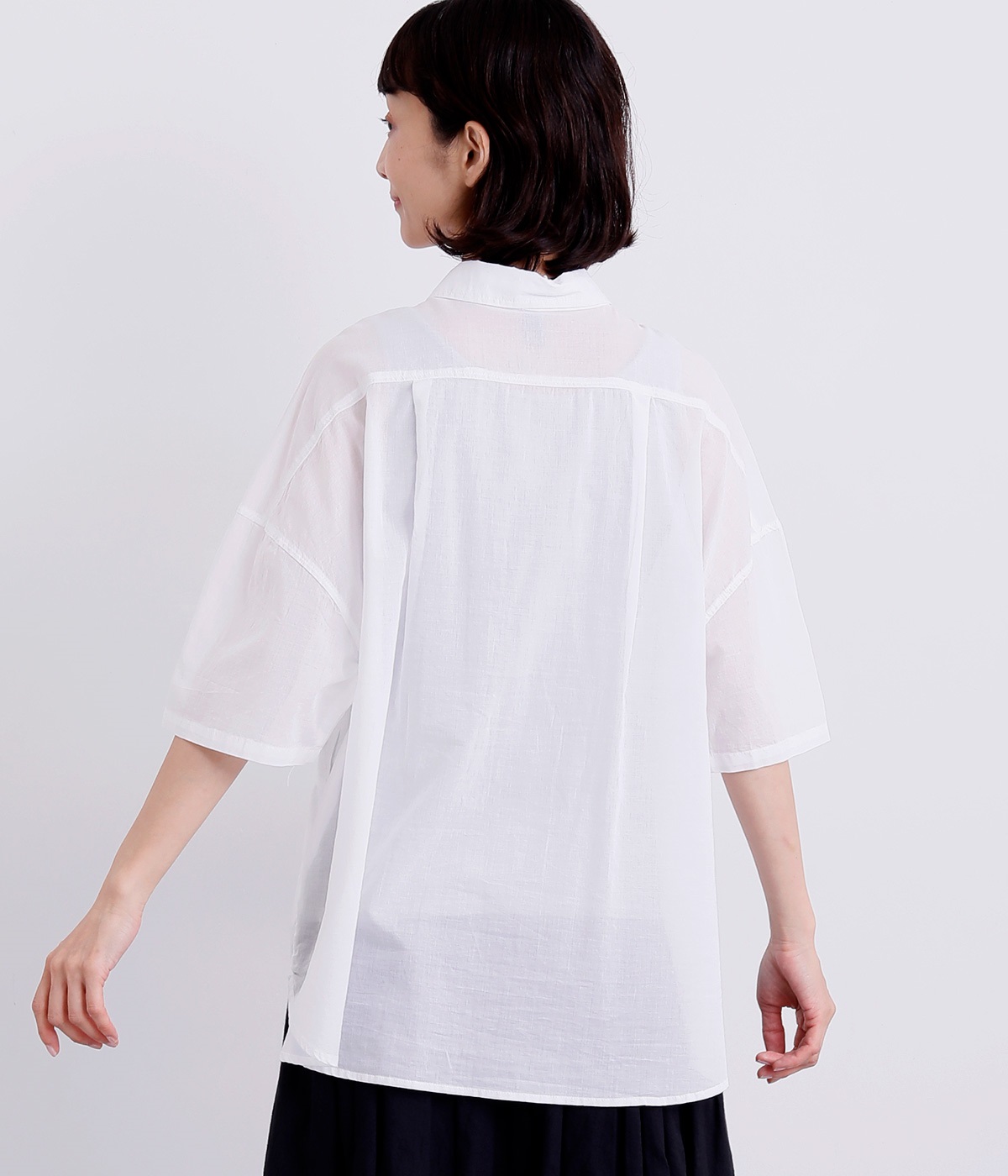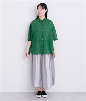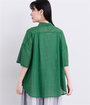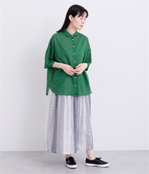 ほのかな透け感とナチュラルな風合いが特徴的なコットンローンを使用しています。薄手ながらほどよいふくらみがあり、通気性もいいので着心地も快適です。