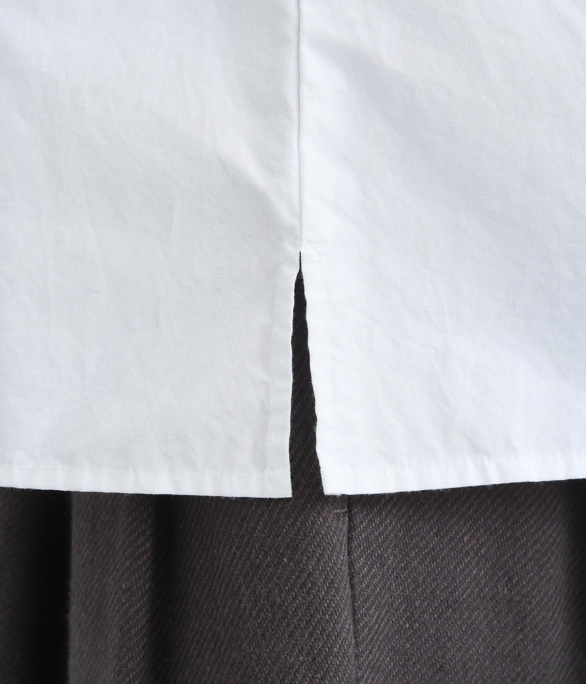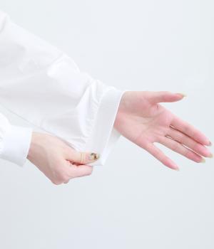 肌ばなれのよいさらりとしたコットン生地を使用しました。清涼感があり、きちんとした印象を与えます。きちんとしたハリがドレープやシルエットをきれいに描きます。