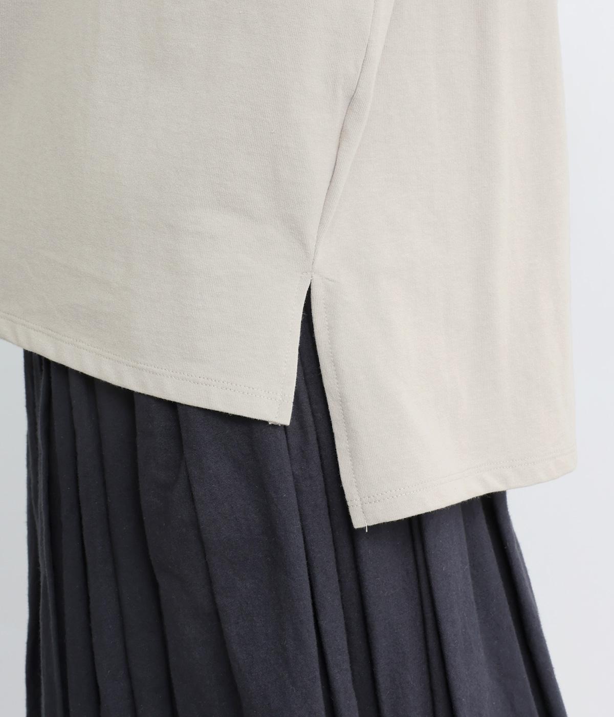 ほどよい厚みでくったりし過ぎない、しなやかなハリのコットン生地を使用しています。伸縮性があって着心地よく、デイリー使いにぴったりな素材感です。