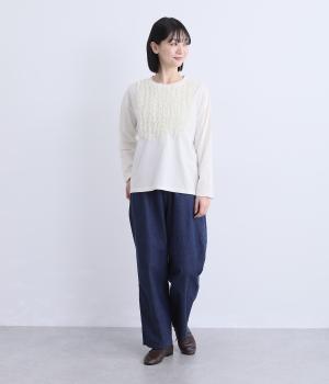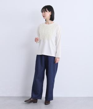 ユーズド調のこなれた表情が魅力のコットン天竺を使用。やわらかで肌なじみが良く、薄めの生地感でロングシーズン快適に着まわせます。