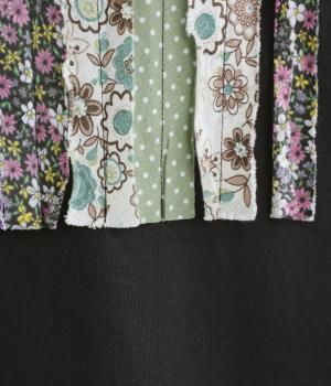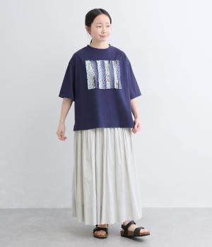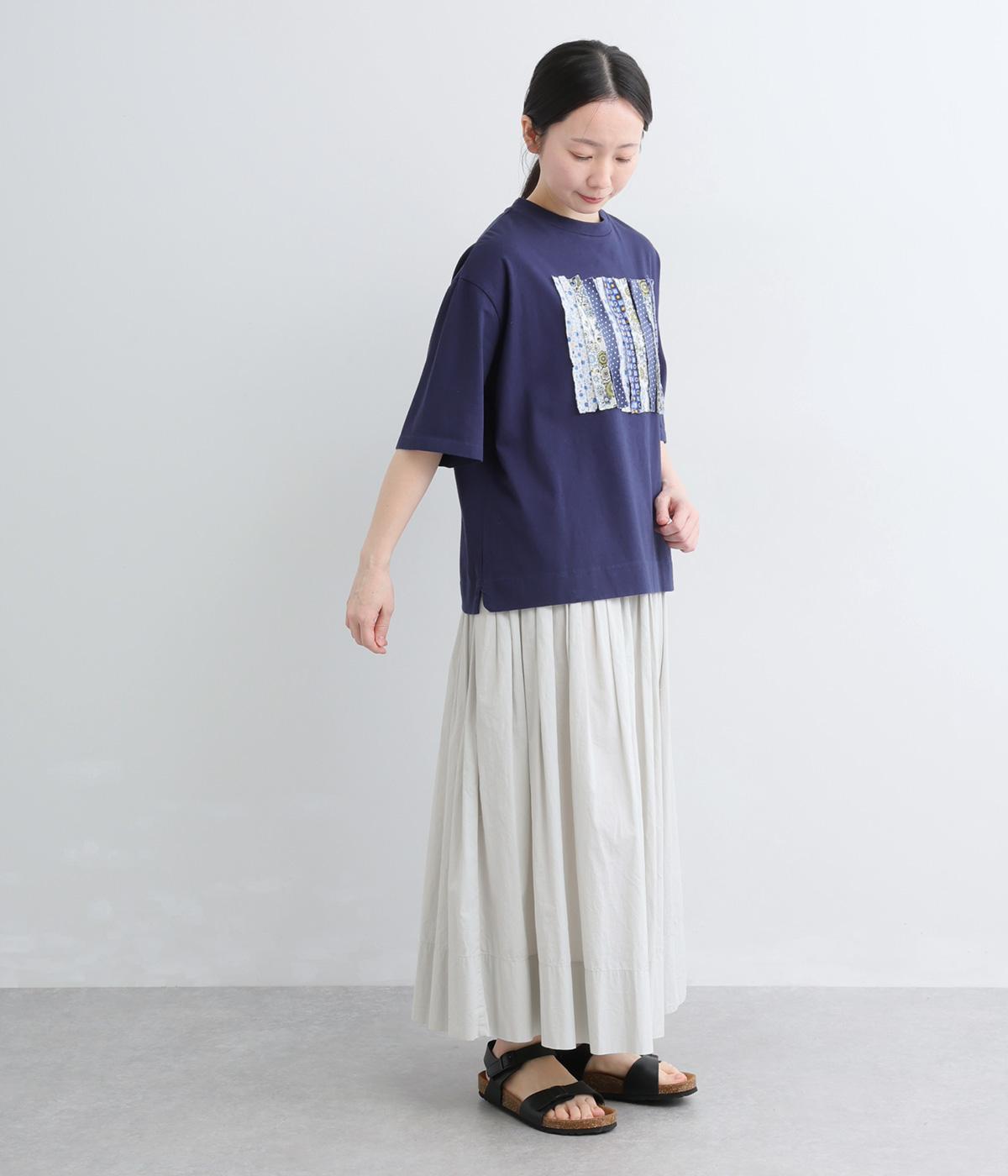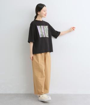 環境に優しいリサイクルコットン100%の天竺生地に、さまざまな花柄の布帛を組み合わせました。ほどよい厚みがありながら、さらりと心地よい着心地です。