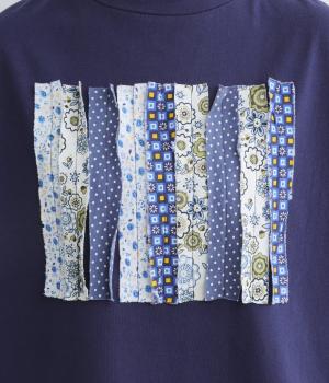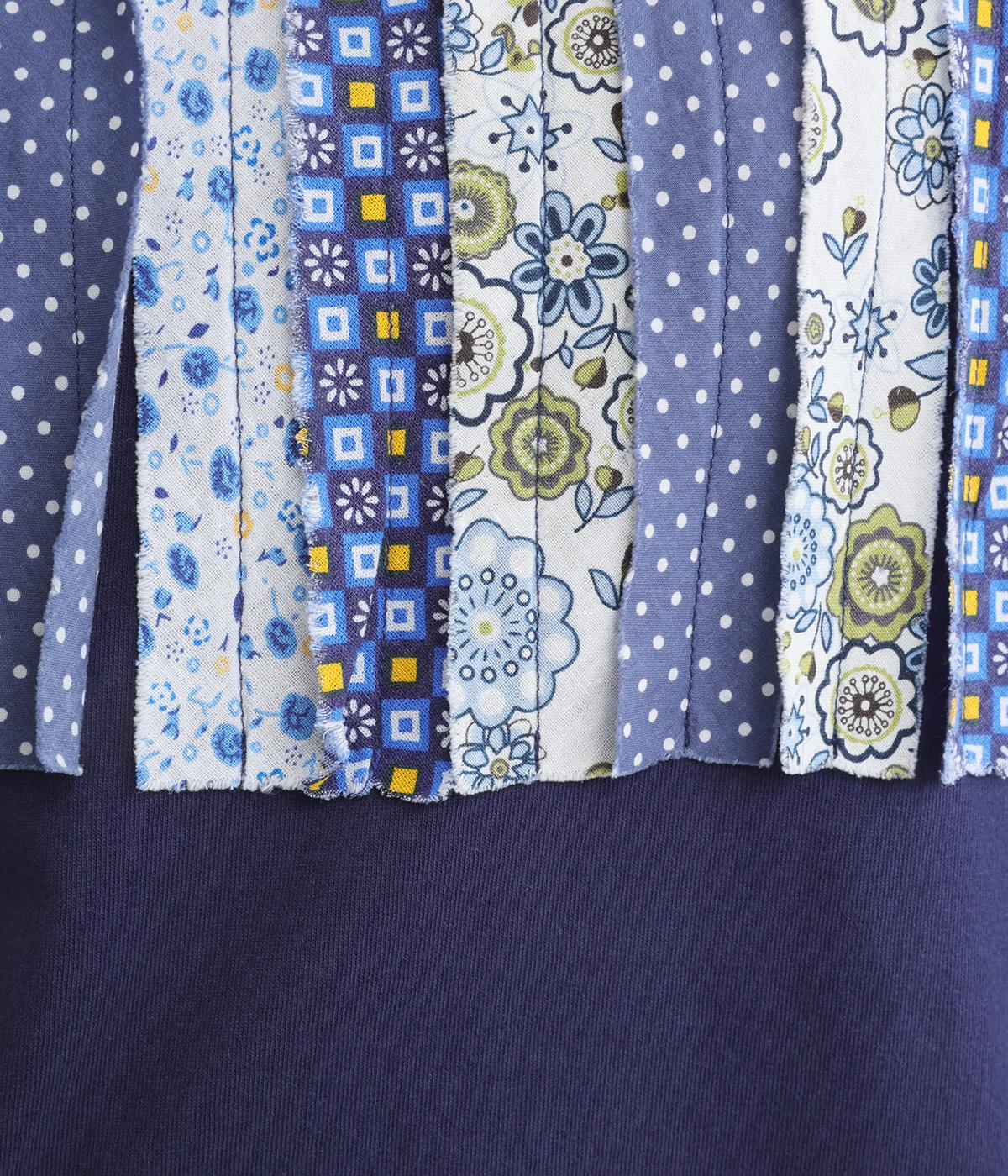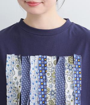胸元に花柄の布帛を何本も貼り合わせたリメイク風プルオーバーです。さまざまな柄が織りなす奥行きのある表情が、装いのアクセントになります。さらりと着るだけで、さりげない個性が光るデザインです。