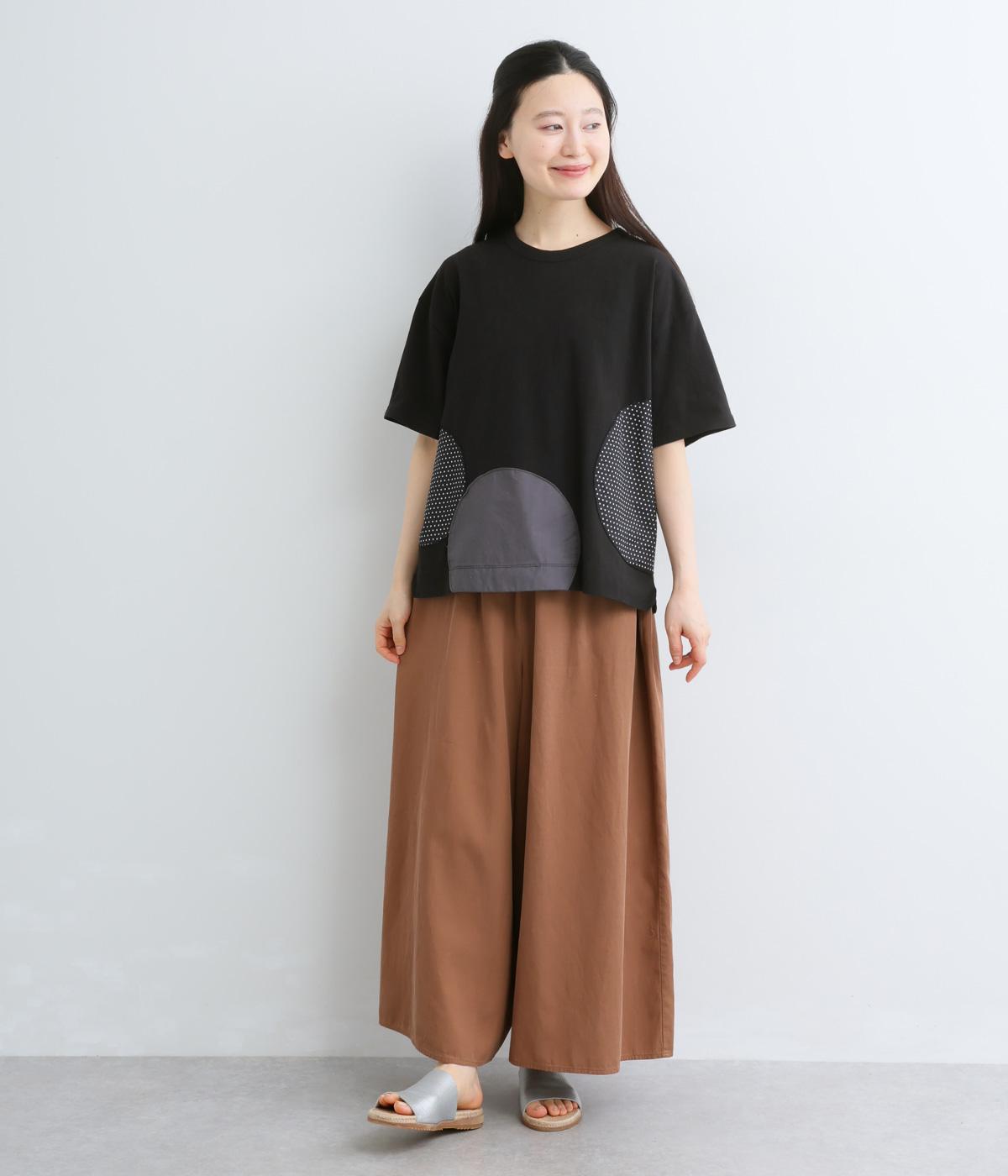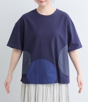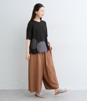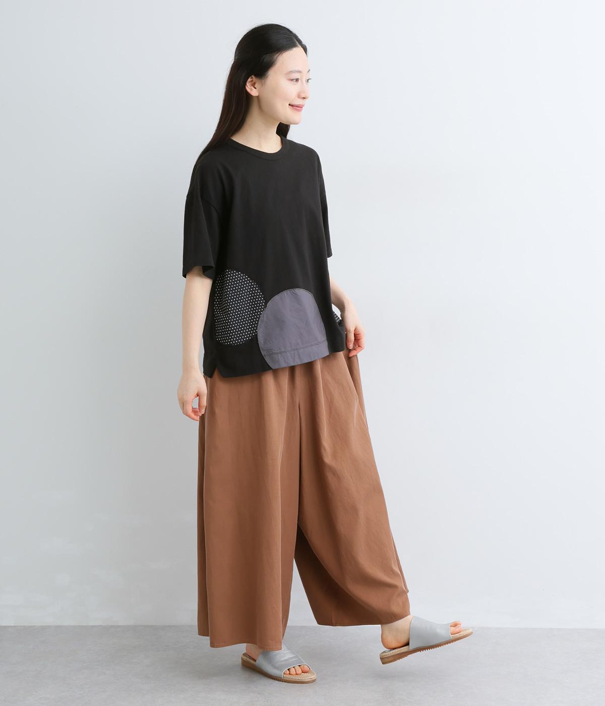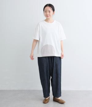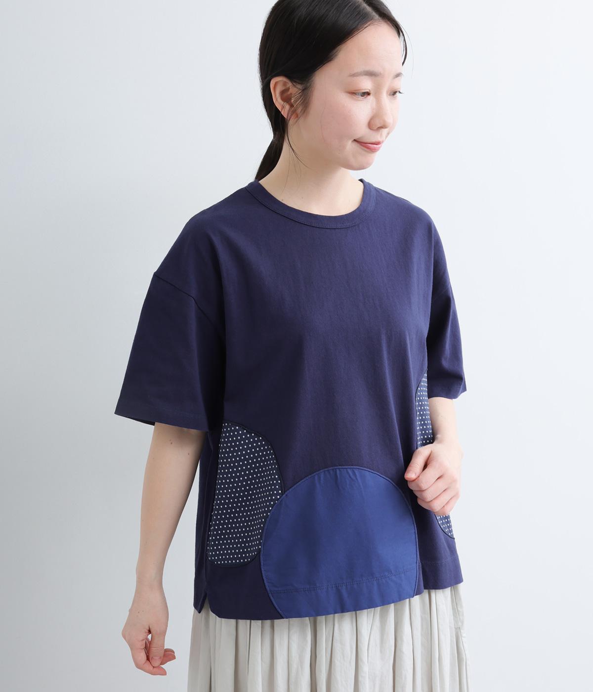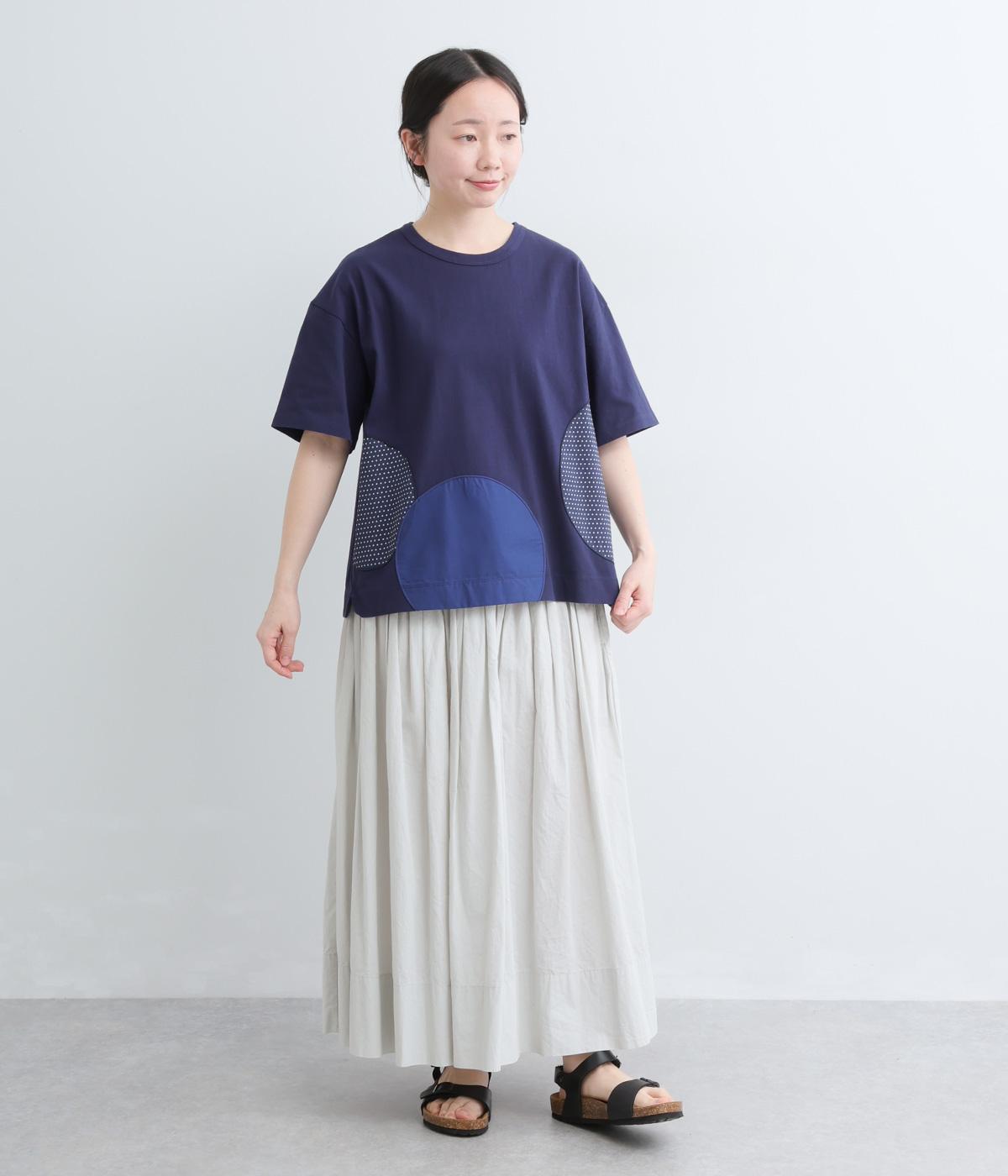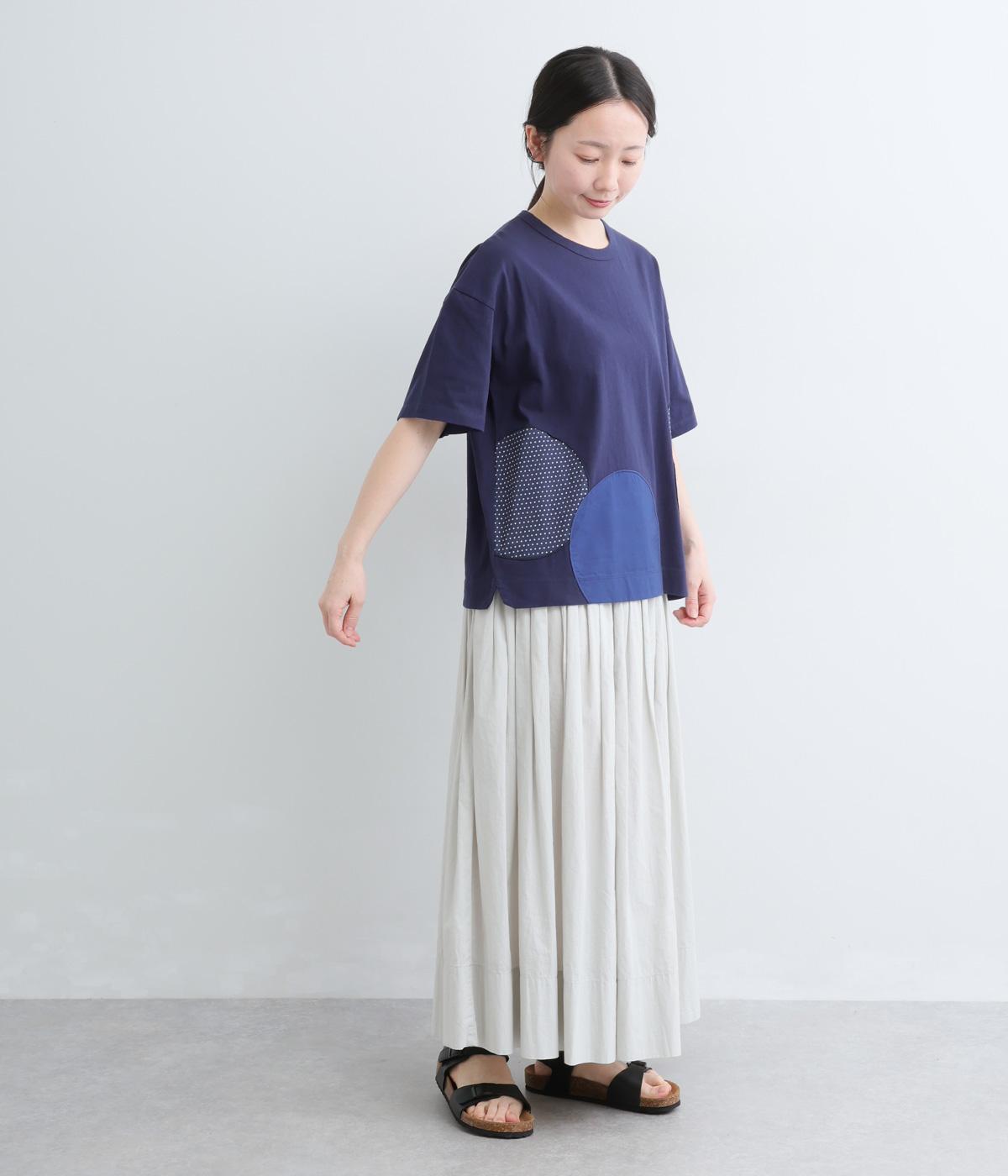 シンプルな天竺ボディに、布帛をサークル状にパッチワークした遊び心あふれる一枚。異素材を重ねることで、装いに立体感のある豊かな表情をプラスします。さらりと着るだけで、さりげない個性が光るデザインです。