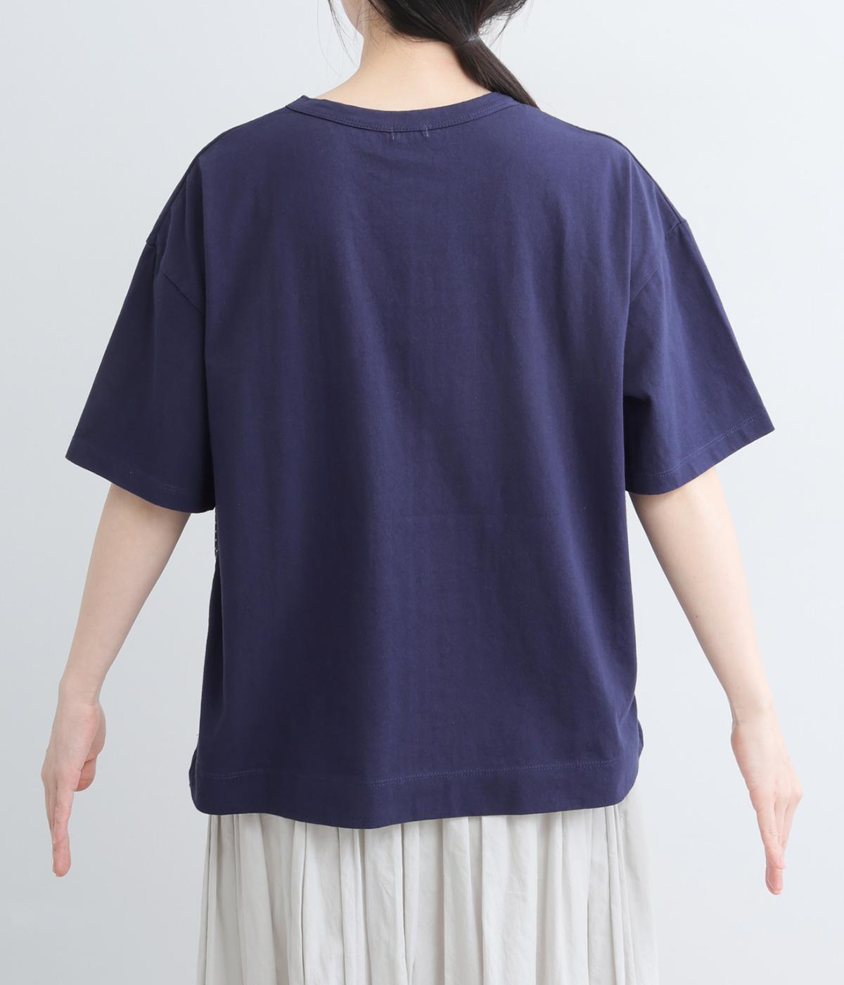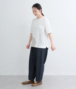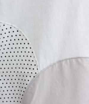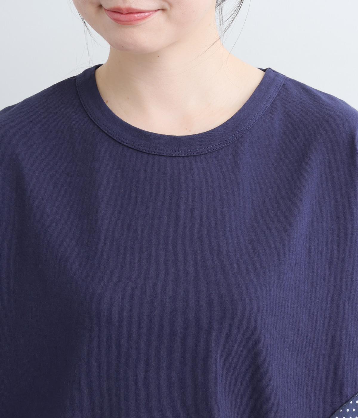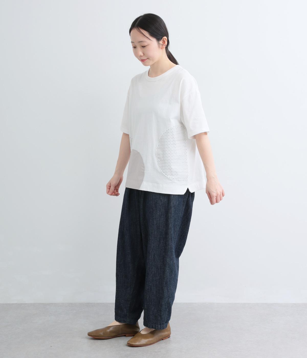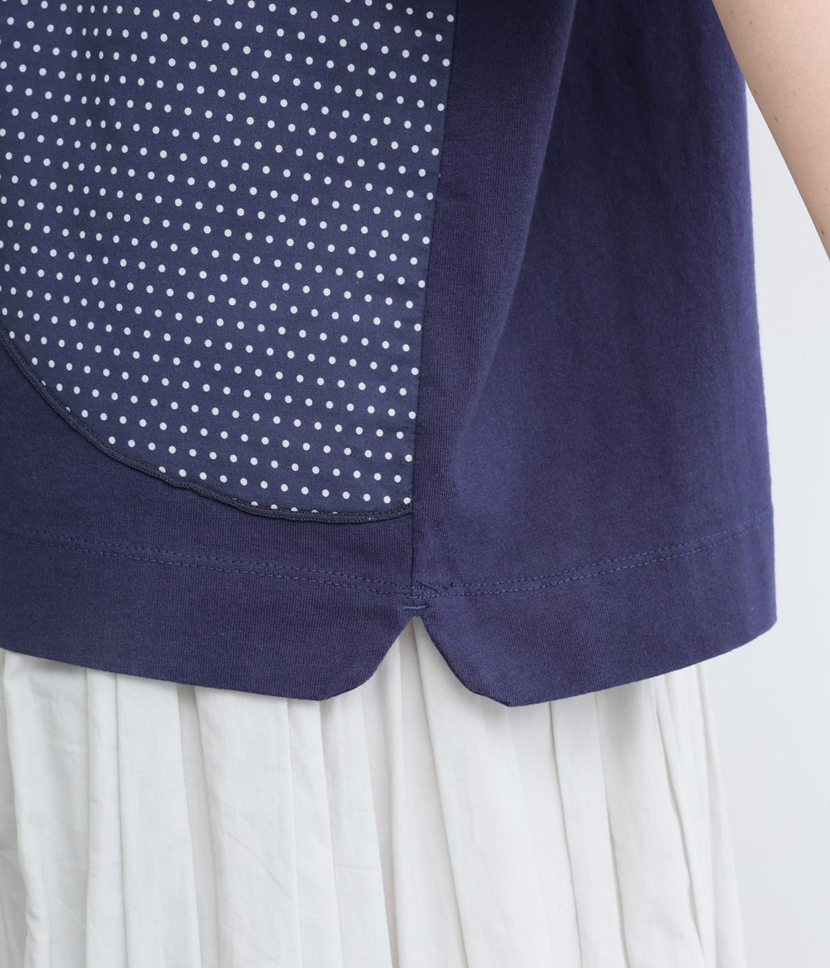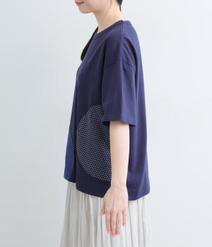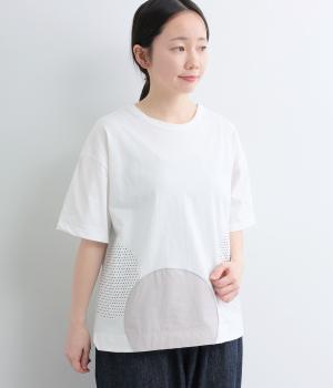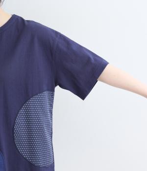 シンプルな天竺ボディに、布帛をサークル状にパッチワークした遊び心あふれる一枚。異素材を重ねることで、装いに立体感のある豊かな表情をプラスします。さらりと着るだけで、さりげない個性が光るデザインです。