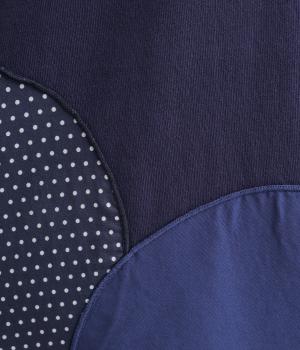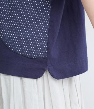 環境に優しいリサイクルコットン100%の天竺生地に、ドットや無地の布帛を組み合わせました。ほどよい厚みがありながら、さらりと心地よい着心地です。