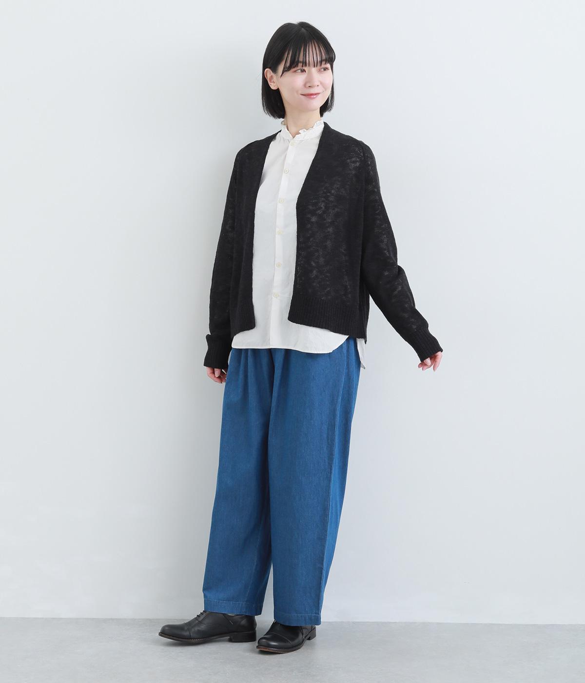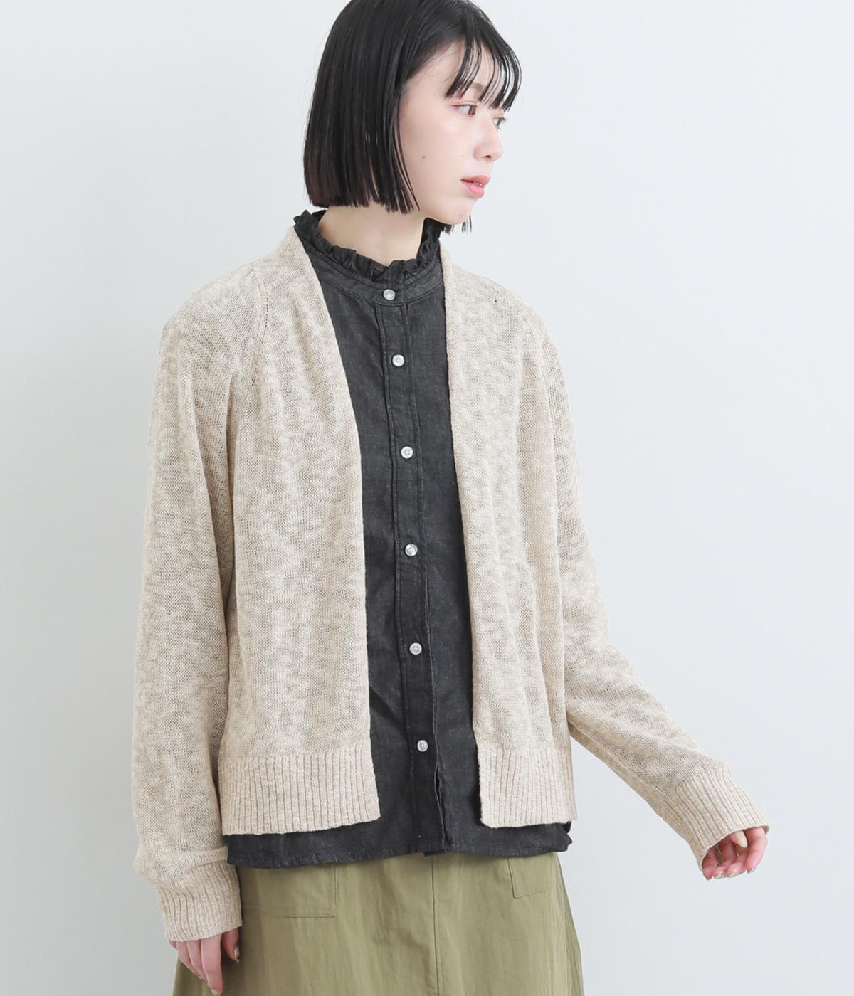 品のあるシアー感のラグラン仕様のカーディガンです。落ち感のある肩のラインがすっきりとした印象をもたらします。さらっと肌離れがよく羽織りやすい一枚で、シワになりにくく持ち運びにも便利。夏の冷房対策にも活躍します。