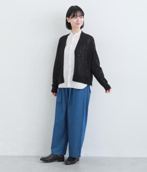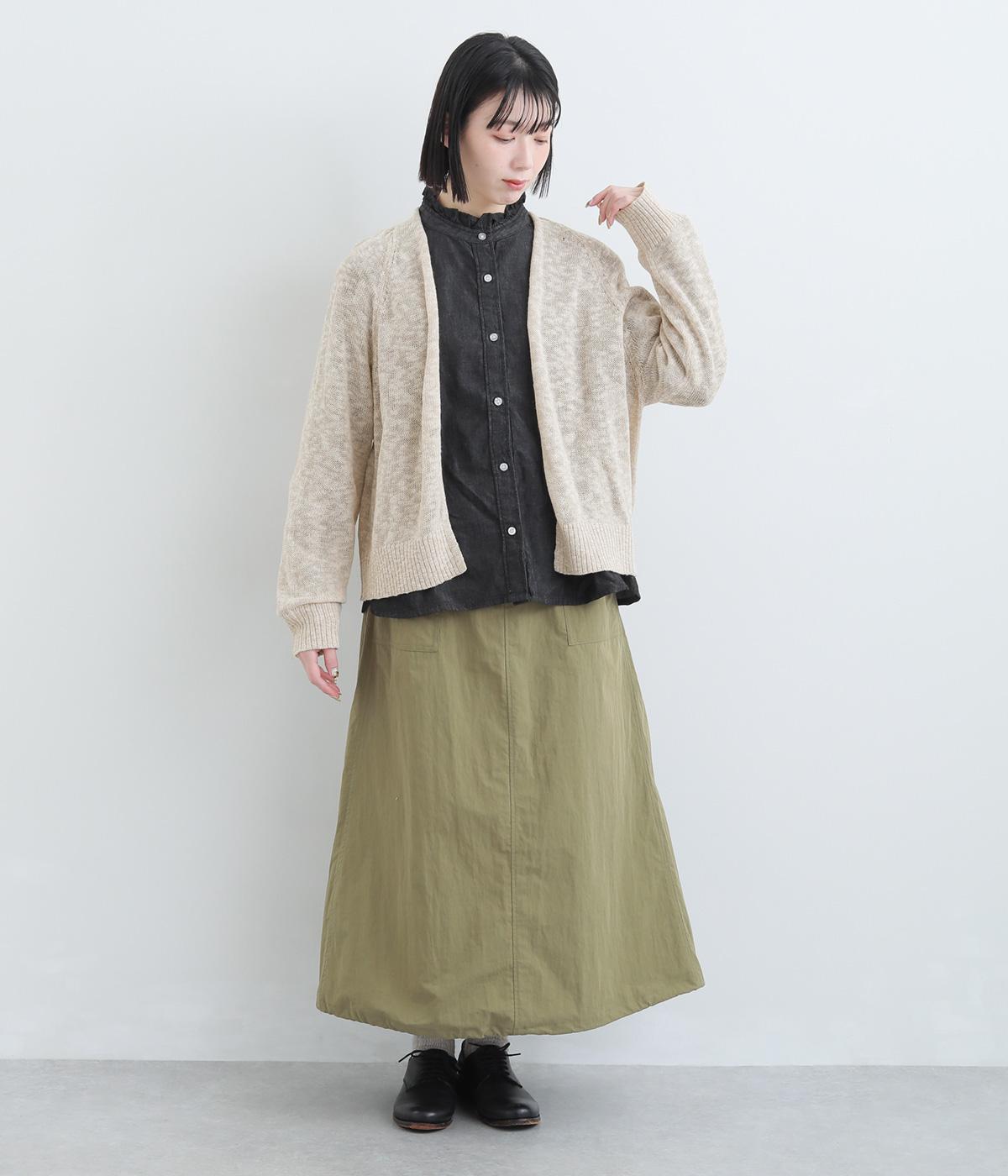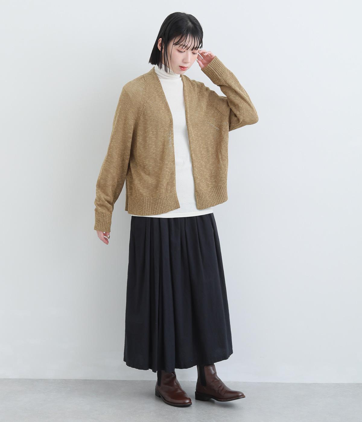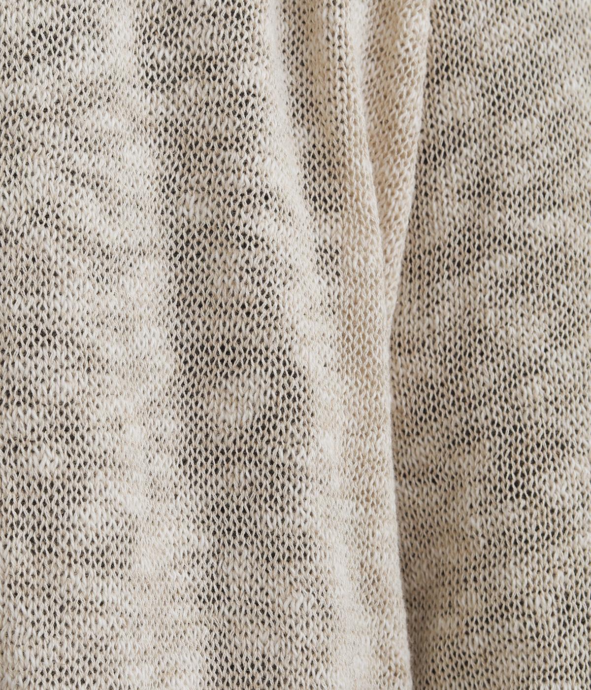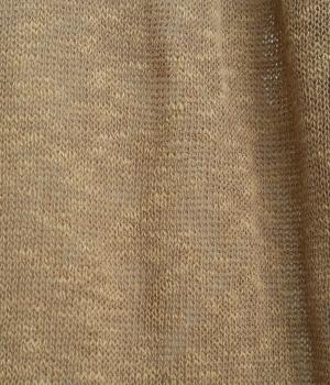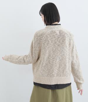 平らな糸で表面感がでやすく風通しがよい、軽やかな着心地のテープヤーンをセレクトしました。麻混なので独特の凹凸があり、味わい深い素材感です。