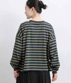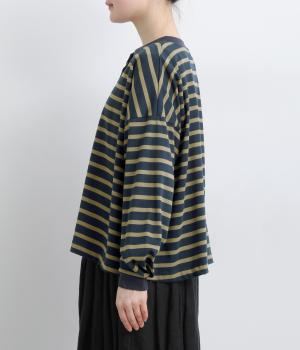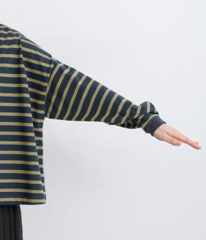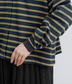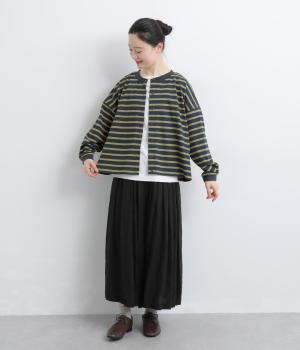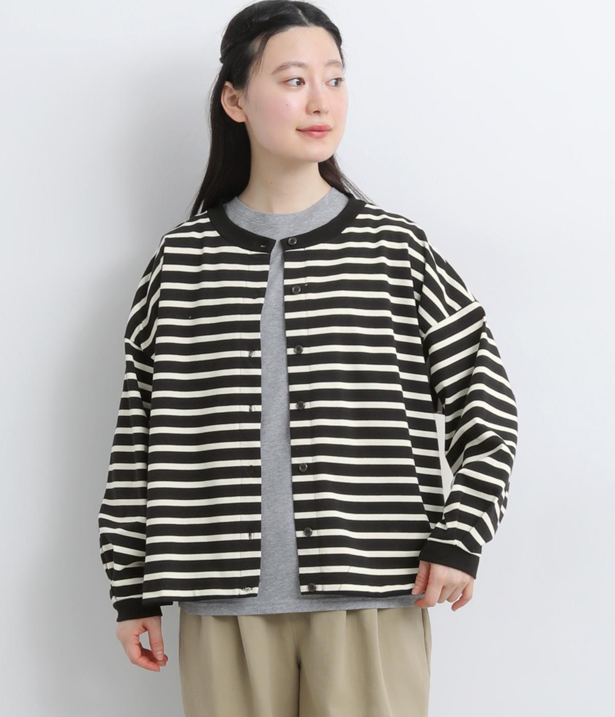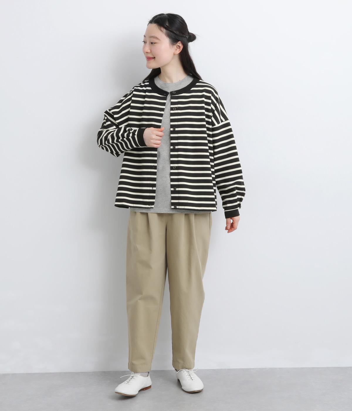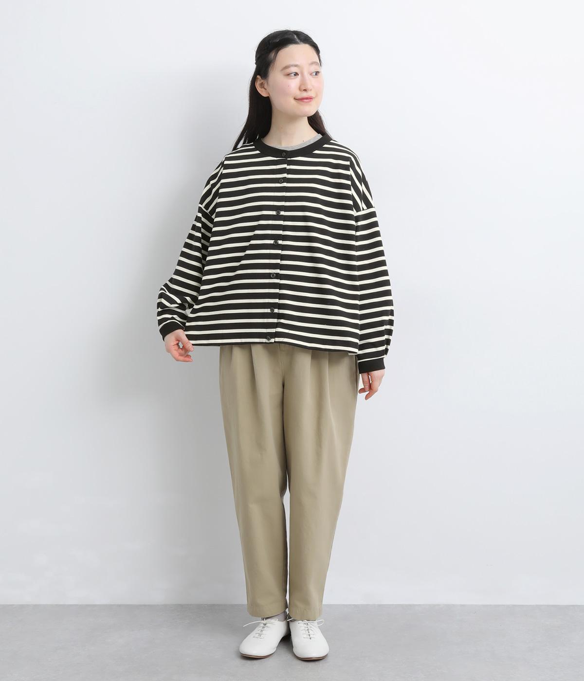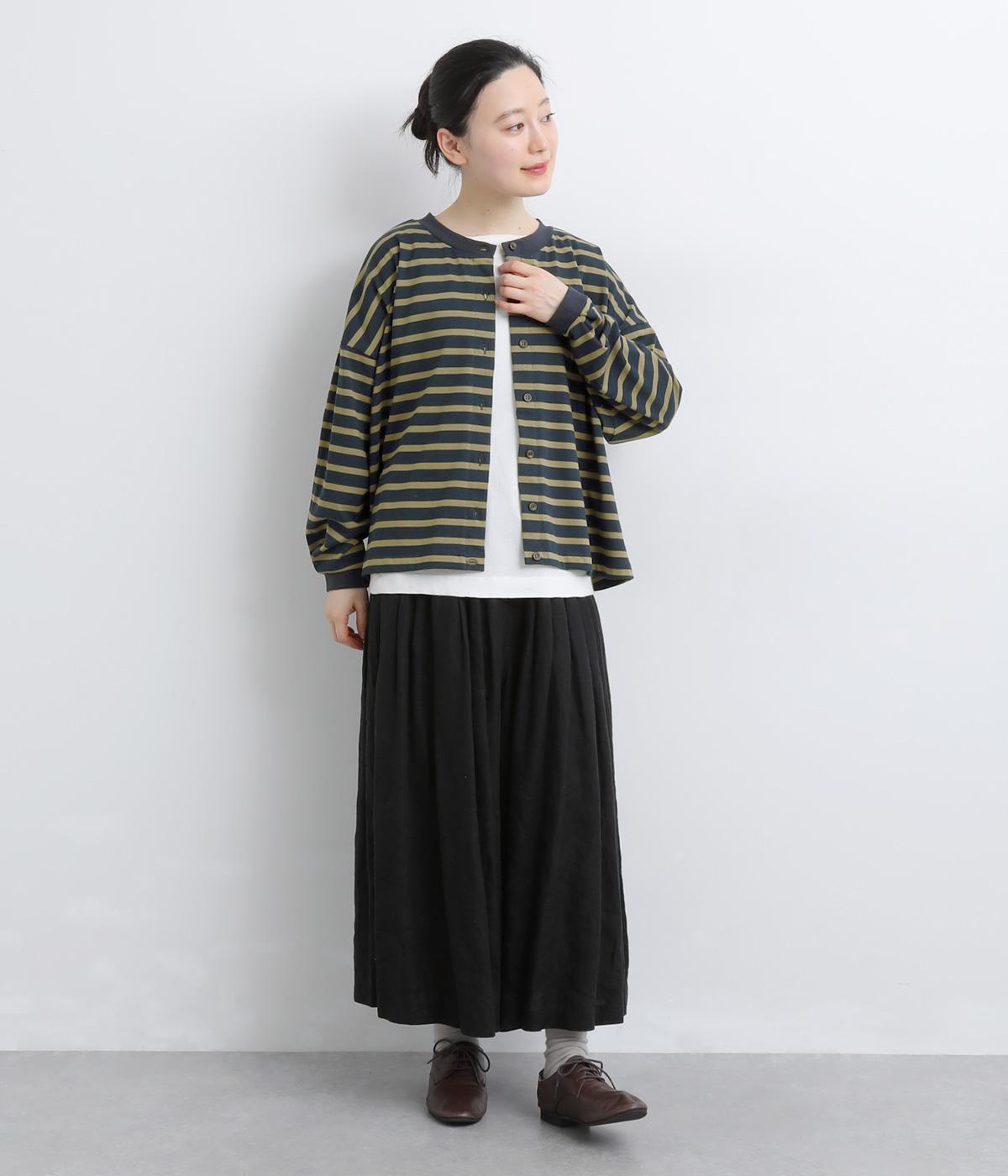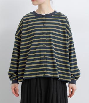 カジュアルなデイリースタイルに寄り添ってくれるボーダー柄カーディガン。袖口タックとリブ切り替えで自然な立体感をつけました。主張の強すぎない薄めの中厚手生地なのでボタンを留めてトップス感覚で着こなしても◎。