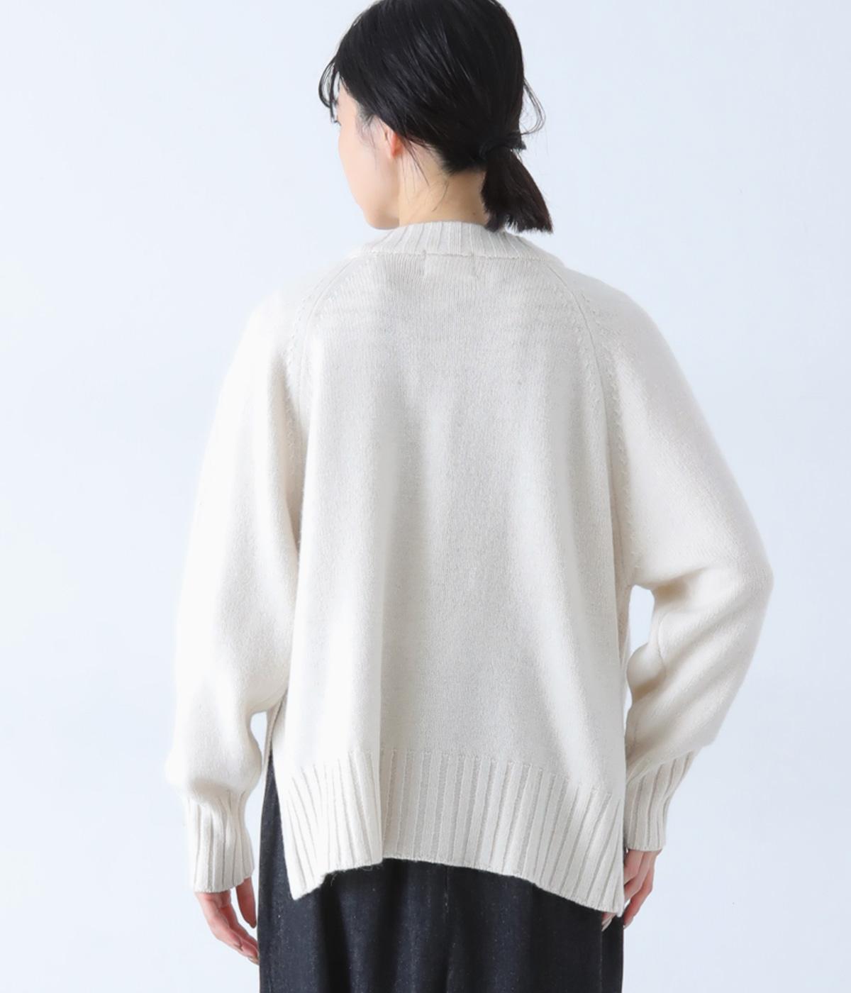 丈にほんのりと前後差をつけ、サイドは重ねスリット仕様に。レイヤードしても動きやすいラグランスリーブで、インナーがもたつきにくく快適に着こなせます。