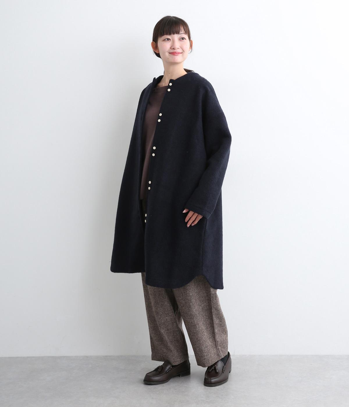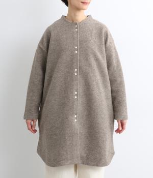 空気をたっぷりと含んだふっくらとした厚みと適度なハリ感、軽さが魅力のウール混スライバーニットを使用。保温性が高く、寒い時期に頼れる生地感です。