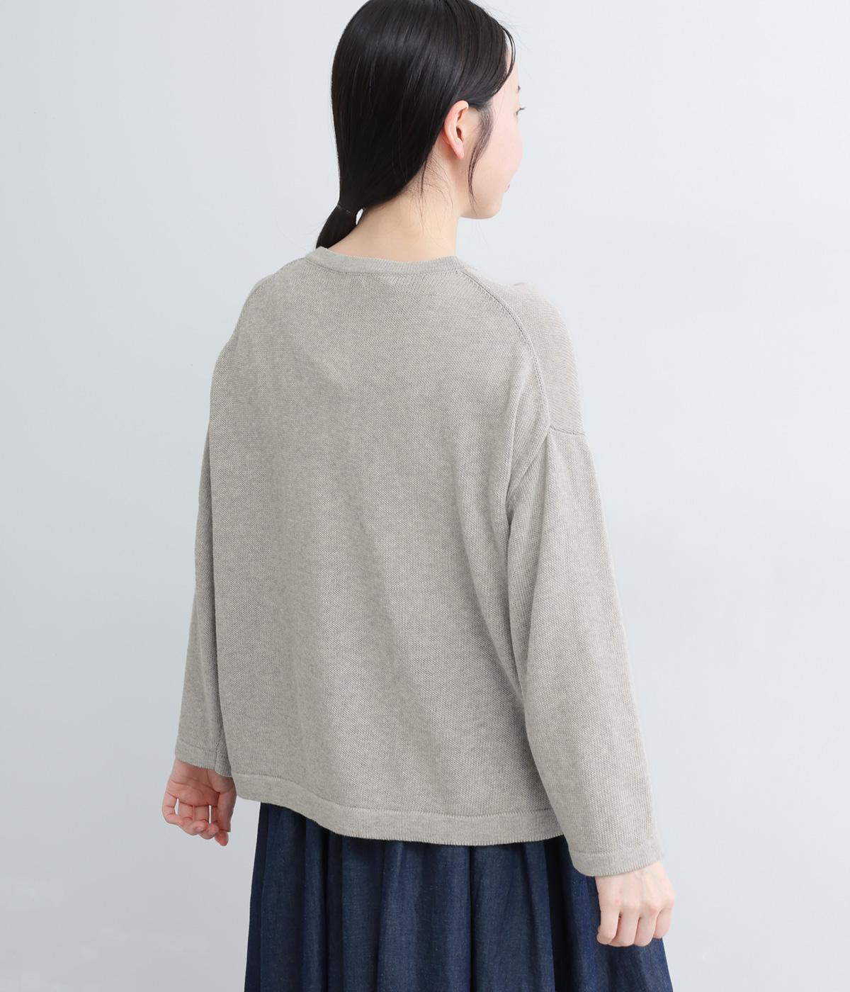 シャリ感のあるコットン強撚糸を使用したニット生地です。軽やかでやわらかく、肌に心地よく寄り添う自然な風合いが魅力で、快適な着心地の素材感です。