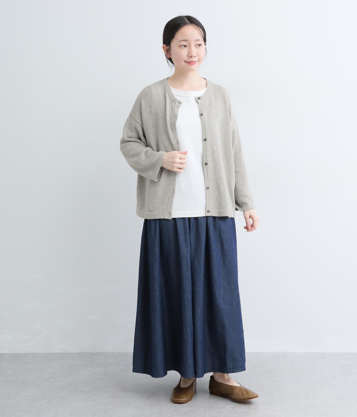 飽きのこないシンプルさで着まわしの効くクルーネックカーディガン。季節の変わり目にも重宝するアイテムです。ボトムスを選ばず、カジュアルにもきれいめにも、幅広い装いになじむ一枚です。