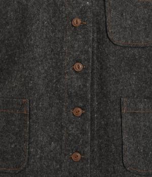 カジュアルスタイルの王道であるコットンデニムに起毛加工をほどこしてやさしいニュアンスを足しました。あたたかみのある表情ながら肉厚すぎず、ラフに羽織りやすい生地感です。