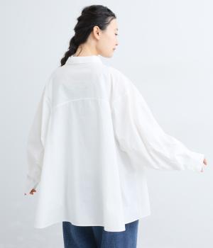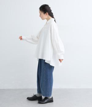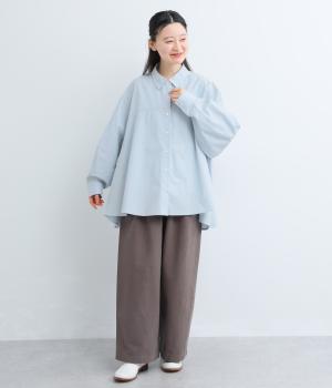 さらりとドライな質感のコットンブロード生地を使用しました。なめらかな表面とやわらかな肌なじみが特徴です。素朴な風合いが優しい雰囲気の素材感です。