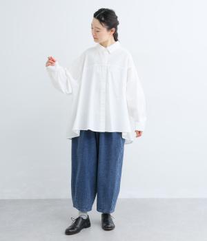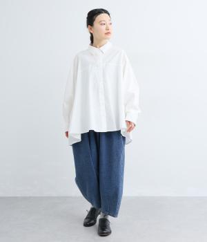 たっぷりの生地が美しいドレープを描き、動きに合わせて優雅に揺れます。前後差をつけた裾が立体感を生み、ヨークの曲線が丸みのあるフォルムを演出します。気になるヒップまわりをカバーするのもうれしいポイントです。
