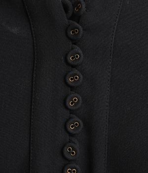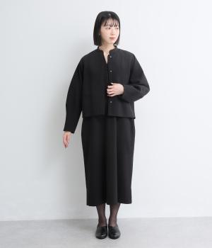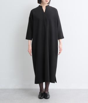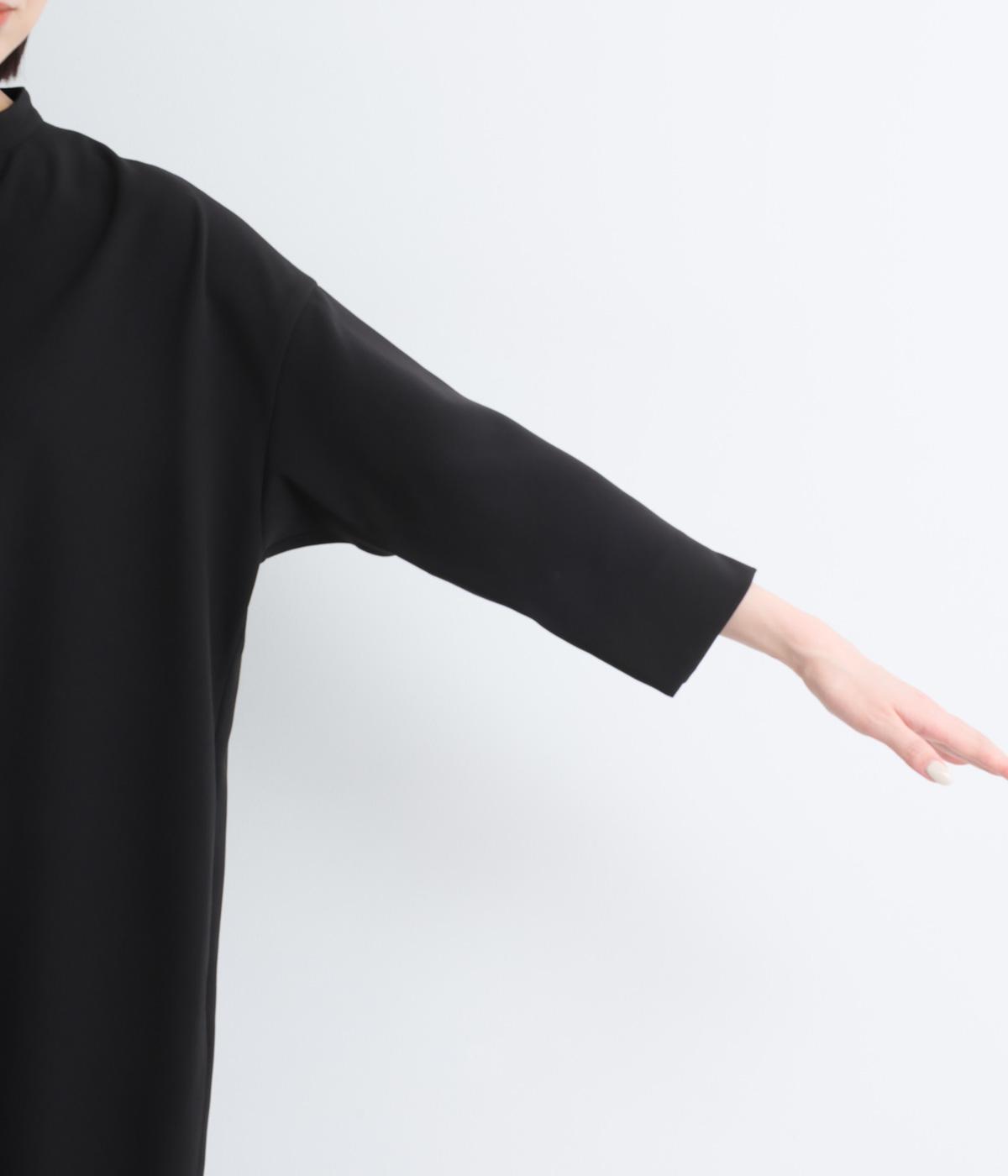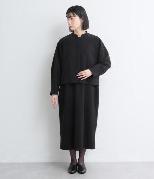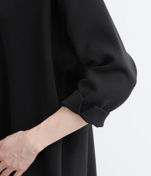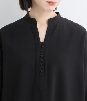 すっきりとしたキーネックが顔まわりを明るく見せます。広がりすぎないシルエットときれいめな素材感で、フォーマルなシーンにもぴったりです。袖口のスリットがさりげなく抜け感を添え、折り返しての着こなしも可能です。