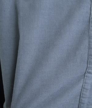 表面の畝が特徴的なコットンコーデュロイ生地。畝による凸凹が空気を蓄え、あたたかい着心地です。細畝なのでカジュアルすぎず上品に仕上がります。