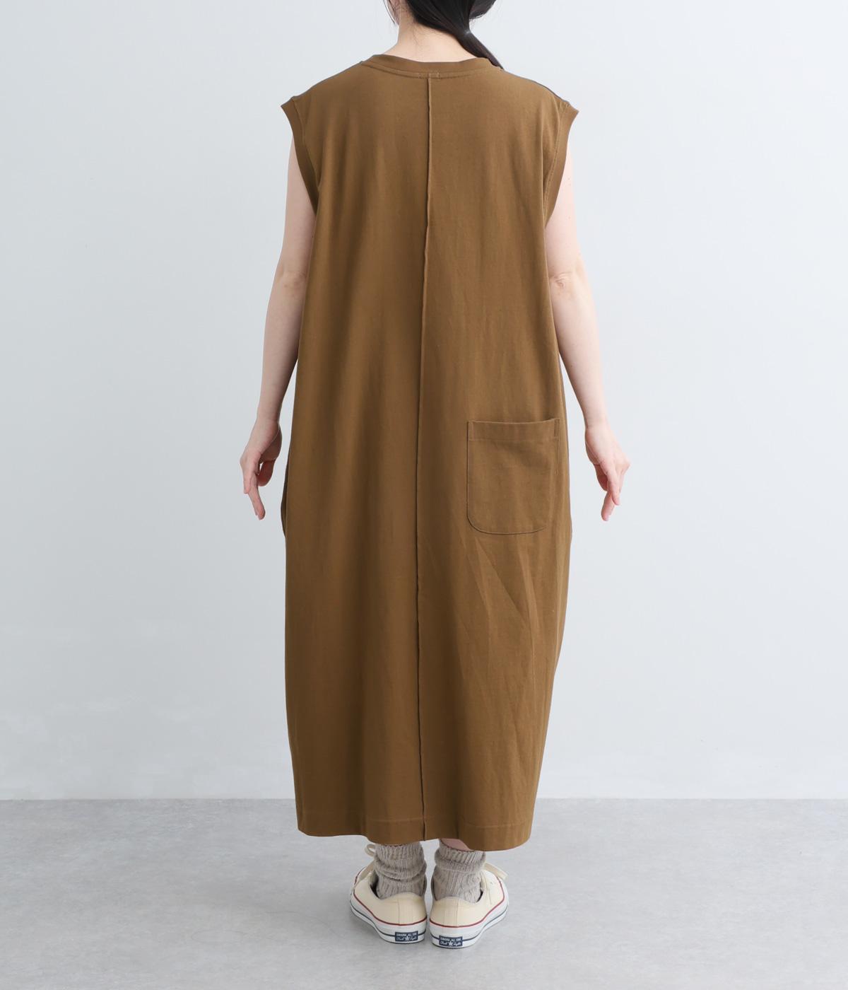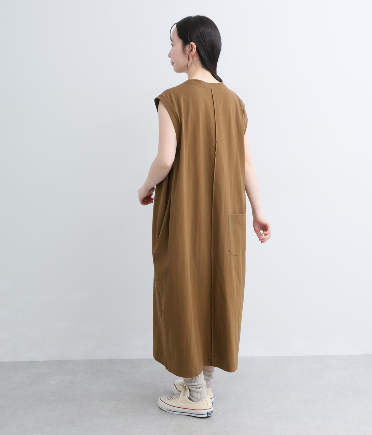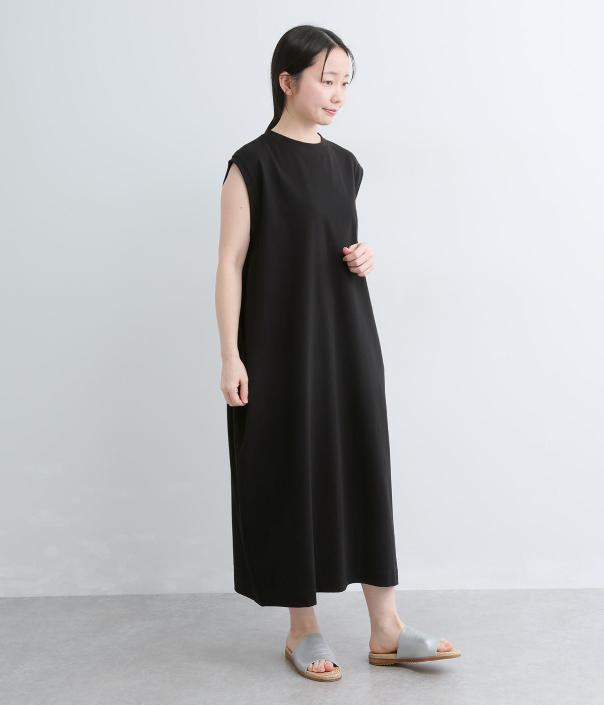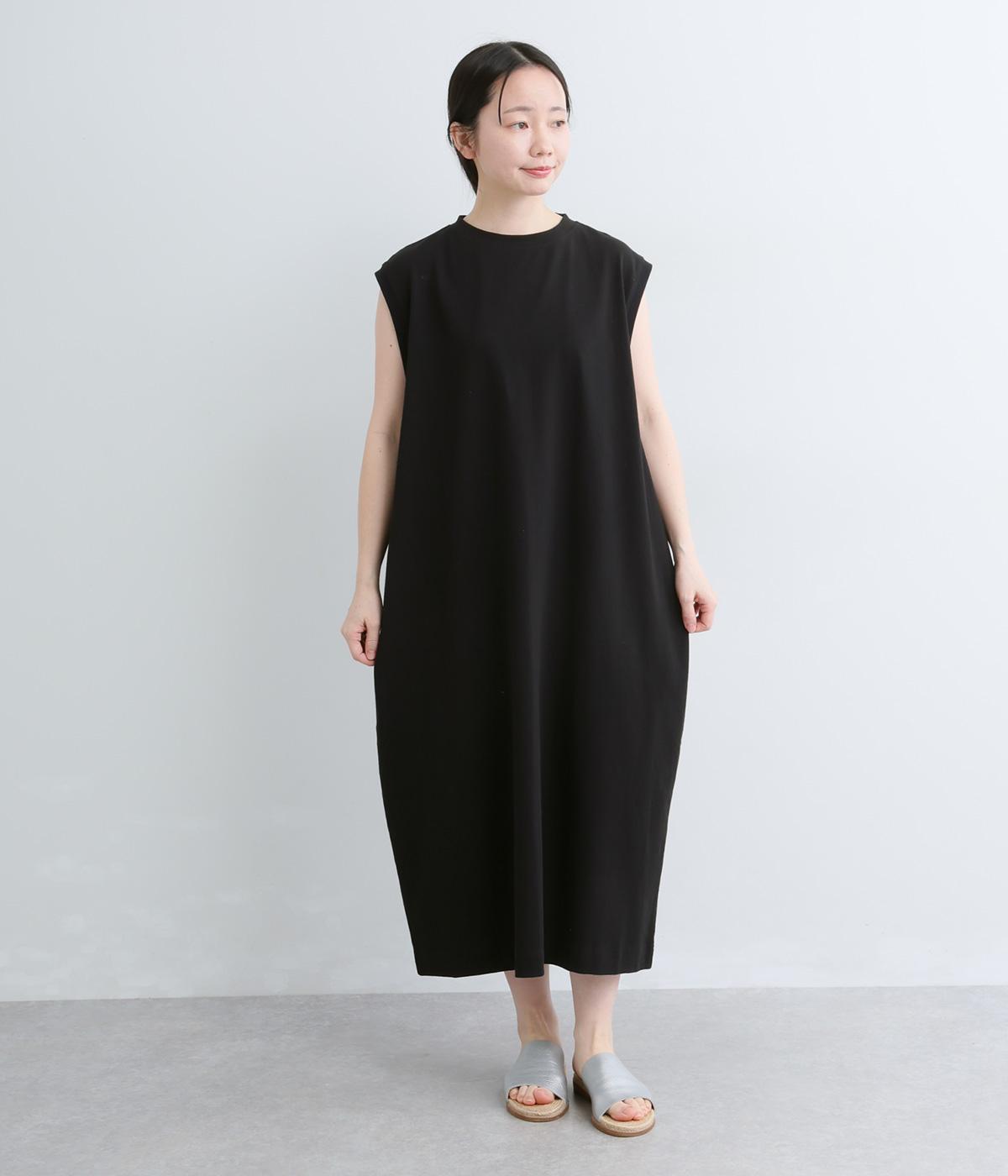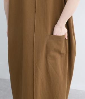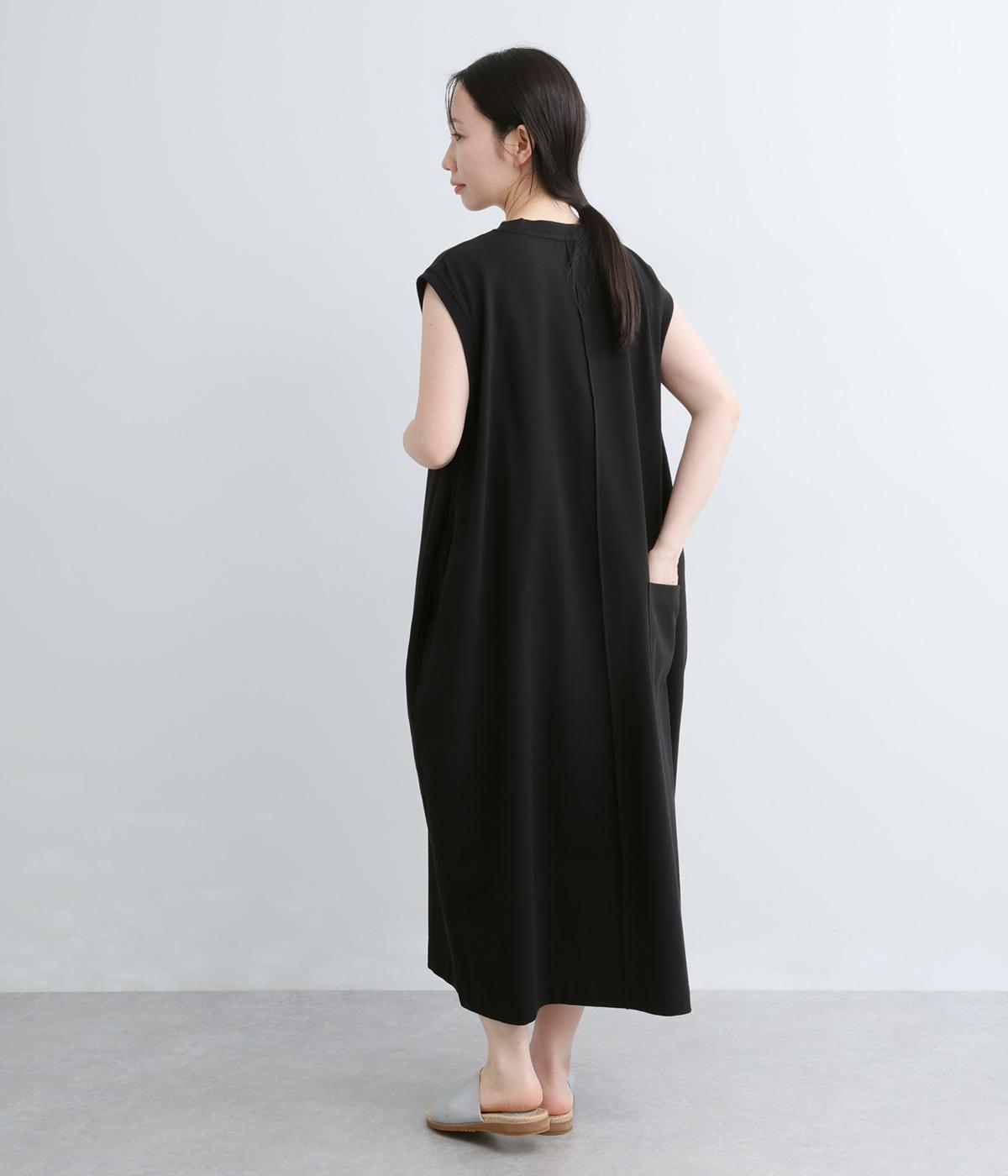 脇下のタックが立体的なシルエットを描き、体のラインを拾いにくいワンピース。シンプルながら計算されたフォルムで、存在感を放ちます。背面の縦の切り替えラインやポケットで、うしろ姿にもこだわりました。