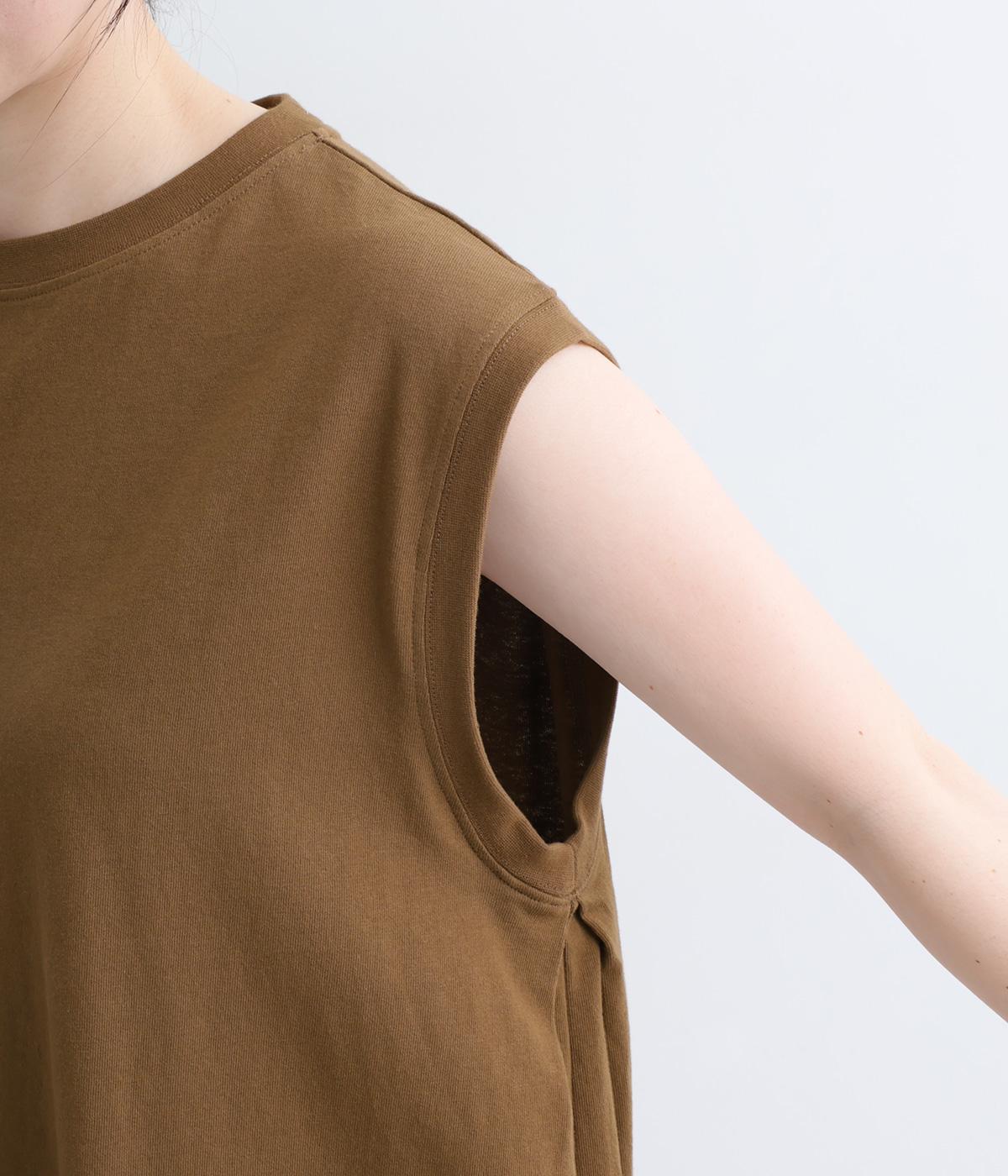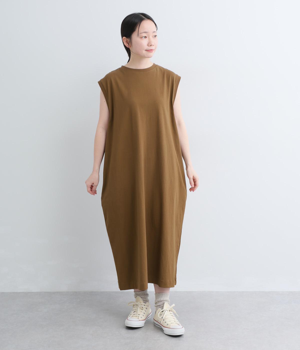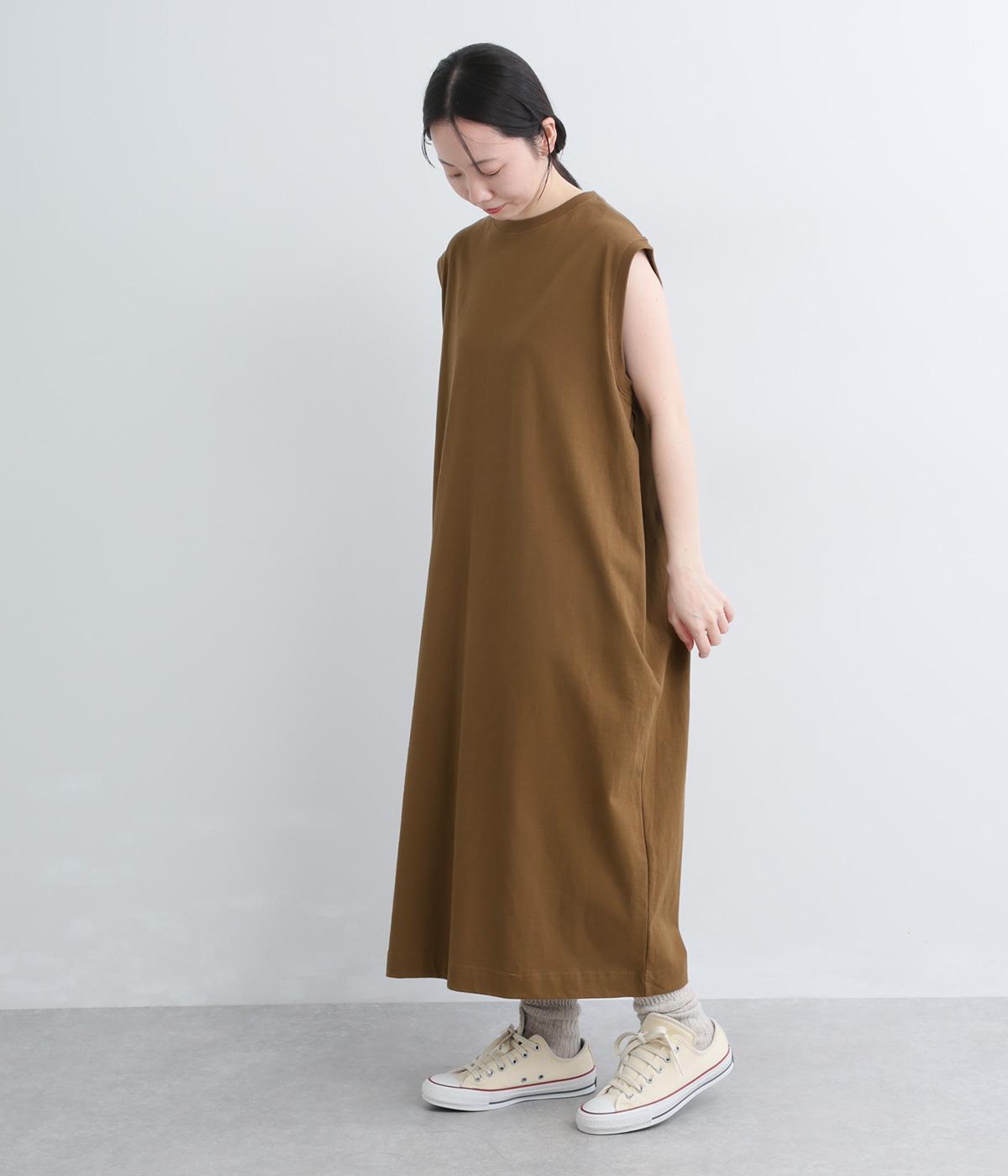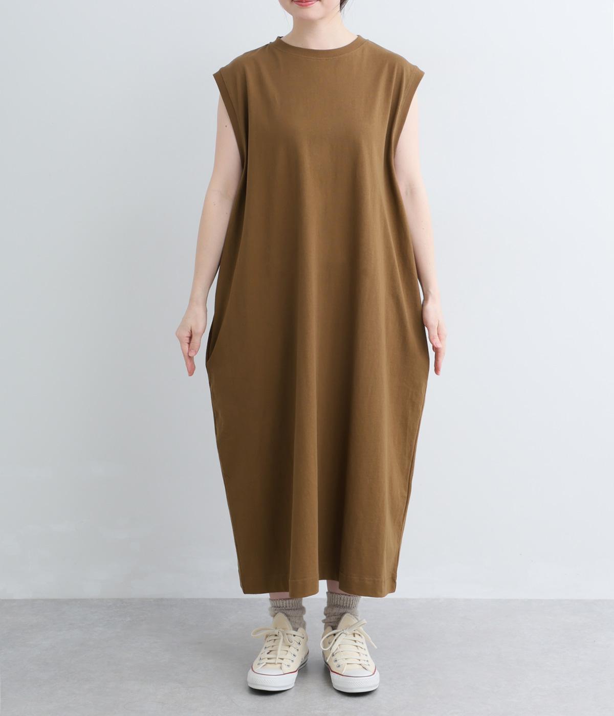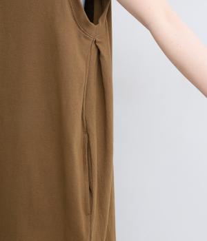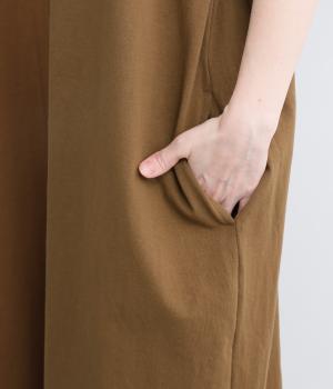 脇下のタックが立体的なシルエットを描き、体のラインを拾いにくいワンピース。シンプルながら計算されたフォルムで、存在感を放ちます。背面の縦の切り替えラインやポケットで、うしろ姿にもこだわりました。