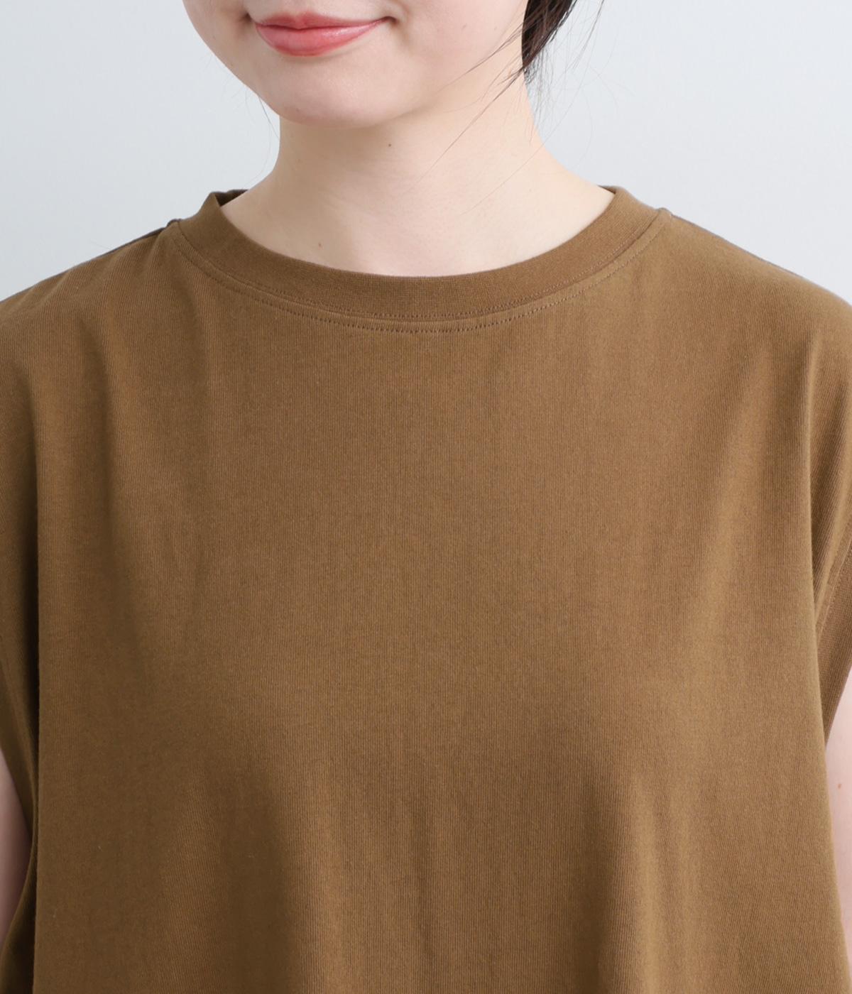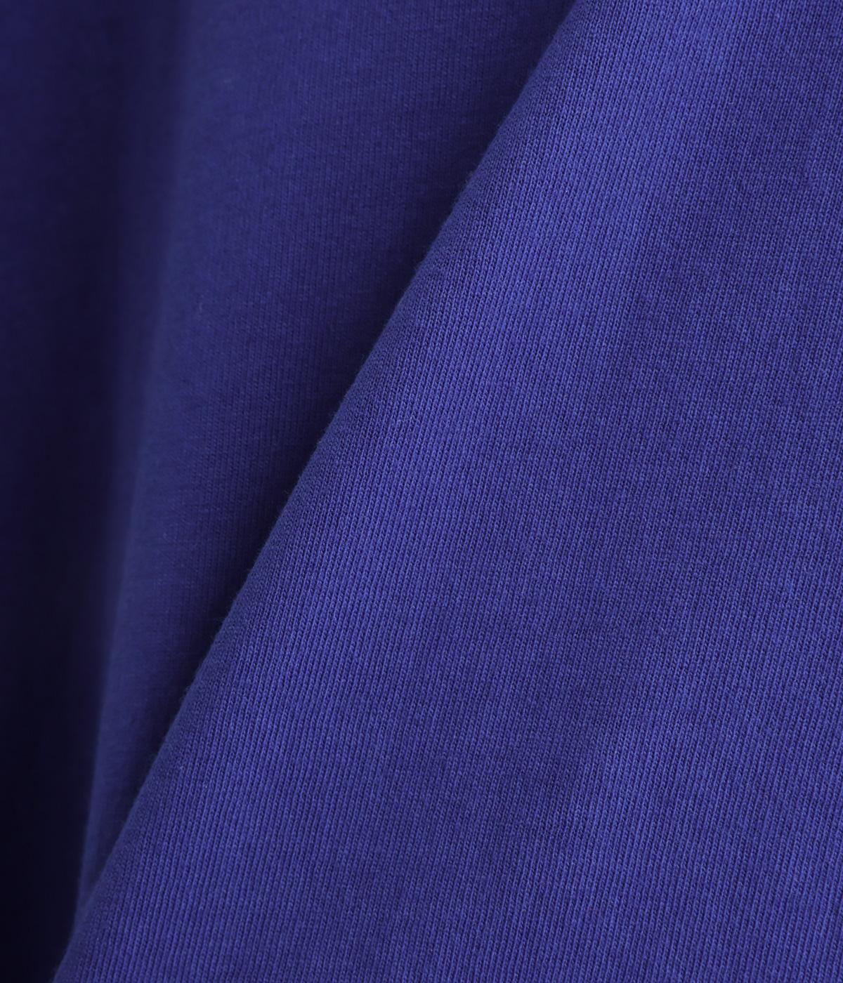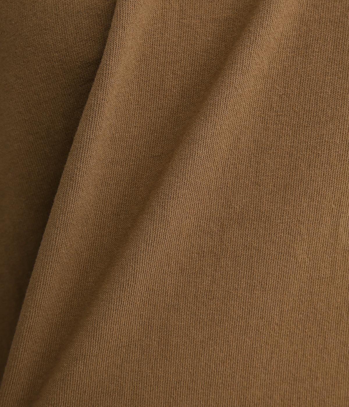 ふっくらと柔らかく、ほどよい厚みを備えたコットン天竺生地です。心地よい伸縮性とさらりとした肌ざわりで、一日中ストレスフリーな着心地を保ちます。洗うたびに肌になじむ、日常使いに最適な素材です。