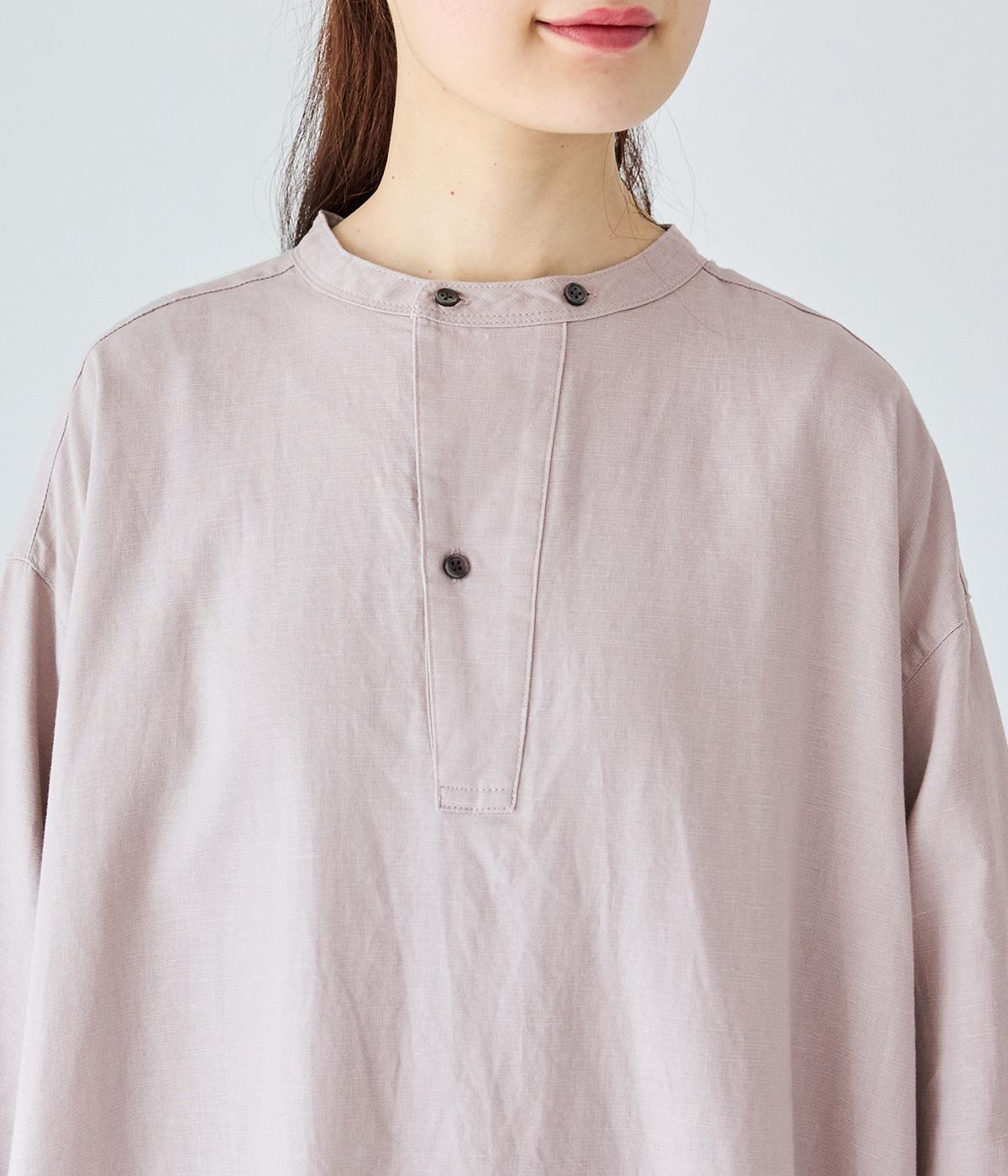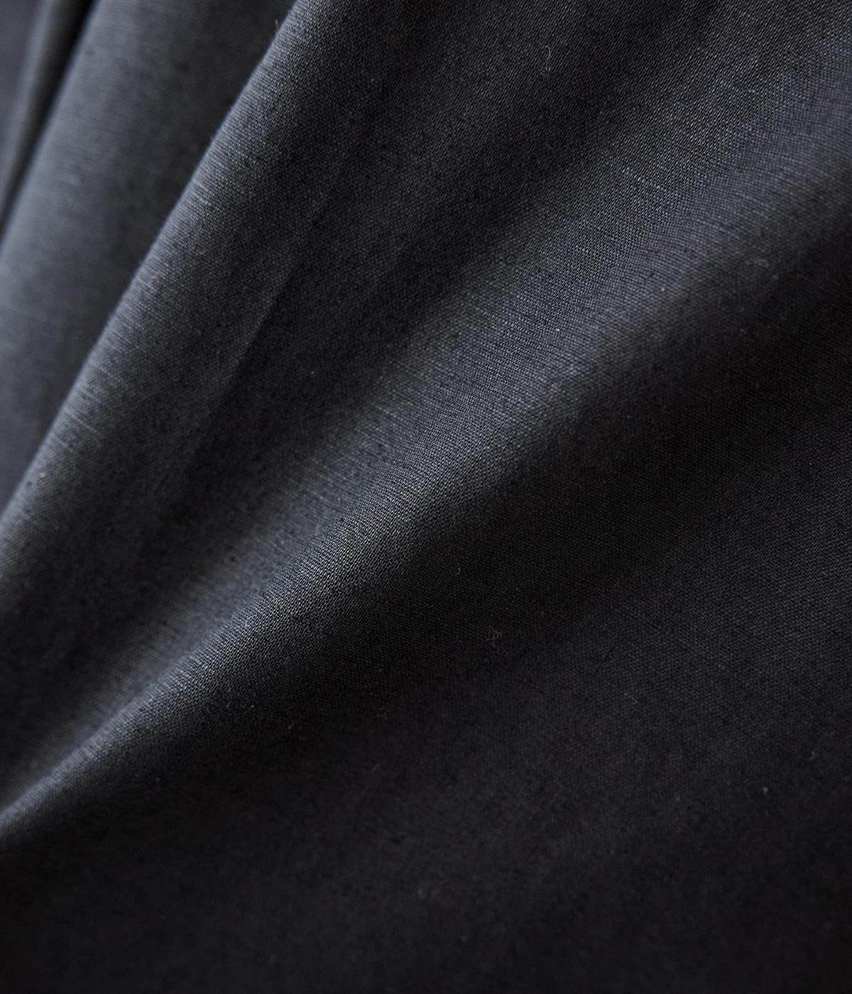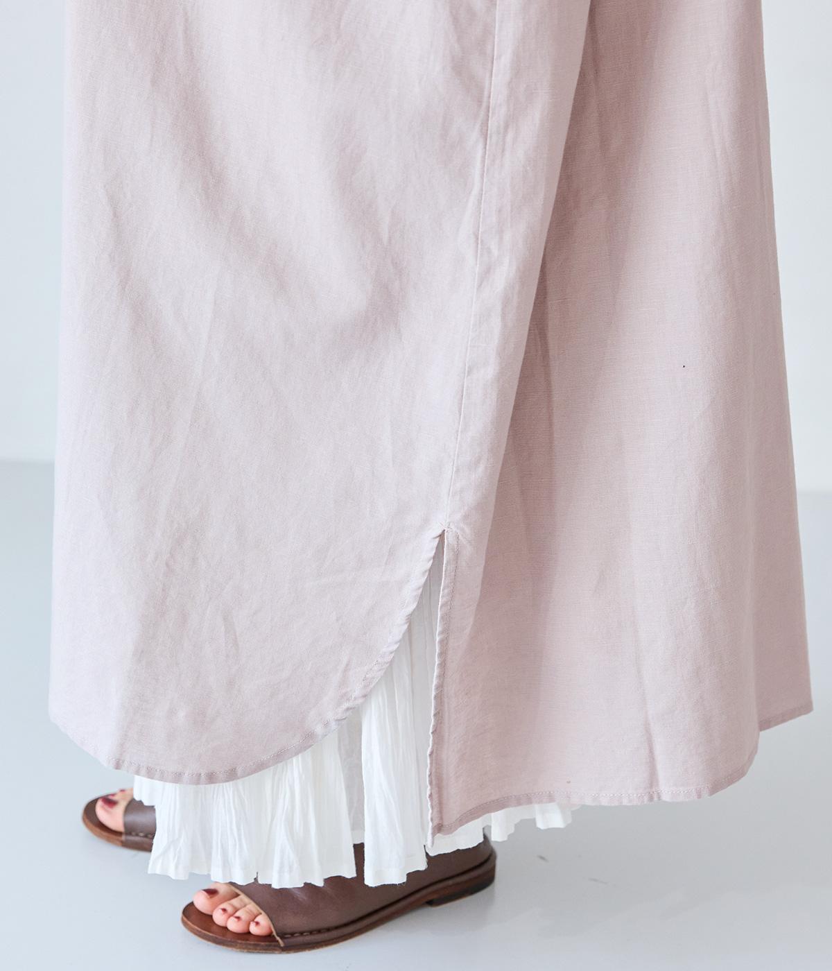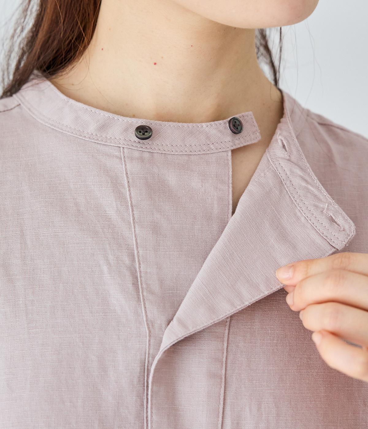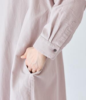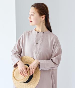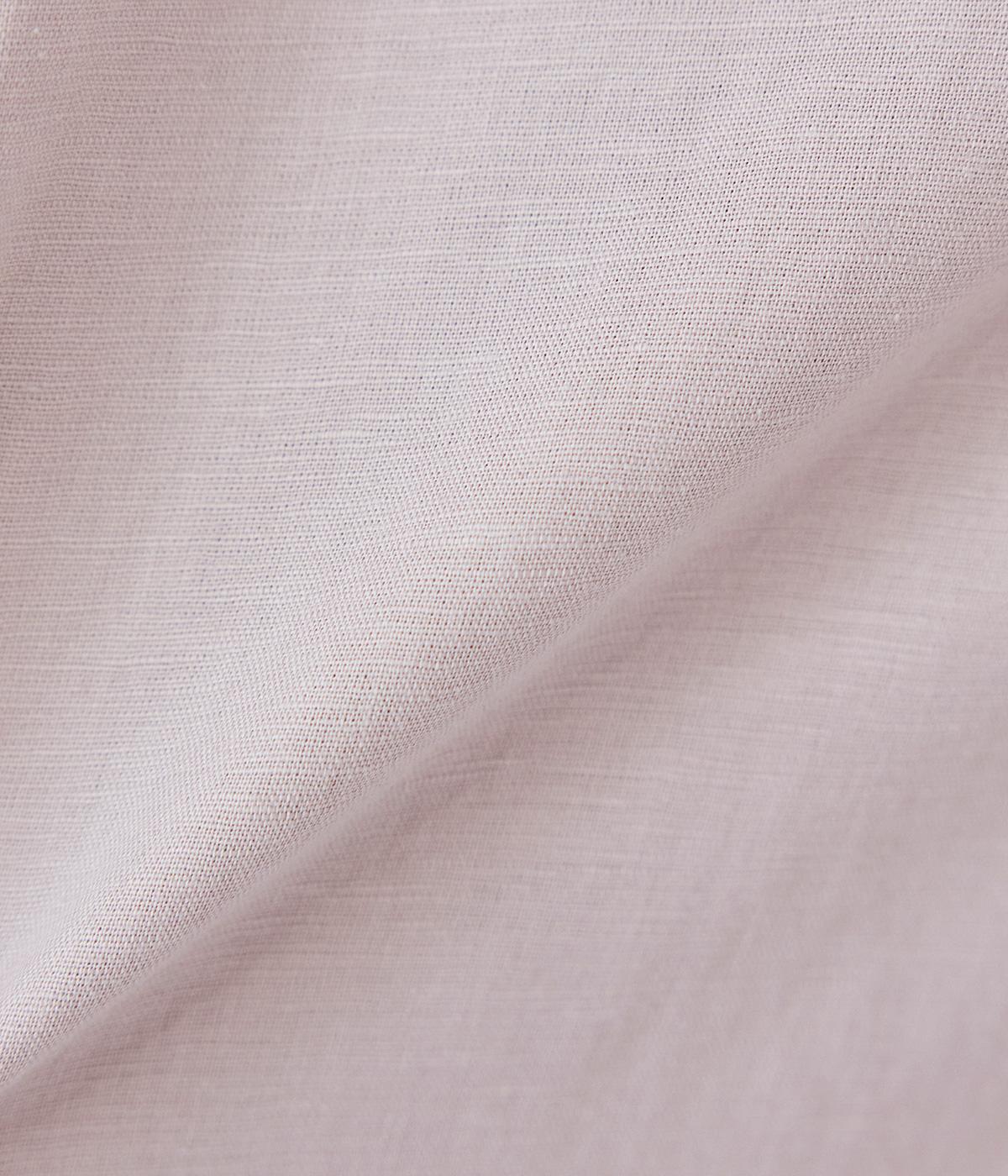 コットンとリネンを混ぜ合わせたナチュラルな風合いが特徴。肌に触れるたびに癒されるようなやわらかく心地よい素材です。通気性がよく、ロングシーズンで着用可能なのもうれしいポイント。
