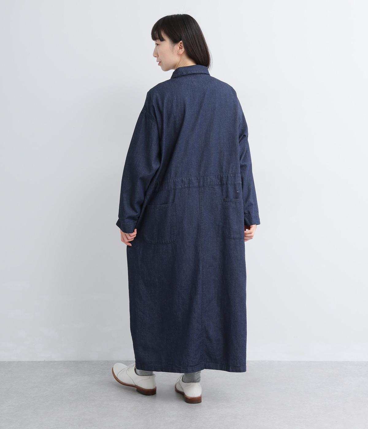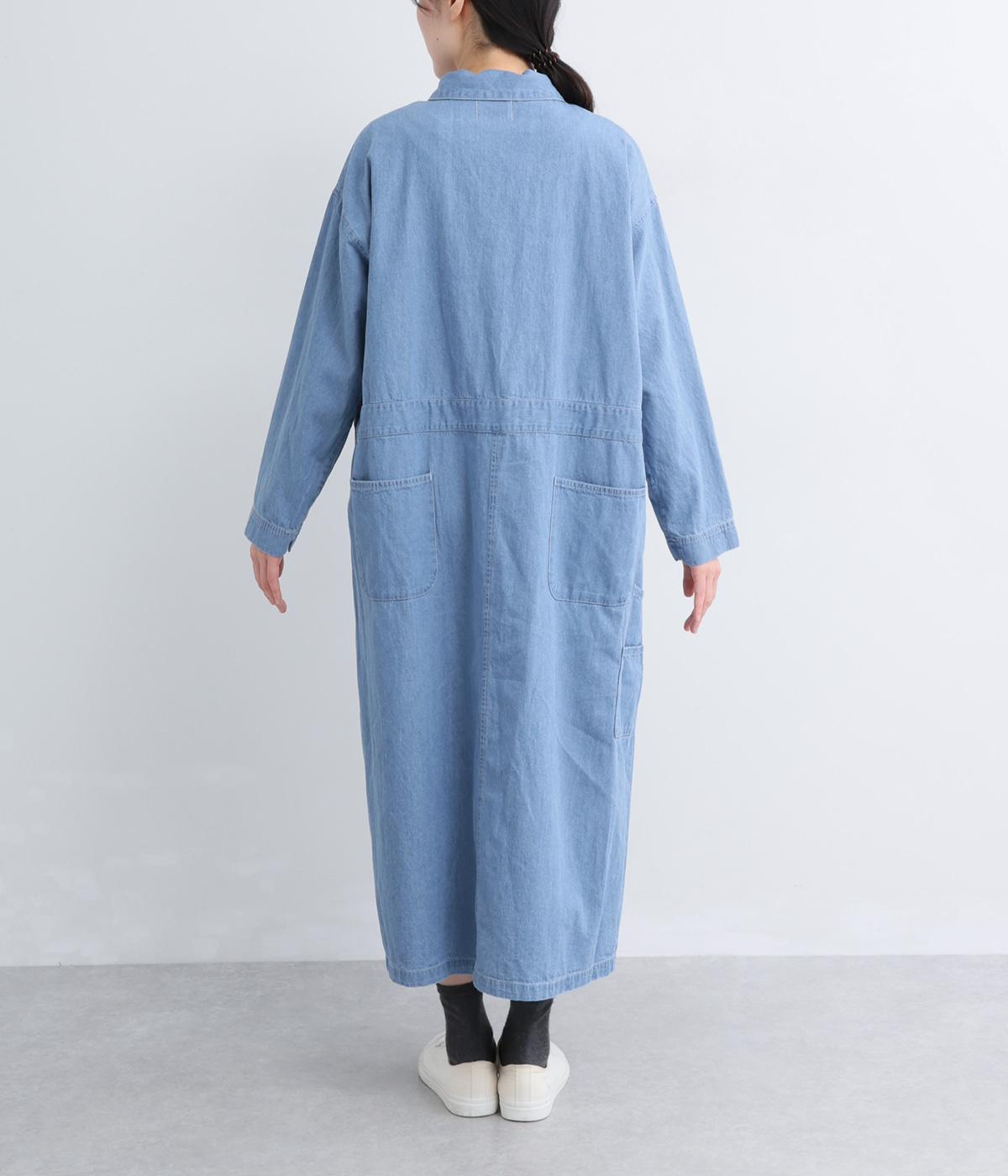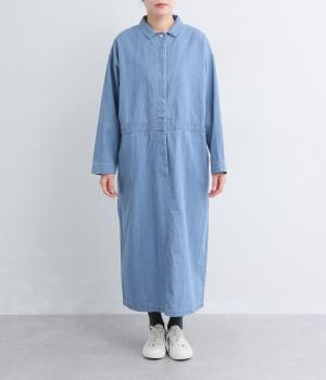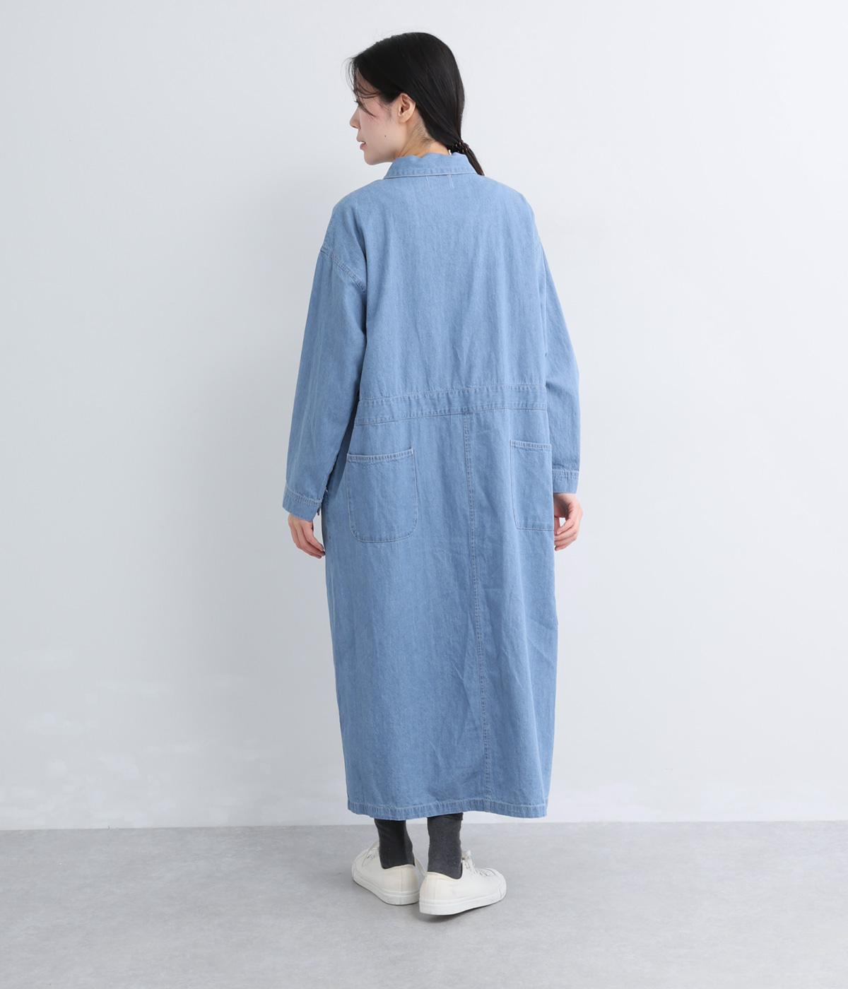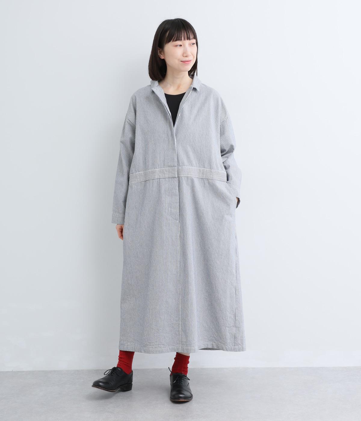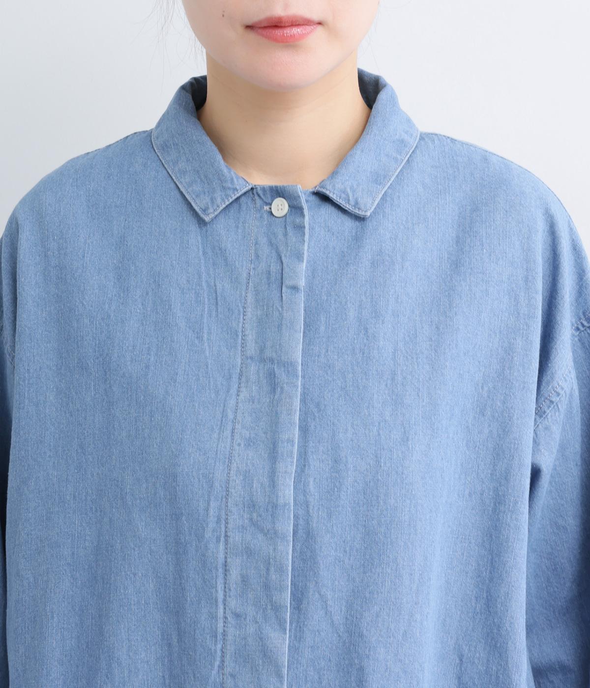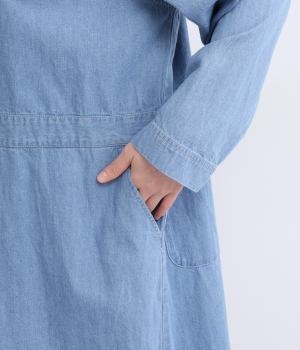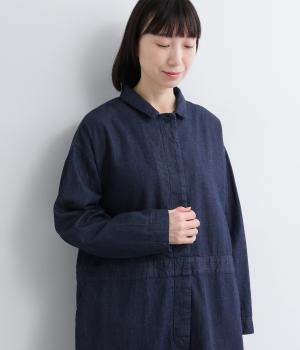 ウエストラインのベルト切り替えやヒップポケットでカジュアルに仕立てたワンピース。すっきりとしたシンプルなデザインが好印象で、比翼ボタンをあけて羽織ったレイヤードスタイルもおすすめ。袖口はラフに折り返しても◎。
