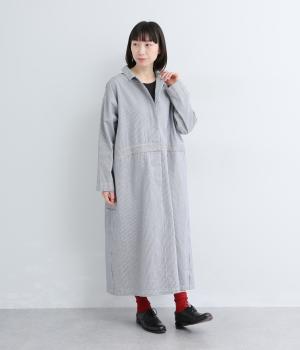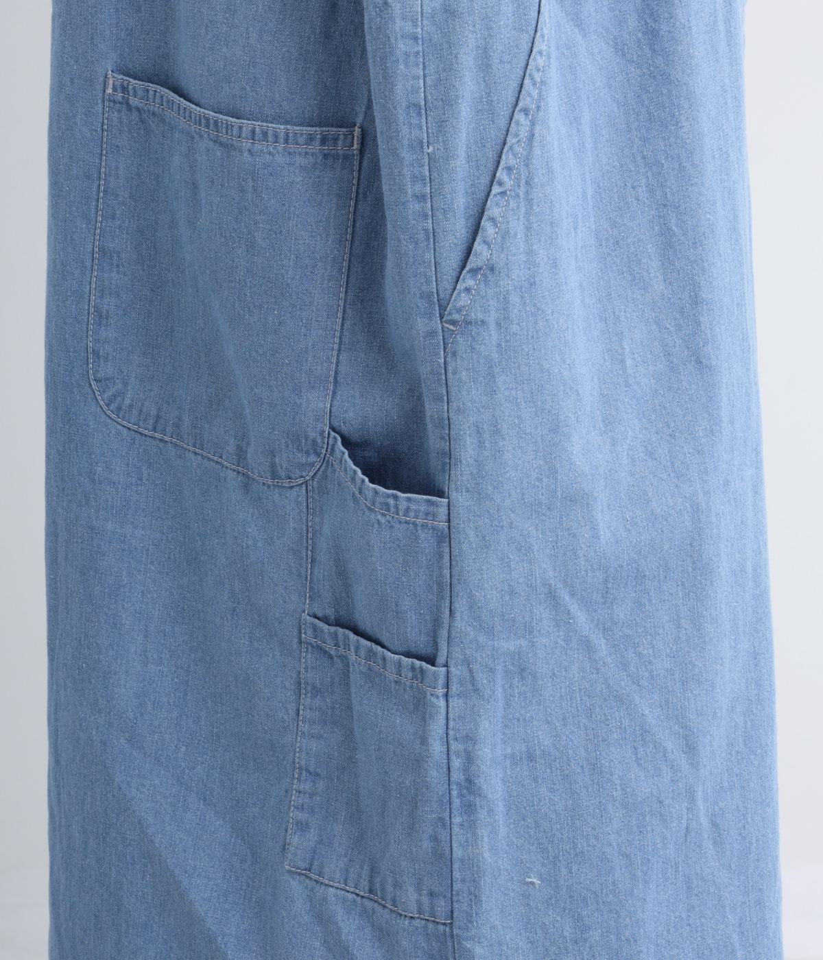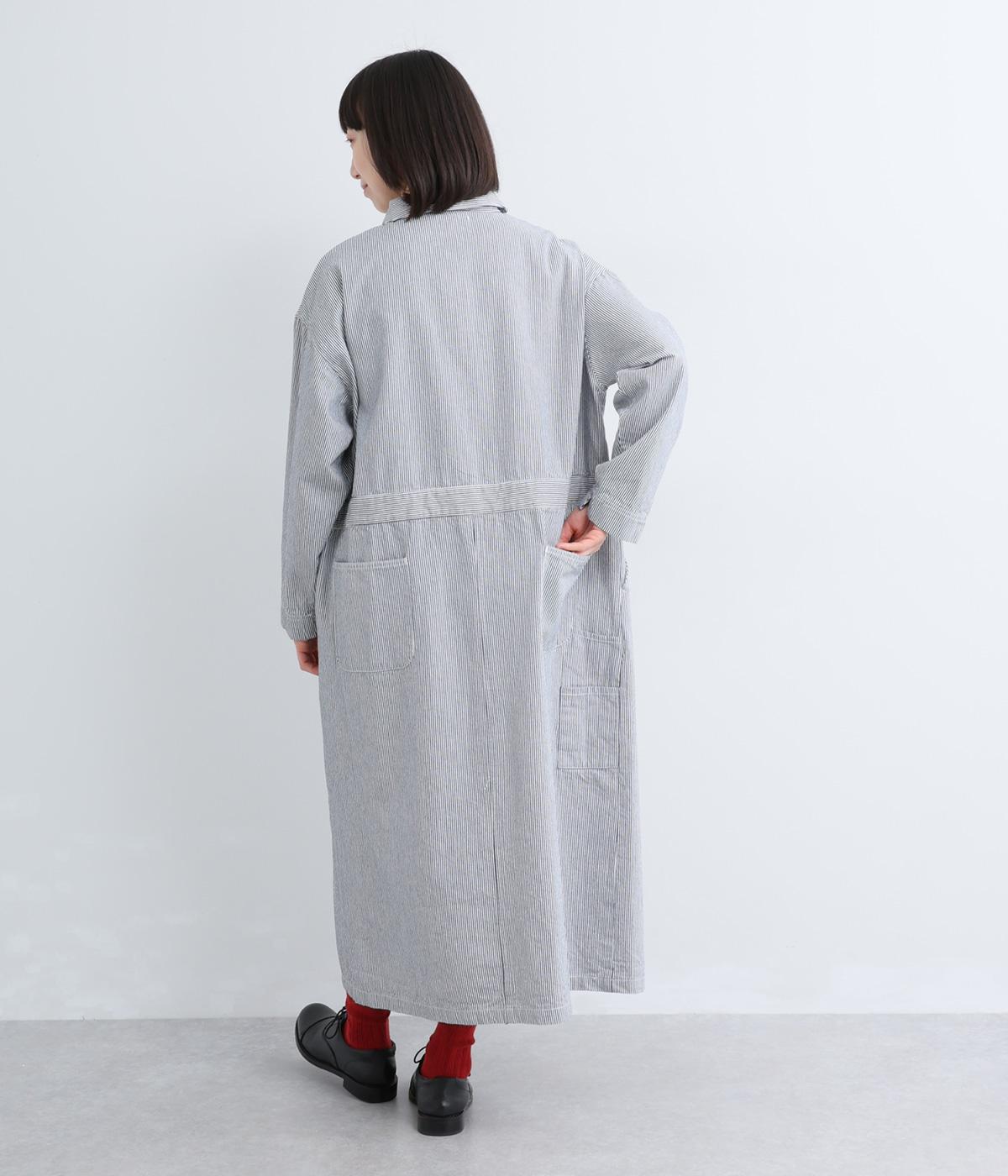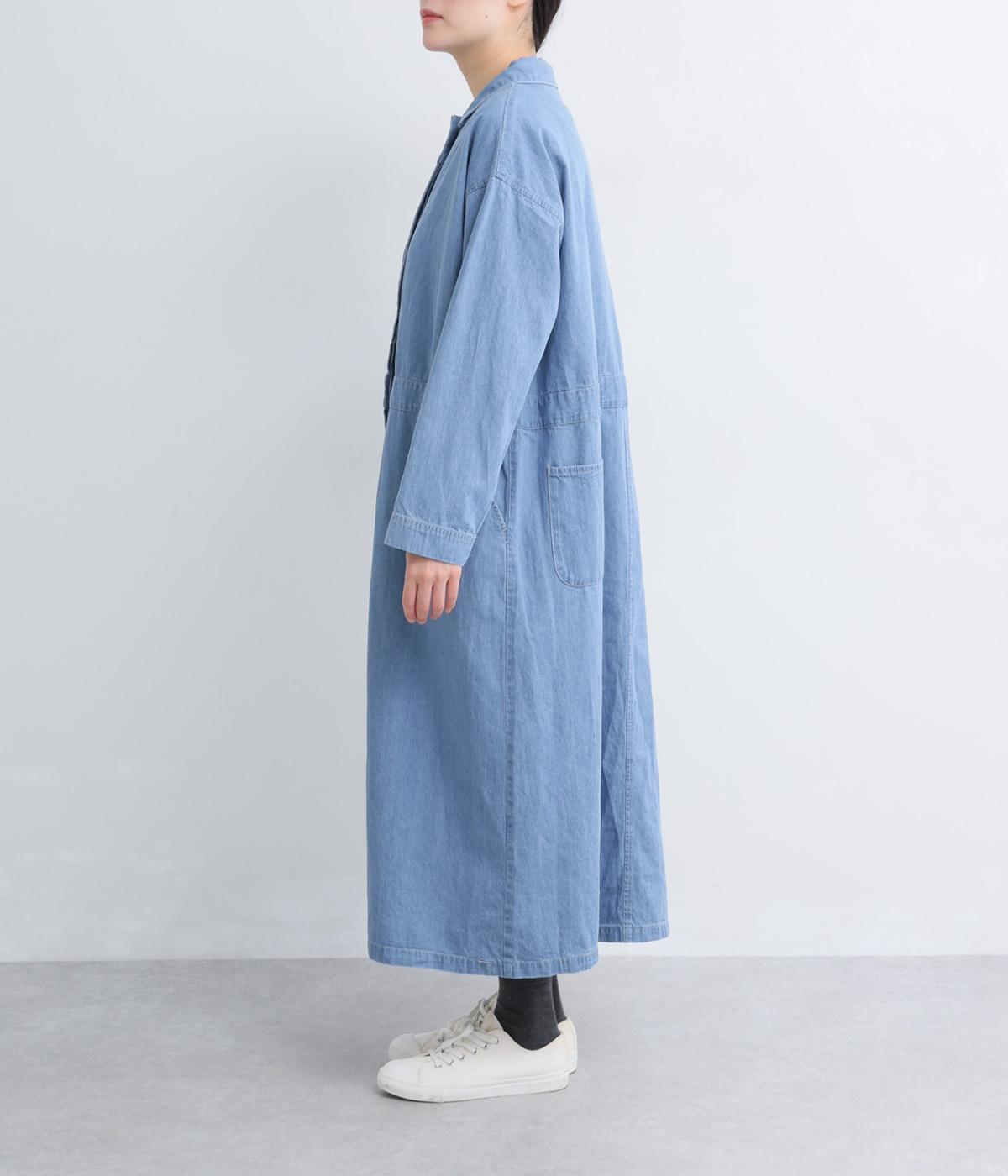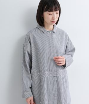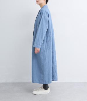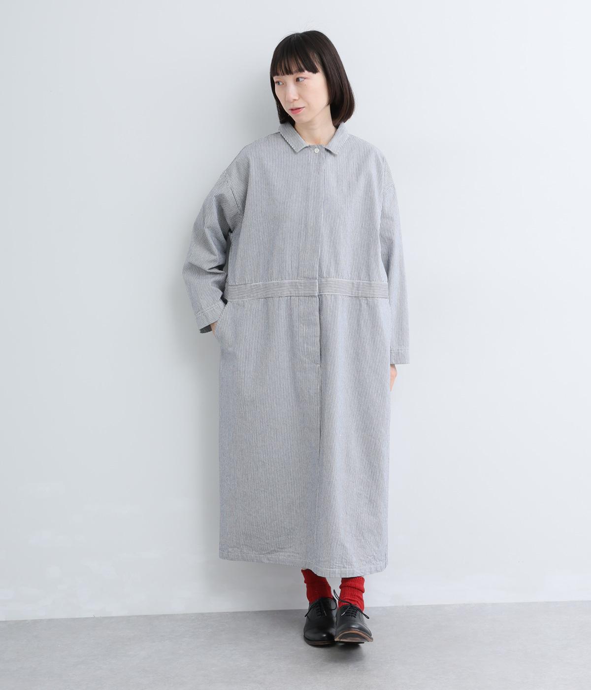 ウエストラインのベルト切り替えやヒップポケットでカジュアルに仕立てたワンピース。すっきりとしたシンプルなデザインが好印象で、比翼ボタンをあけて羽織ったレイヤードスタイルもおすすめ。袖口はラフに折り返しても◎。