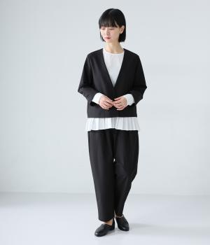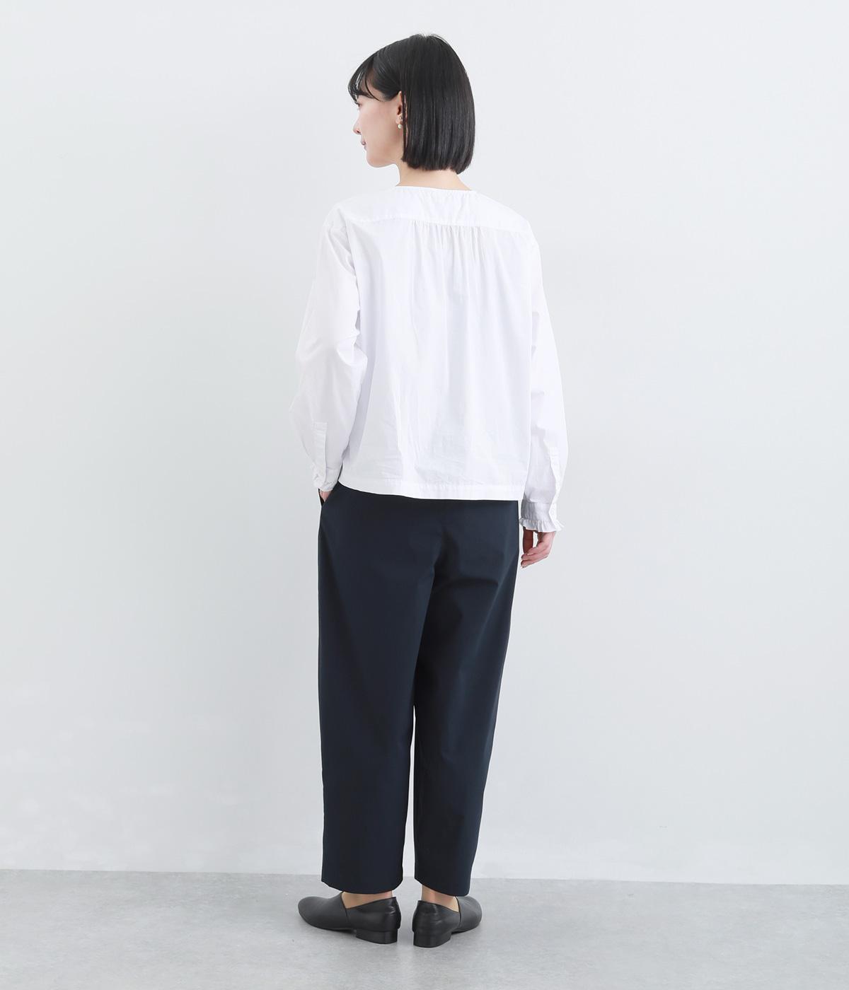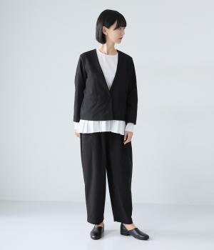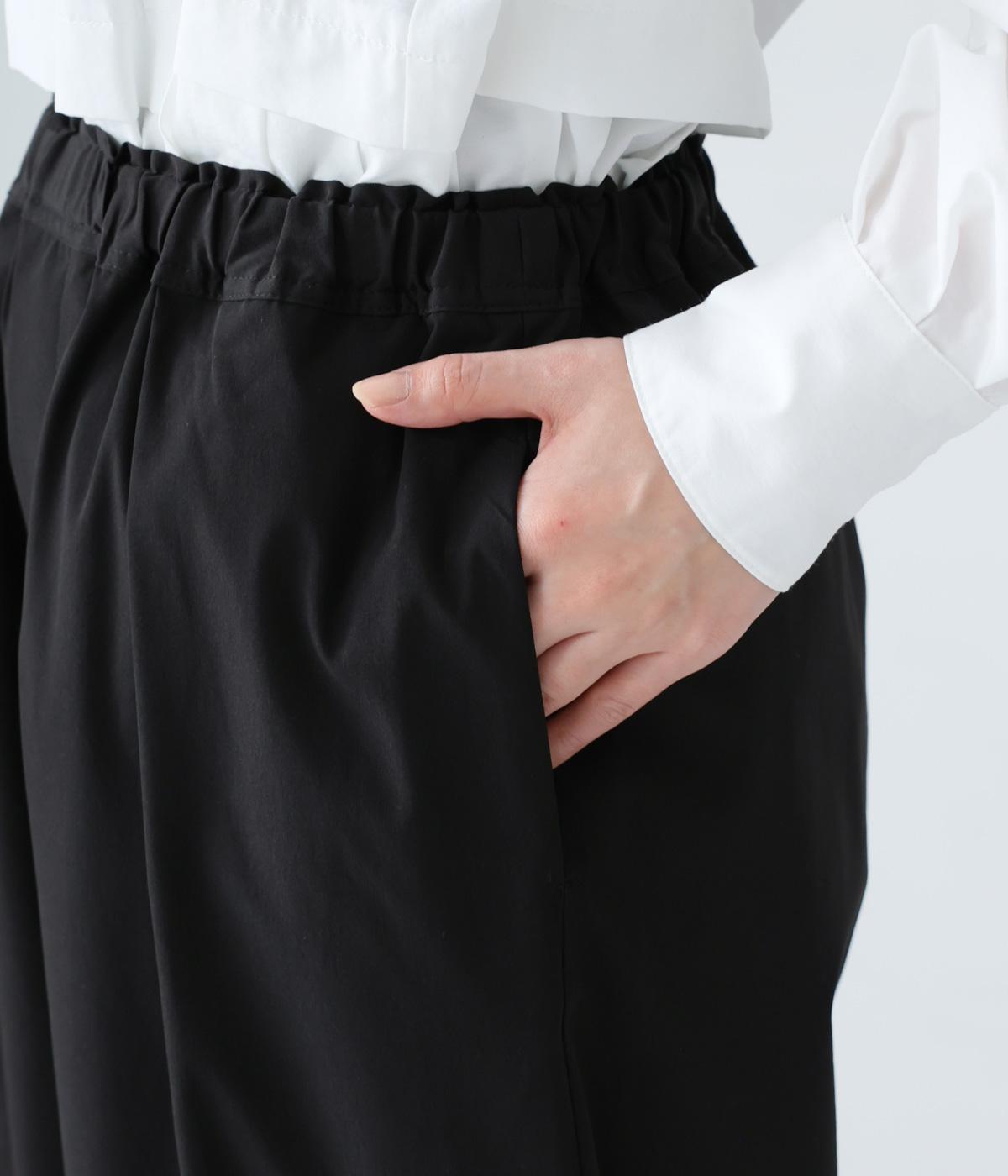密度高く織りあげられた、さらりとした肌触りの生地を使用しています。ほどよいハリ感がシルエットを美しくキープ。軽くてストレッチがきいており、ストレスフリーなはき心地を叶えます。