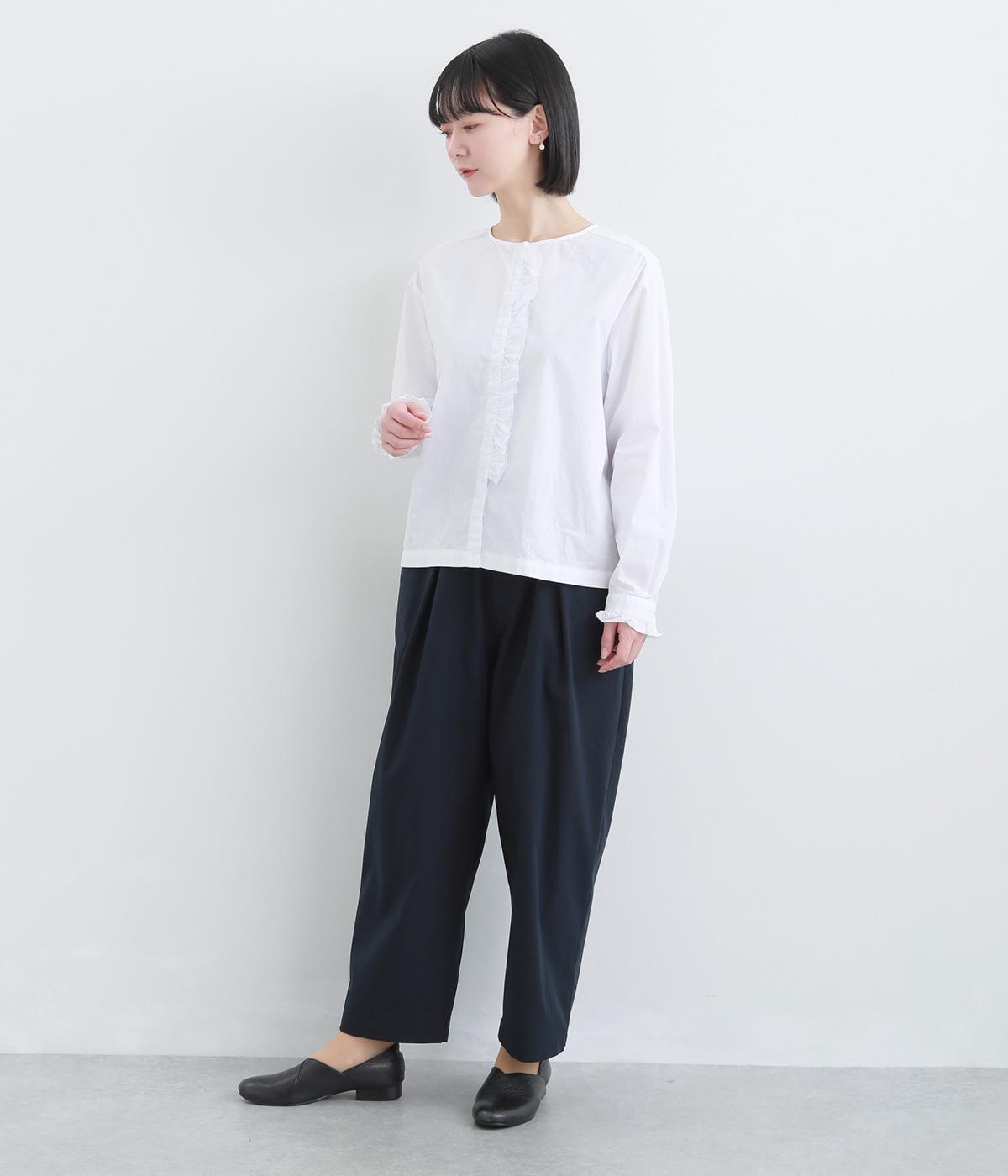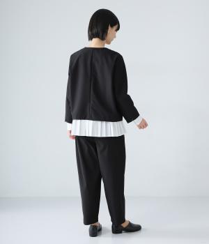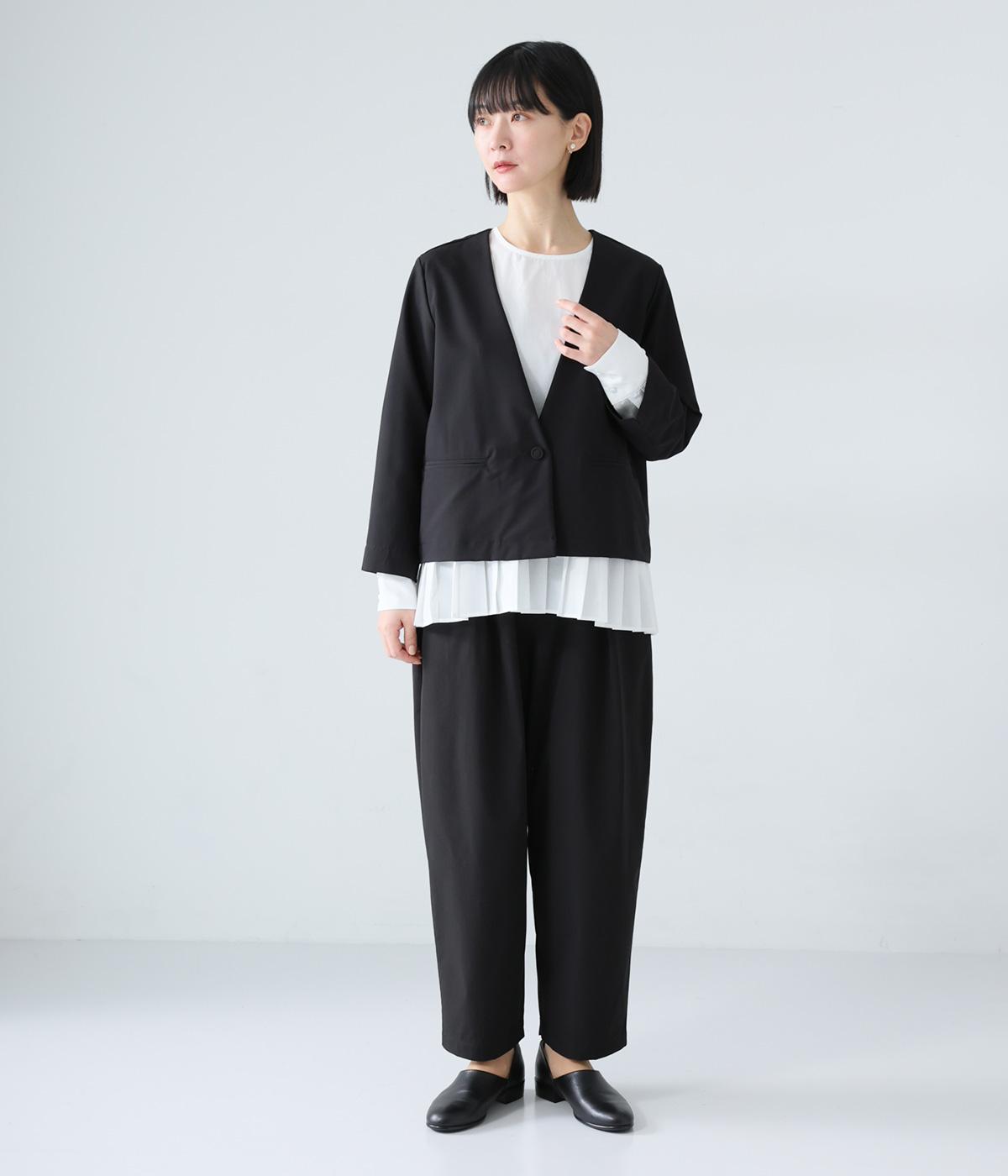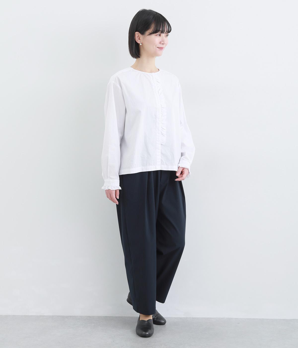 密度高く織りあげられた、さらりとした肌触りの生地を使用しています。ほどよいハリ感がシルエットを美しくキープ。軽くてストレッチがきいており、ストレスフリーなはき心地を叶えます。