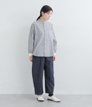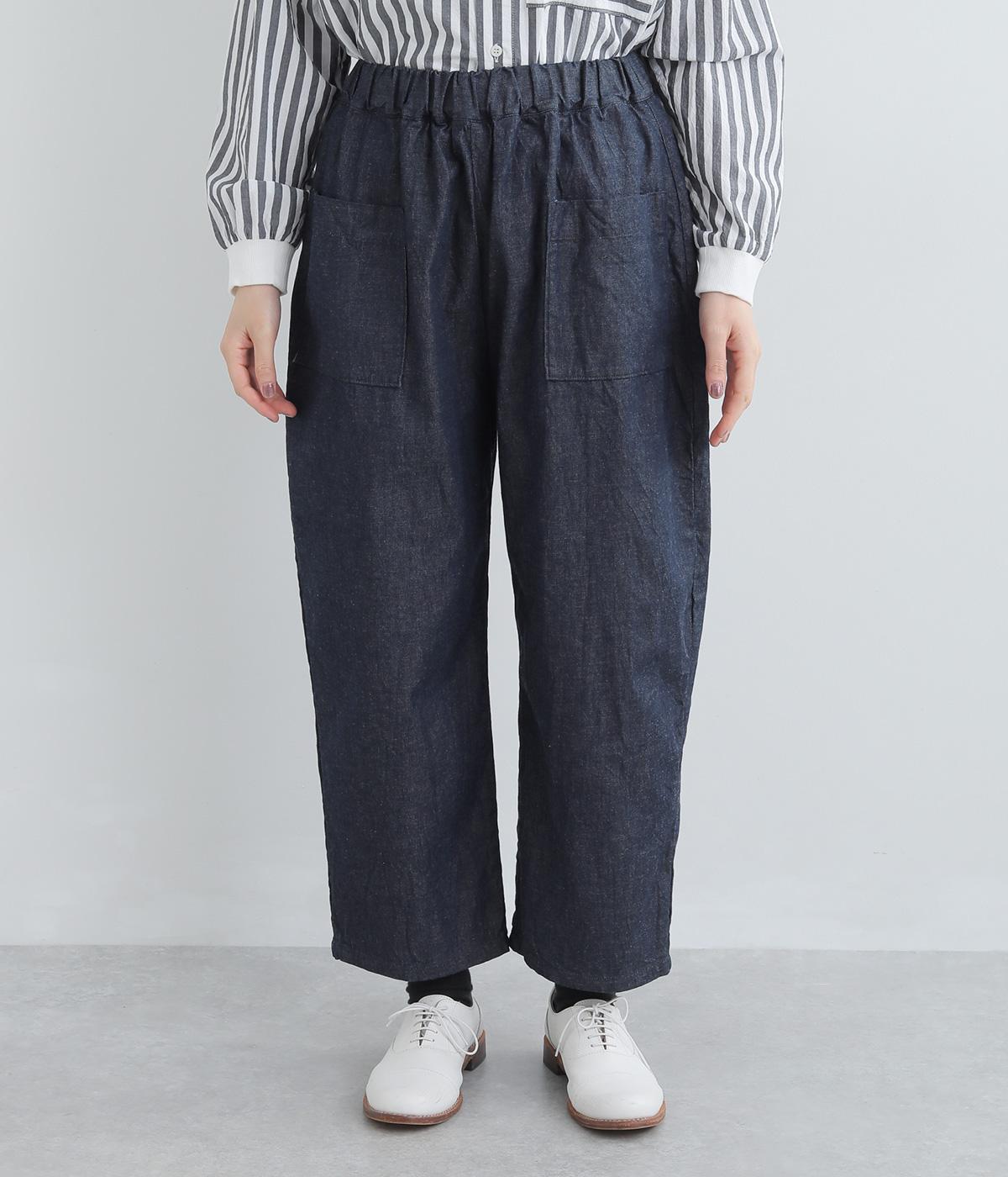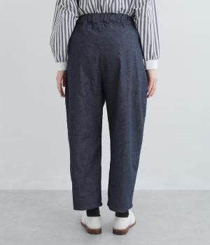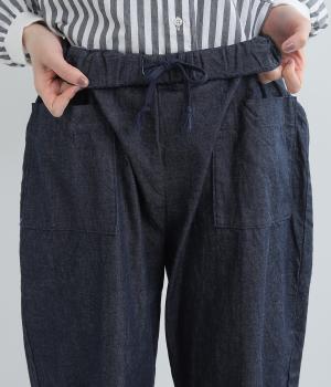 軽くて柔らかいコットンデニムを使用しています。厚すぎず軽やかなはき心地で、長時間穿いてもストレスなく着用できます。