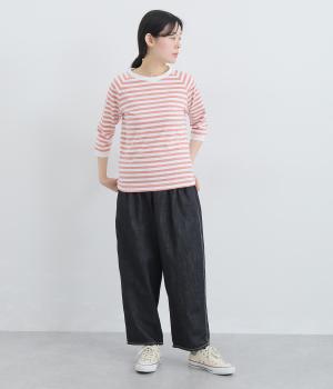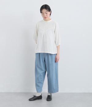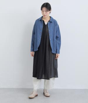 ナチュラルな風合いが心地よいコットンリネンデニムを使用。タフなコシ感を残しながらも着用初期からはきやすく、使い勝手のいい中厚手生地でロングシーズン活躍します。