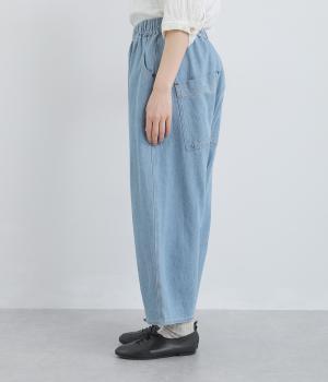 ふっくらとしたシルエットが愛らしいデニムパンツ。アンクルがのぞく丈感で重たくなりすぎずスタイリングしやすい仕上がり。あえて下げた大きめヒップポケットがリラックスムードを演出。ウエストはフィット感のある平ゴム&内紐入りです。