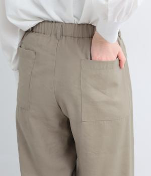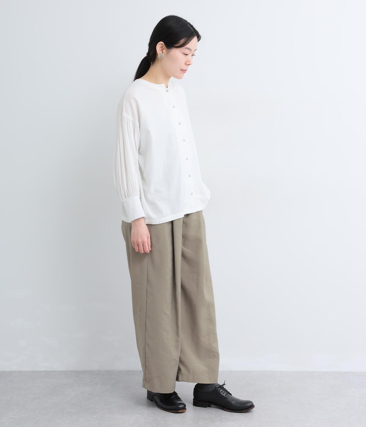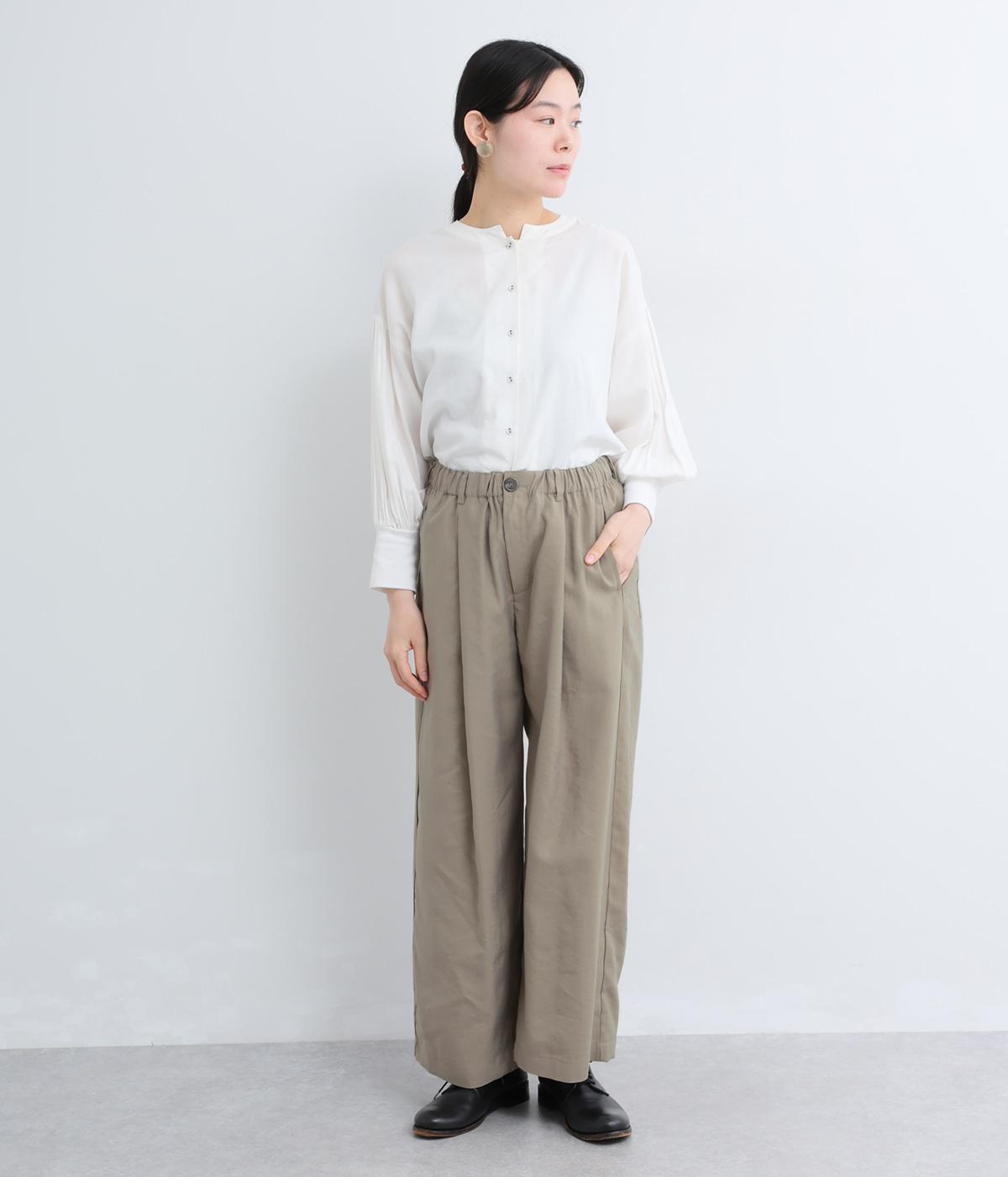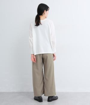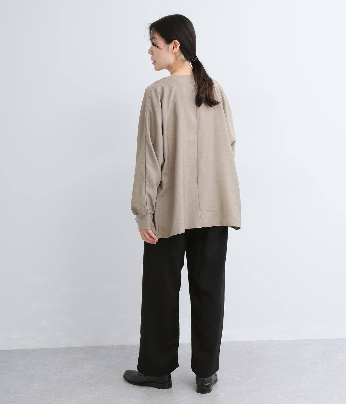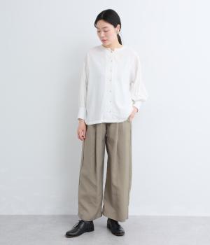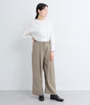 しなやかな落ち感とほのかな光沢が大人な表情を魅せるレーヨンベースの混紡生地を使用。ポリエステルなどをミックスさせることで速乾性やタフな質感が加わり、デイリー仕様になっています。
