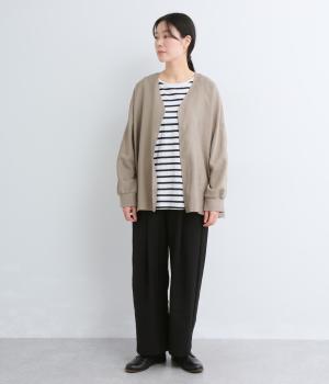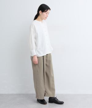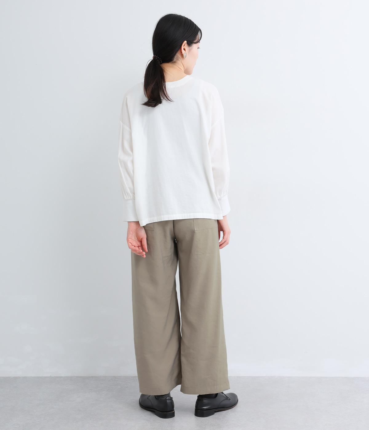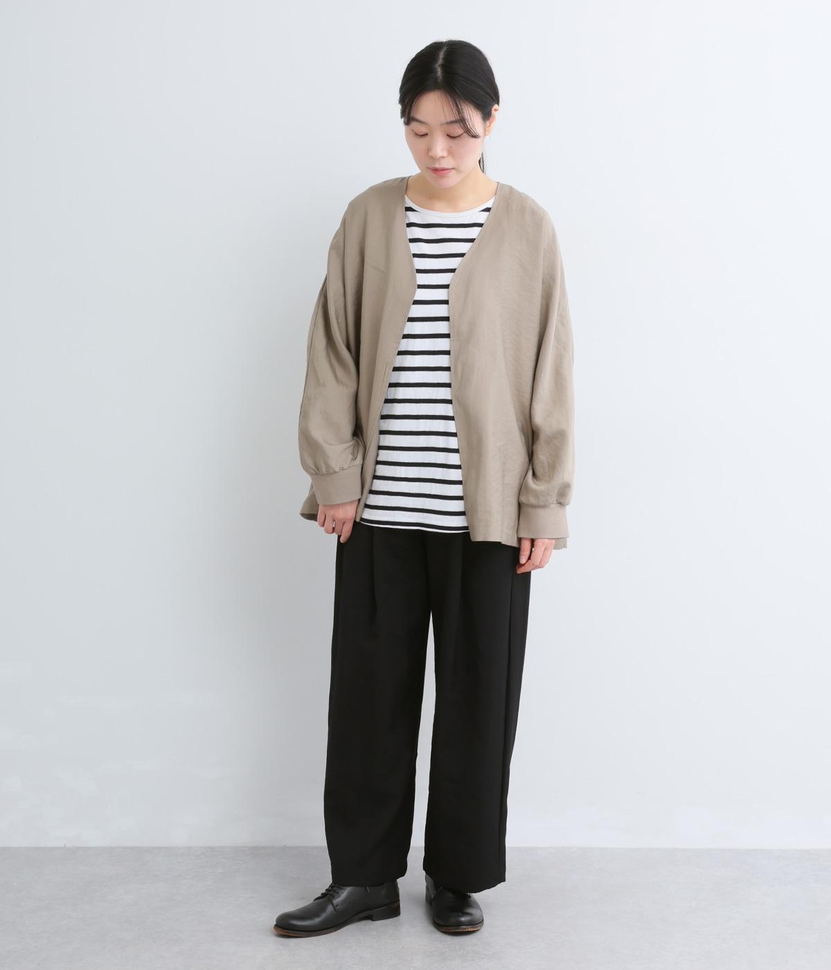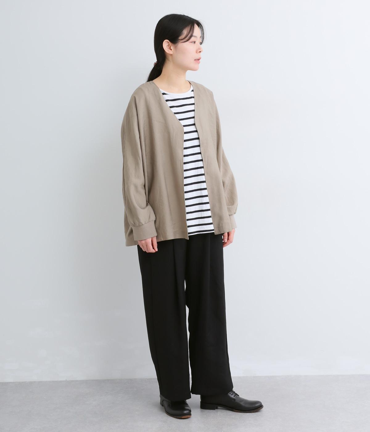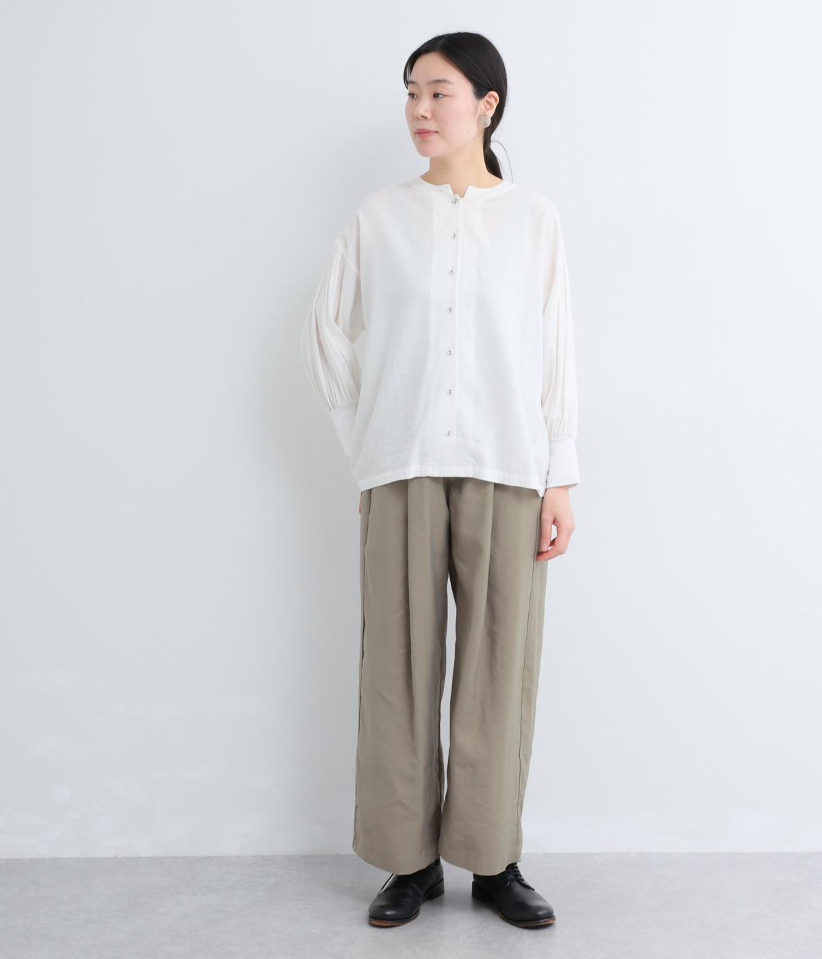 しなやかな落ち感とほのかな光沢が大人な表情を魅せるレーヨンベースの混紡生地を使用。ポリエステルなどをミックスさせることで速乾性やタフな質感が加わり、デイリー仕様になっています。