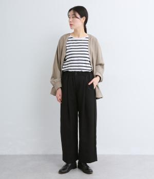 はき心地の良いゆったりとしたワイドシルエットながらすっきり見えも叶えてくれるタックパンツ。シンプルなデザインで着まわし力も高く、適度な落ち感がこなれた雰囲気を運びます。前ファスナーで脱ぎはきしやすく、総ゴムでフィット感も良好。