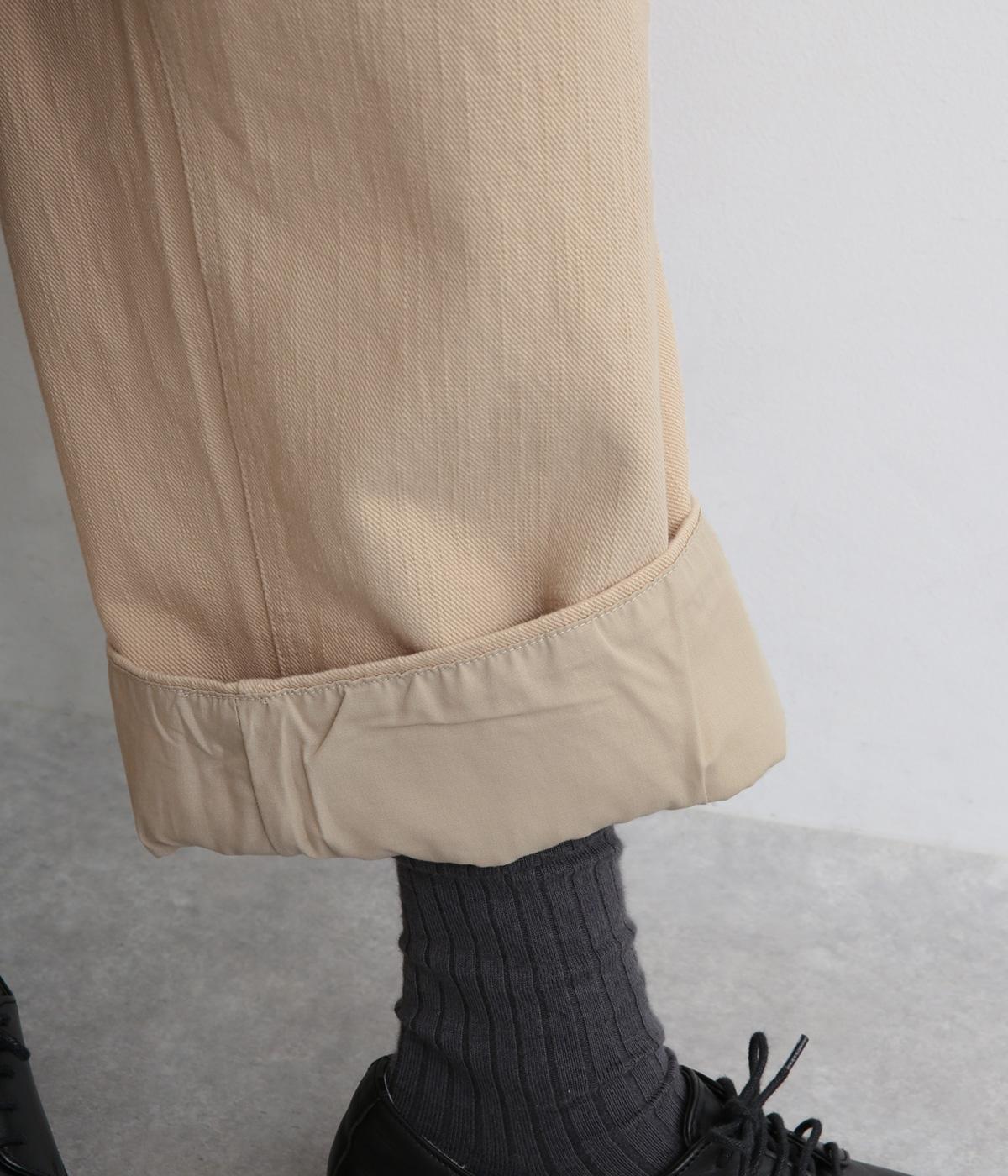 適度にしっかりとしたコットン生地を採用。ベージュはタテスラブのナチュラル感な風合いで、ネイビーは経年変化がたのしめるインディゴ染めになっています。