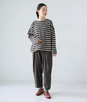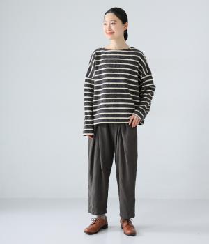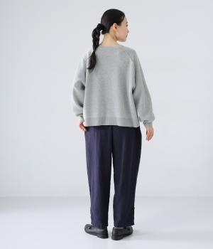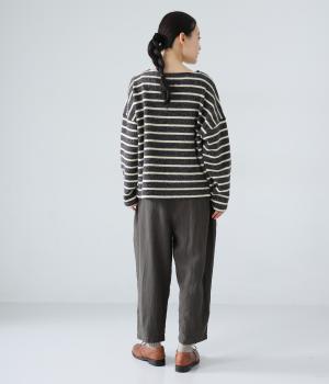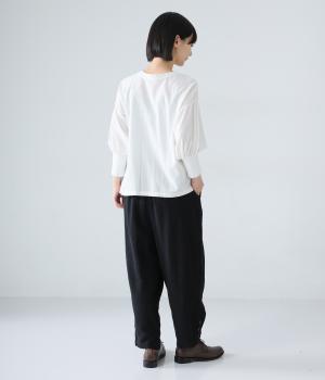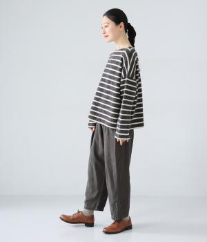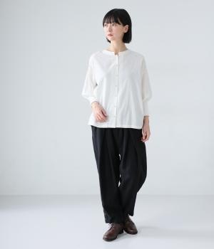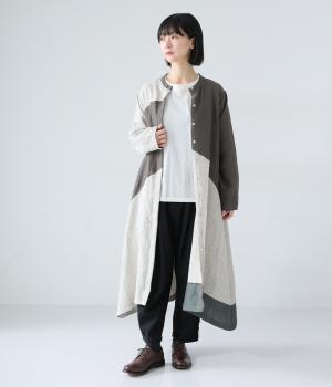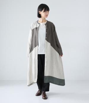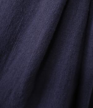 ナチュラルでやわらかな風合いのコットンリネン生地に、自然な起毛感をプラス。立体感と奥行きがあり、着こなしにさりげない表情を与えてくれます。