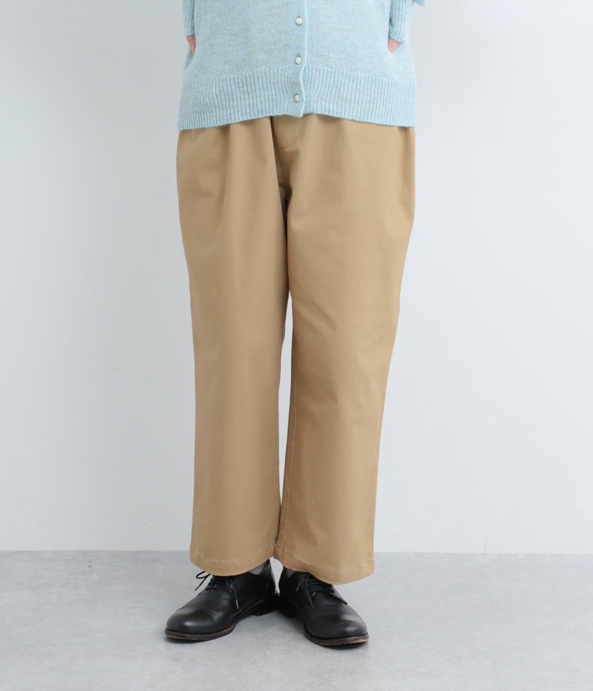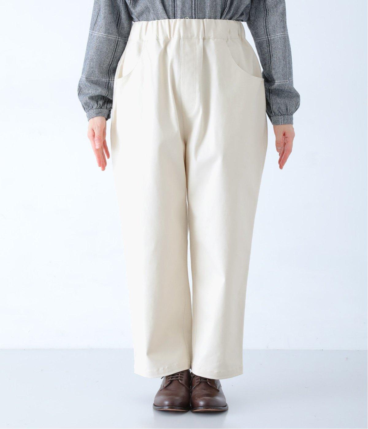 裾にむかって緩やかに絞った、バランスのとりやすいテーパードシルエット。ウエストは幅広の総ゴム入り、全体にゆったりとしたつくりで、ストレスフリーのはき心地を叶えてくれます。ファスナー風のステッチつきで、動きやすさとすっきりとした見た目を両立。