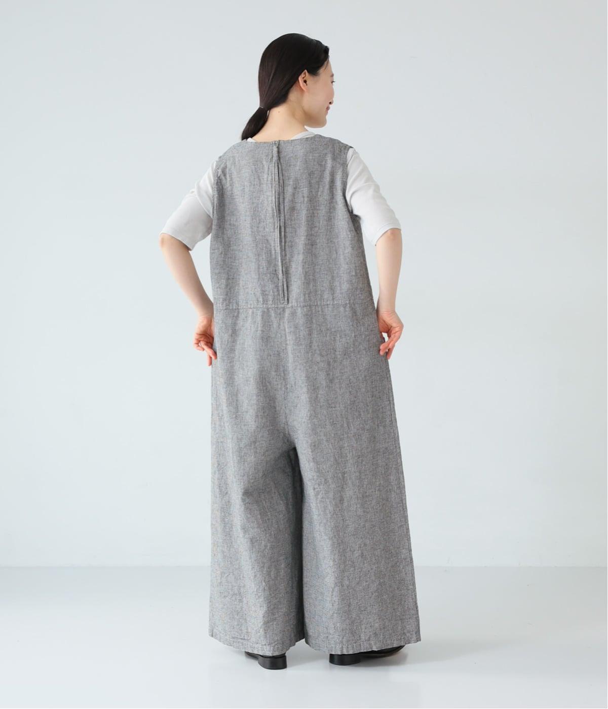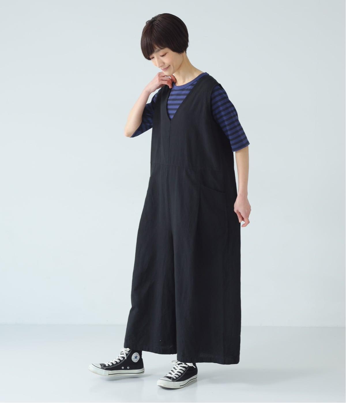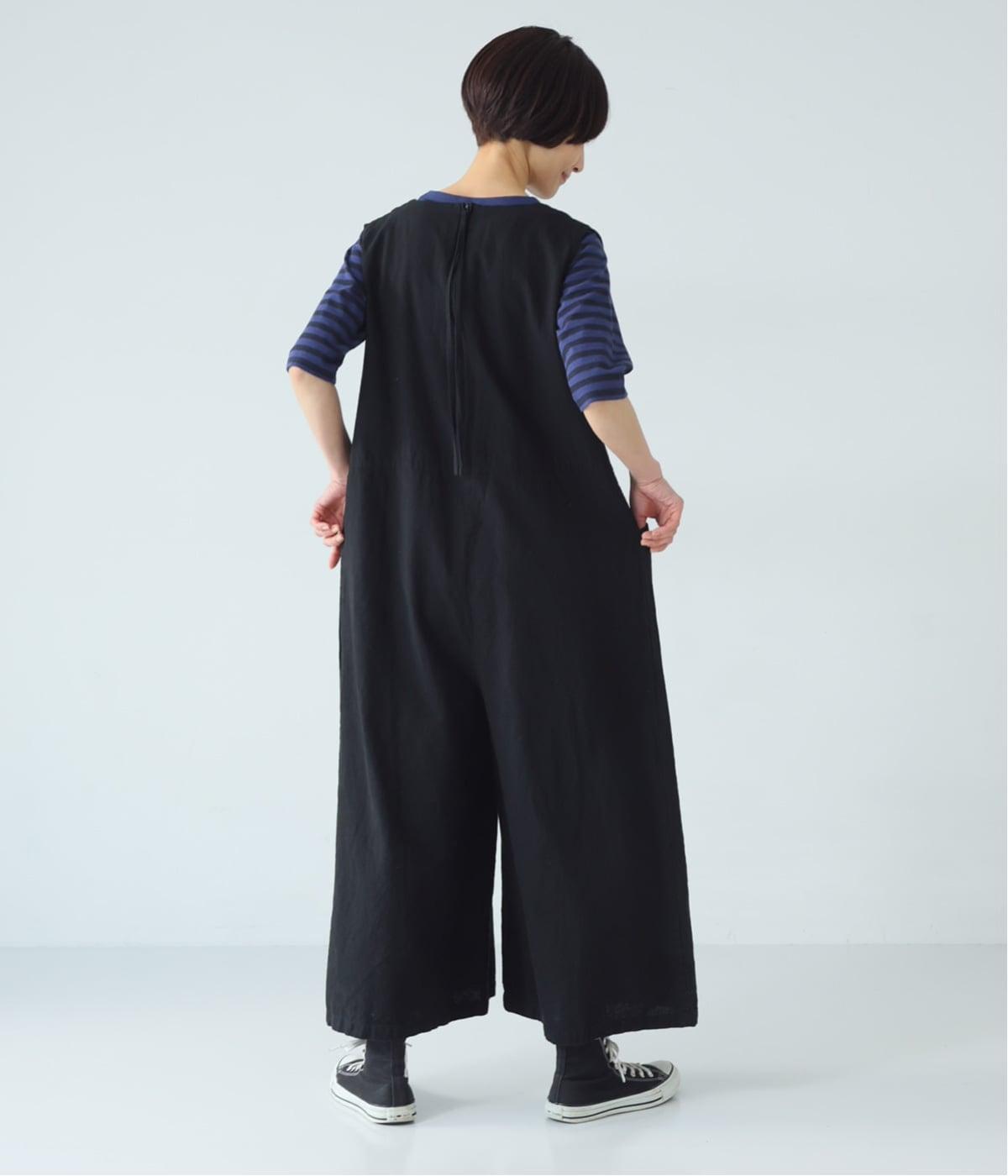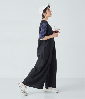 たっぷりとしたワイドな身幅で、気になる体型を自然にカバーするサロペット。腰周りにぐるりとあしらった切り替えが、ほどよくメリハリを与えてくれます。